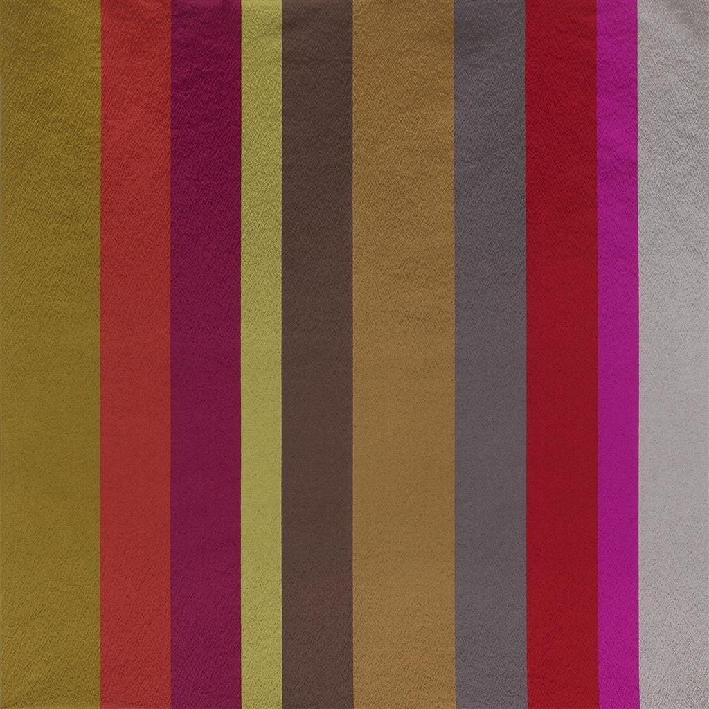 A wonderfully bold scale satin stripe in gorgeous tones of colour. With a subtly textured hammered finish and woven in a dense cotton blend, this divine fabric is available in a range of unique colourways.