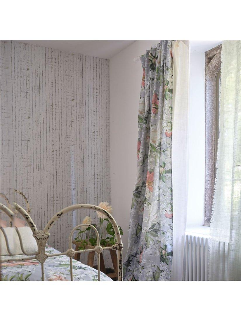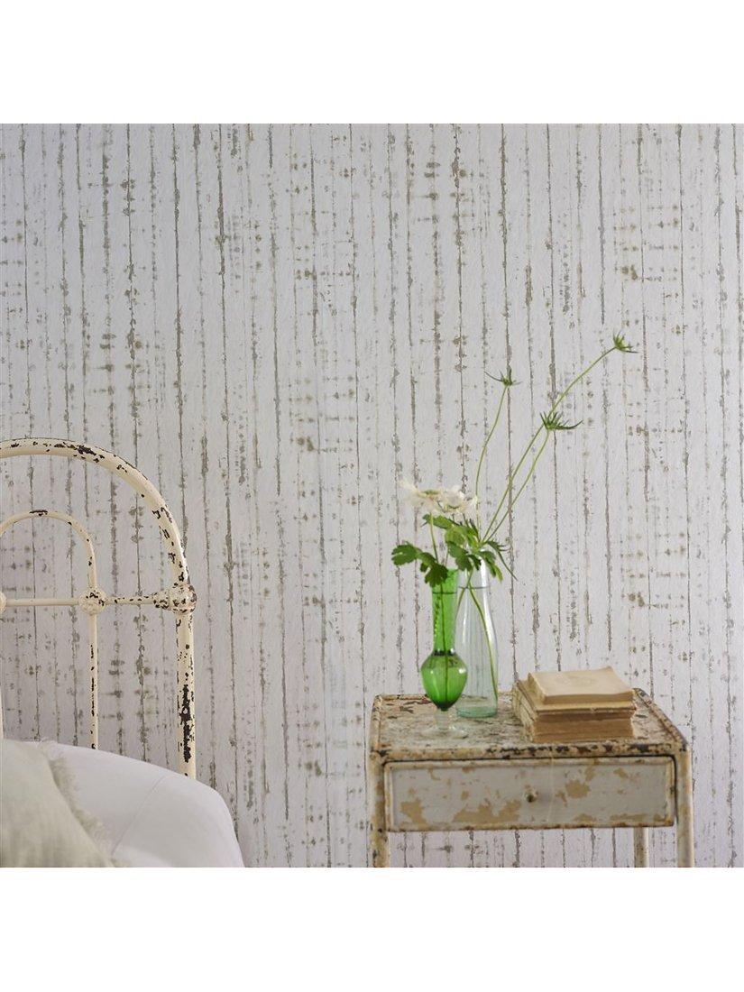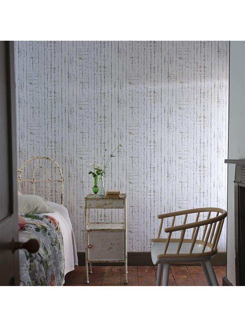 An inky striped wallpaper combining soft washes of tonal colour with a crushed parchment effect ground. Gravure printed onto a smooth non-woven ground for ease of hanging.