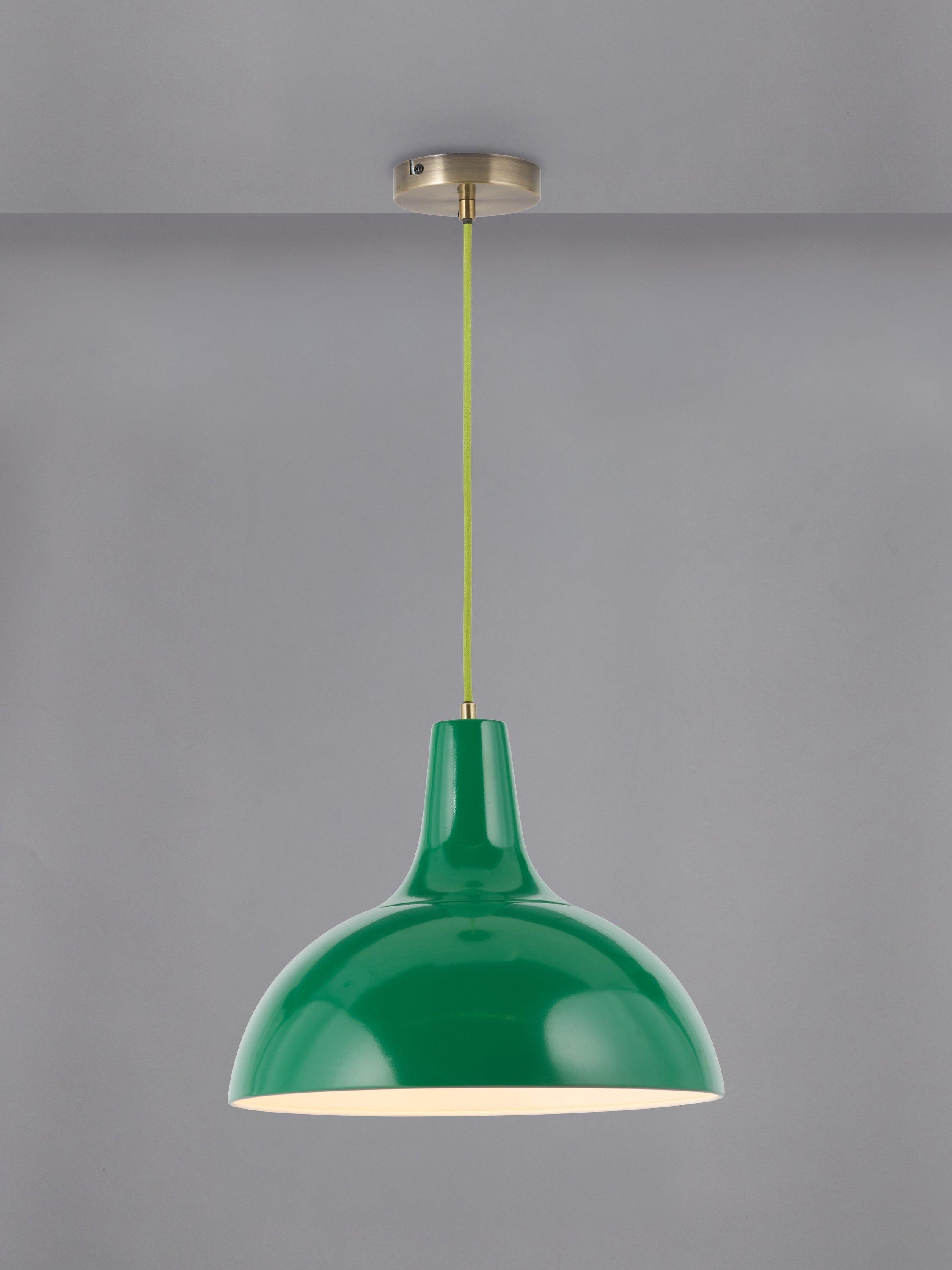 Make a statement on your ceiling with this pendant light, produced in collaboration with Designers Guild, to sit with their iconic colour palettes. The classic design of the industrial lighting is reimagined in this stunning domed metal pendant light. Finished in a vibrant colour with a tonal fabric flex to make a striking contrast.