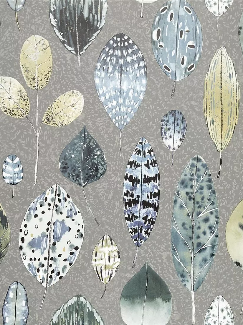 A highly ornate and focused study of vibrant leaves with incredible flashes of colour. This striking wallpaper features delicate dapples and textural elements in the ground and is printed onto a smooth non-woven ground for ease of hanging.