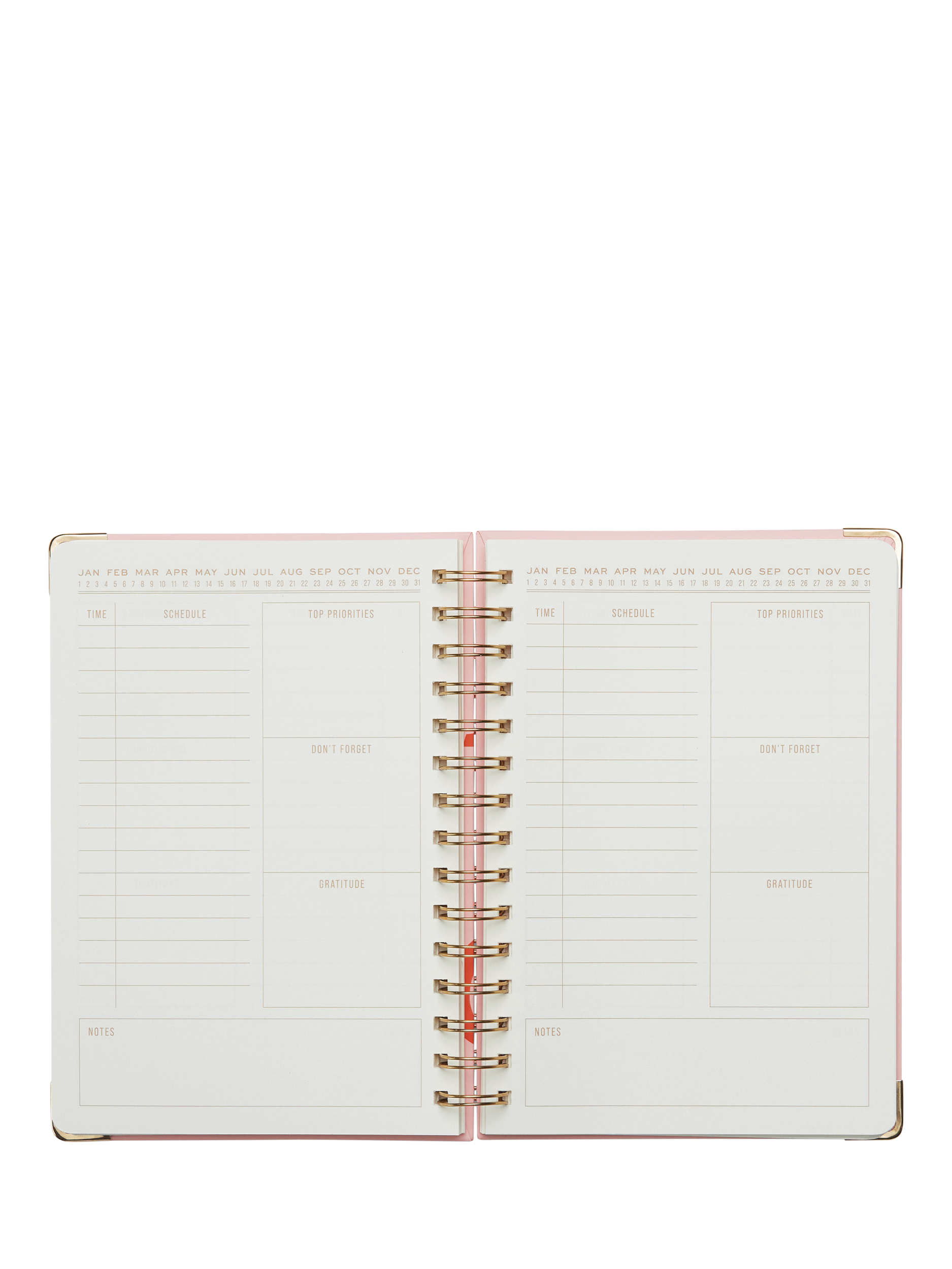 These gorgeous planners add a pop of color to brighten the week, with fill-in-the-date pages and spaces to track daily highlights and to-dos. Each planner is wirebound with a hardback cover and metal corner protectors for durability and a touch of gold finish.