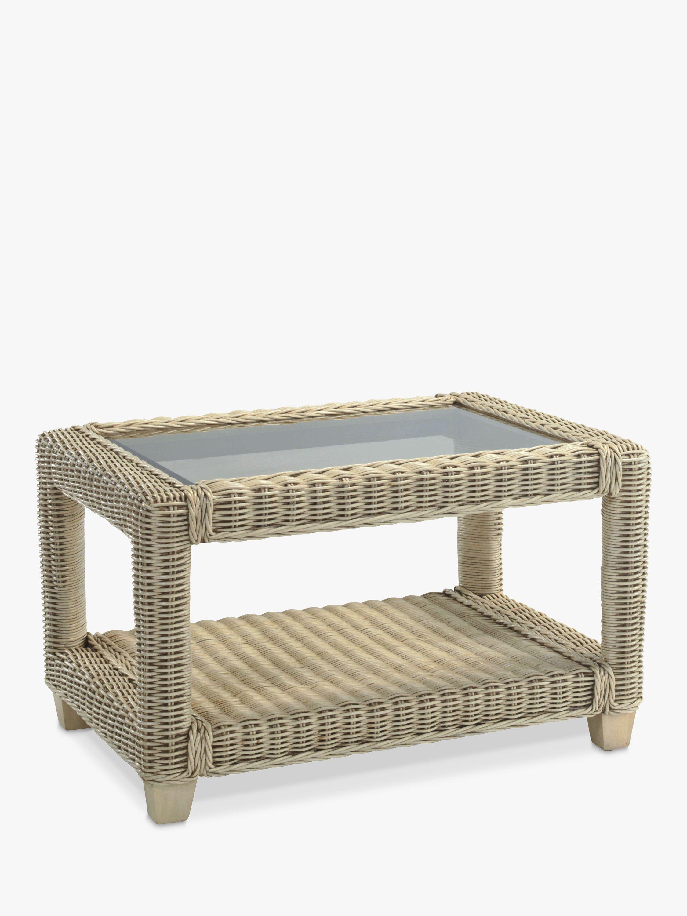 The rectangular coffee table has a 5mm toughened glass top and a storage shelf to keep magazines, newspapers and books tucked away. Made with sturdy wooden legs, the set complements matching boxy-shaped rattan furniture in the Burford range.