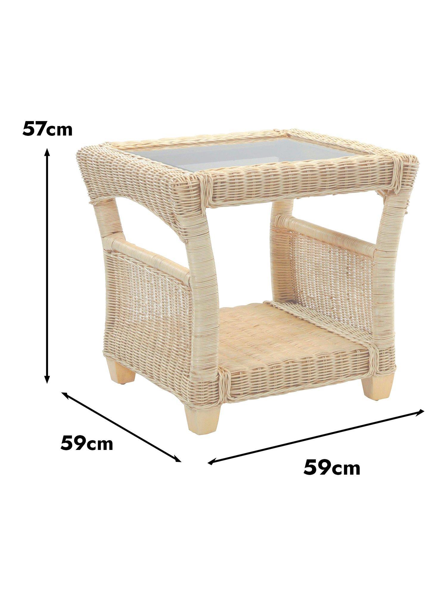 The table has a 5mm toughened glass top and a storage shelf to keep magazines, newspapers and books tucked away. Wicker sides prevent items from slipping off the shelf and wooden legs ensure stability. The table complements matching rattan furniture in the Dijon range.