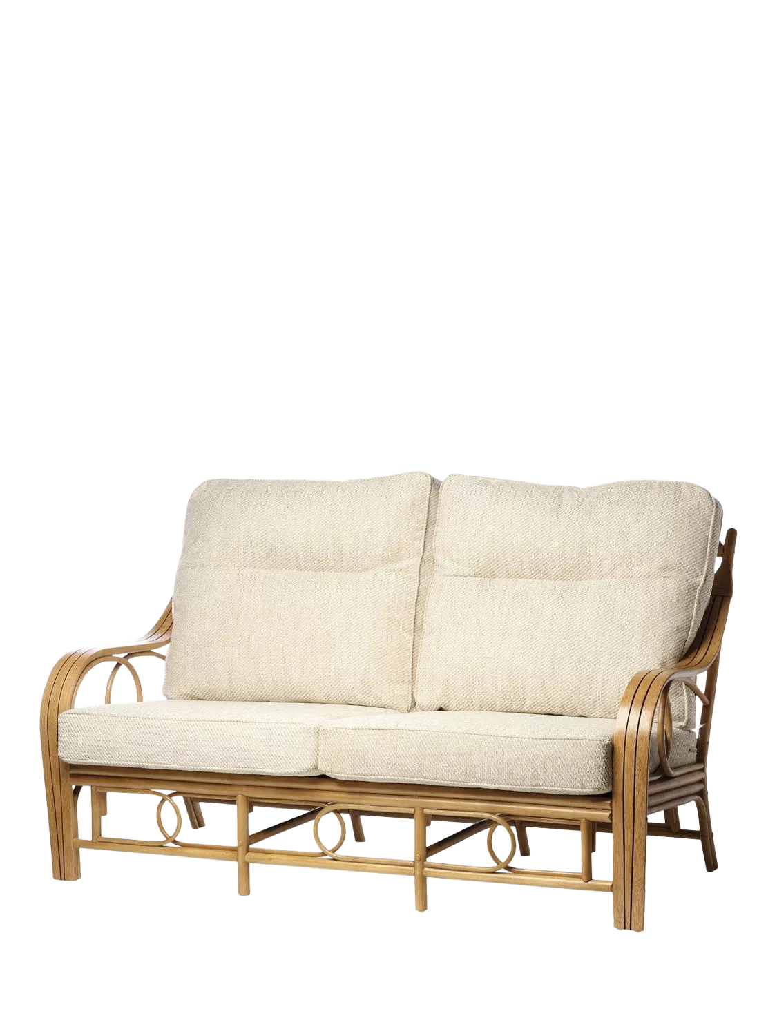 Handmade from natural rattan, this Madrid three-seater sofa from Desser is an attractive piece for an orangery, summerhouse, conservatory or living room, with sweeping arms. The cushions are made in the UK, in Manchester, and the cushion inners are also made in the UK, so the quality and comfort are to the highest standard. The sofa complements matching rattan furniture in the Madrid range.