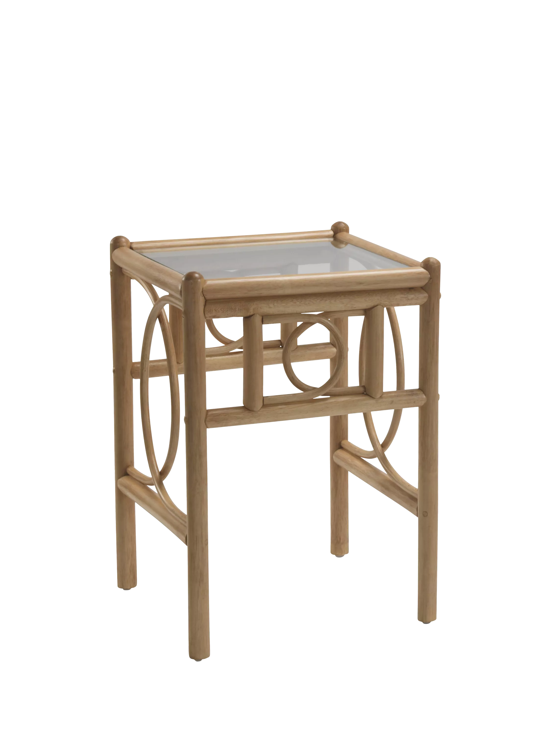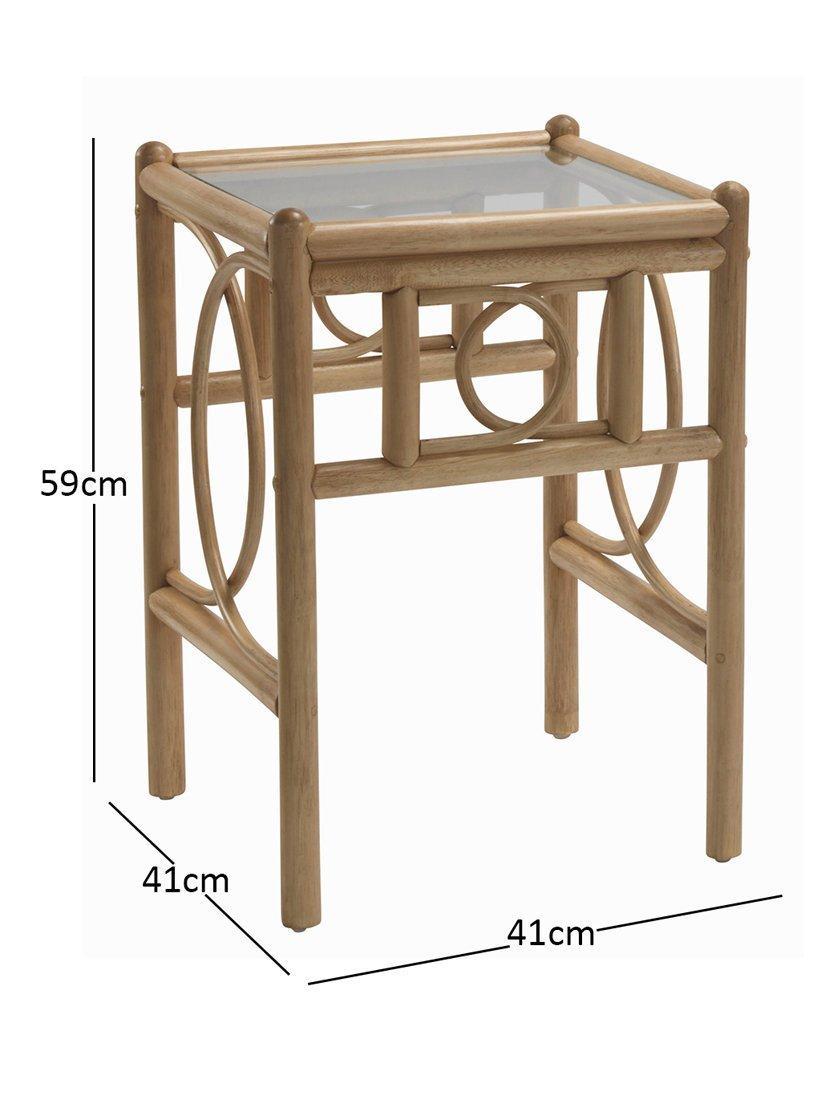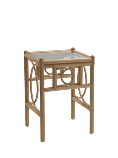 Handmade from natural rattan, this Madrid side table or lamp table from Desser is an attractive and practical piece for an orangery, summerhouse, conservatory or living room. A square design with circular pole detailing and a 5mm toughened glass top.