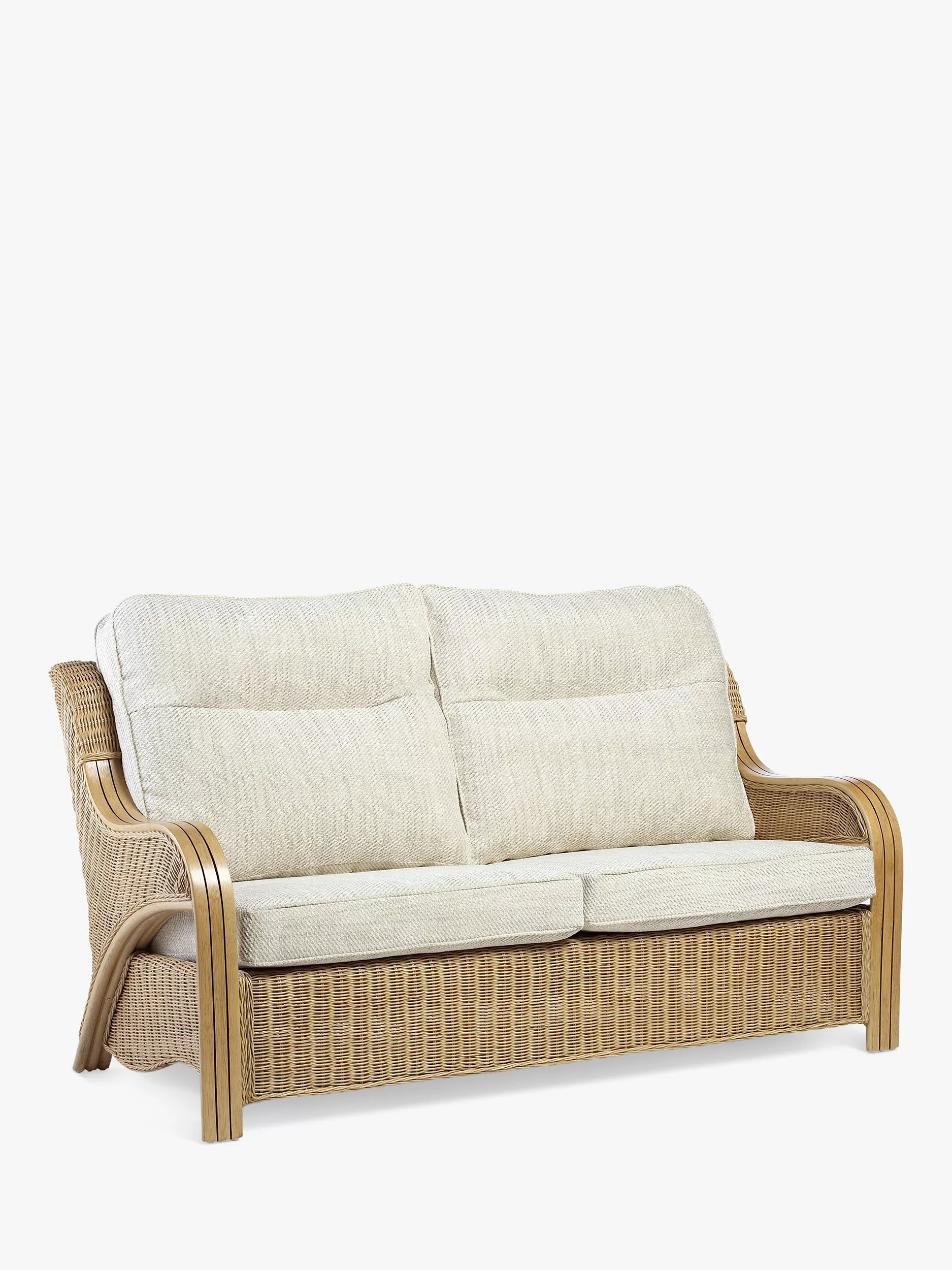 The sweeping rattan arms are smooth for added comfort when relaxing back. The hand-sewn seat and backrest cushions are made in the UK with a wrapped finish to help prevent wear and tear. The sofa complements matching rattan furniture in the Opera range.
