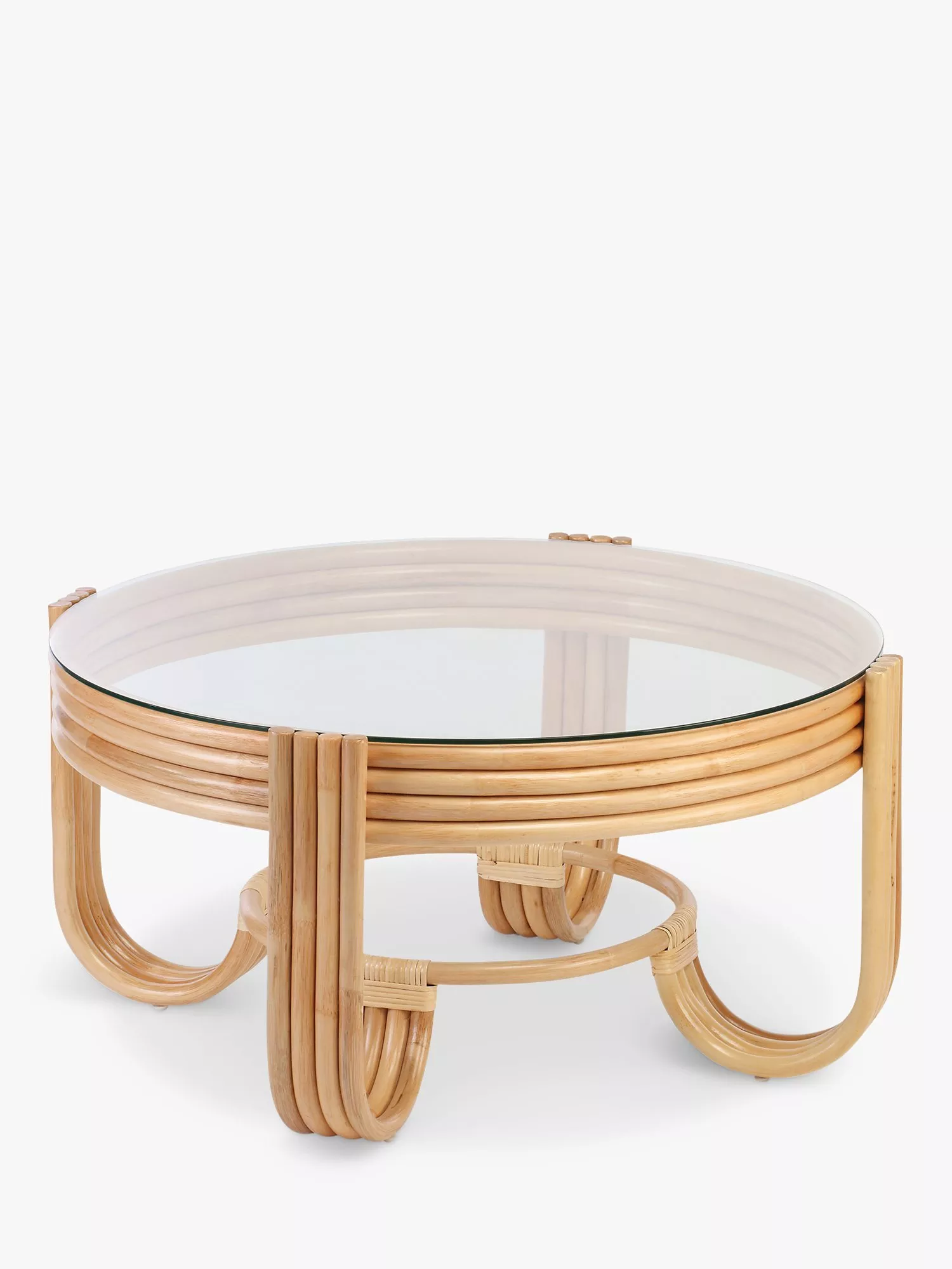 Handmade from natural rattan in a contemporary design, the Pretzel coffee table from Desser features curved cane detailing, creating an attractive and practical piece for the living room or conservatory.