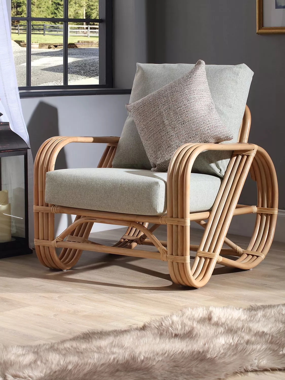 - Natural rattan, polyester cushions