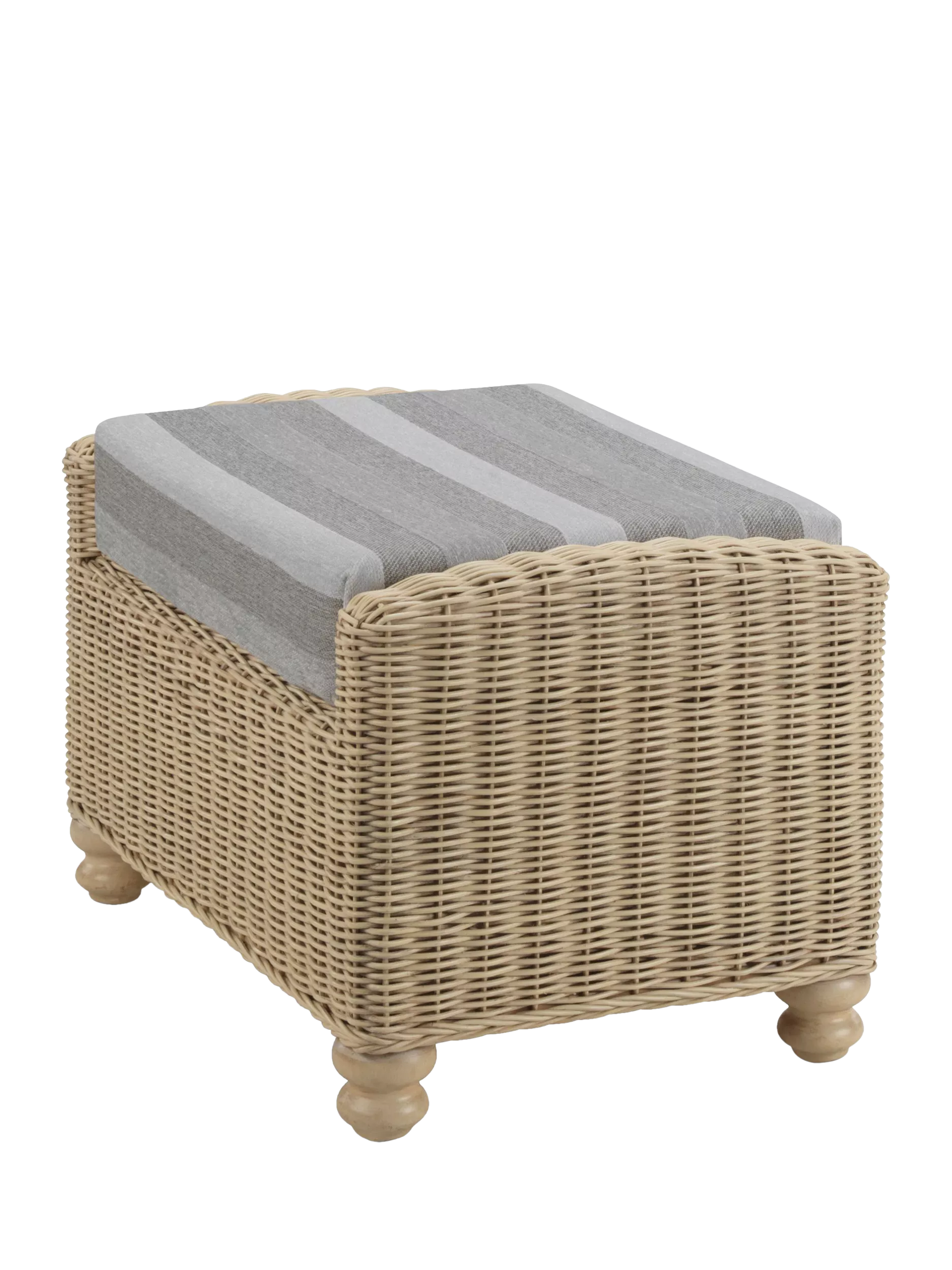 The comfortable hand-sewn cushion is made in the UK with a wrapped finish to help prevent wear and tear. The cushion cover is easily removable for cleaning. The footstool complements matching rattan furniture in the Samford range.