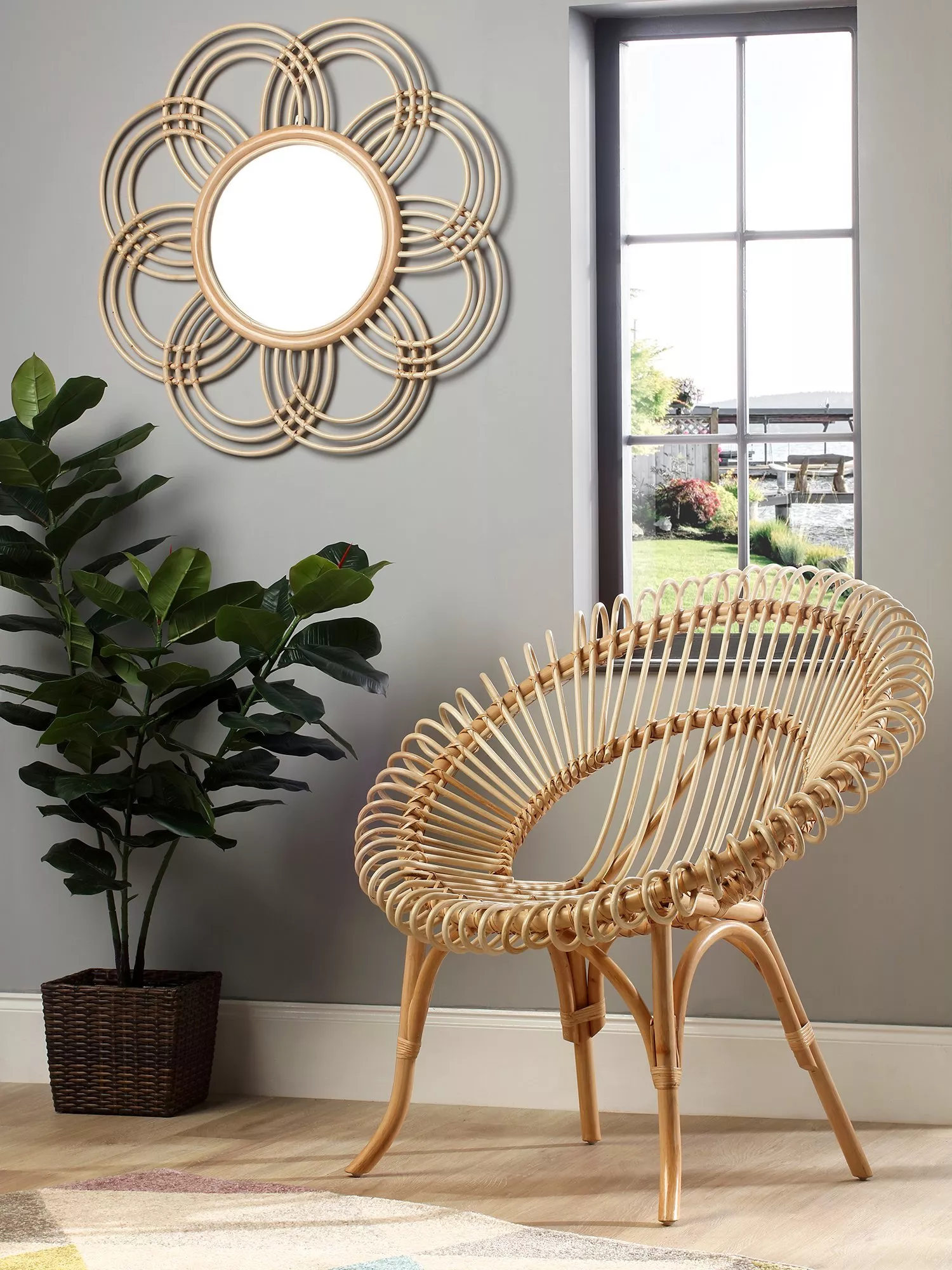 Handmade from natural rattan in a striking circular shape, the Shanghai lounge chair from Desser is an attractive and practical piece for the living room or conservatory. The arched back provides laid-back relaxation, with the seat based on sturdy cane legs.