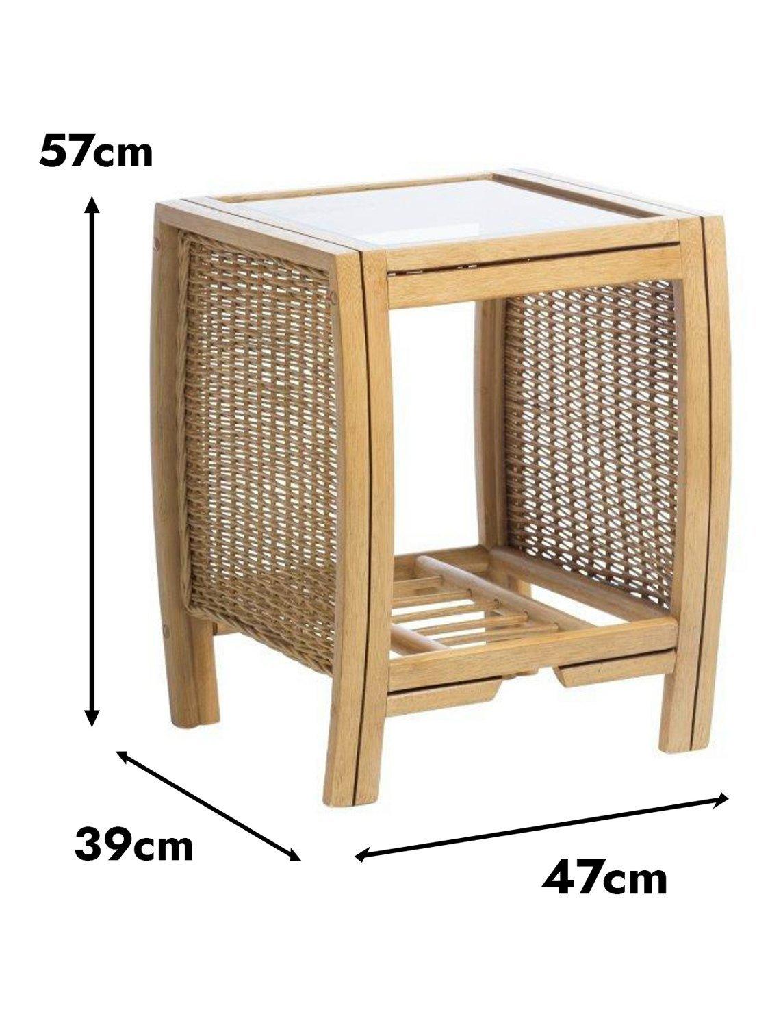 The square table has a 5mm toughened glass top and a storage shelf to keep magazines, newspapers and books tucked away. The table complements matching rattan furniture in both the Turin and Centurion ranges.