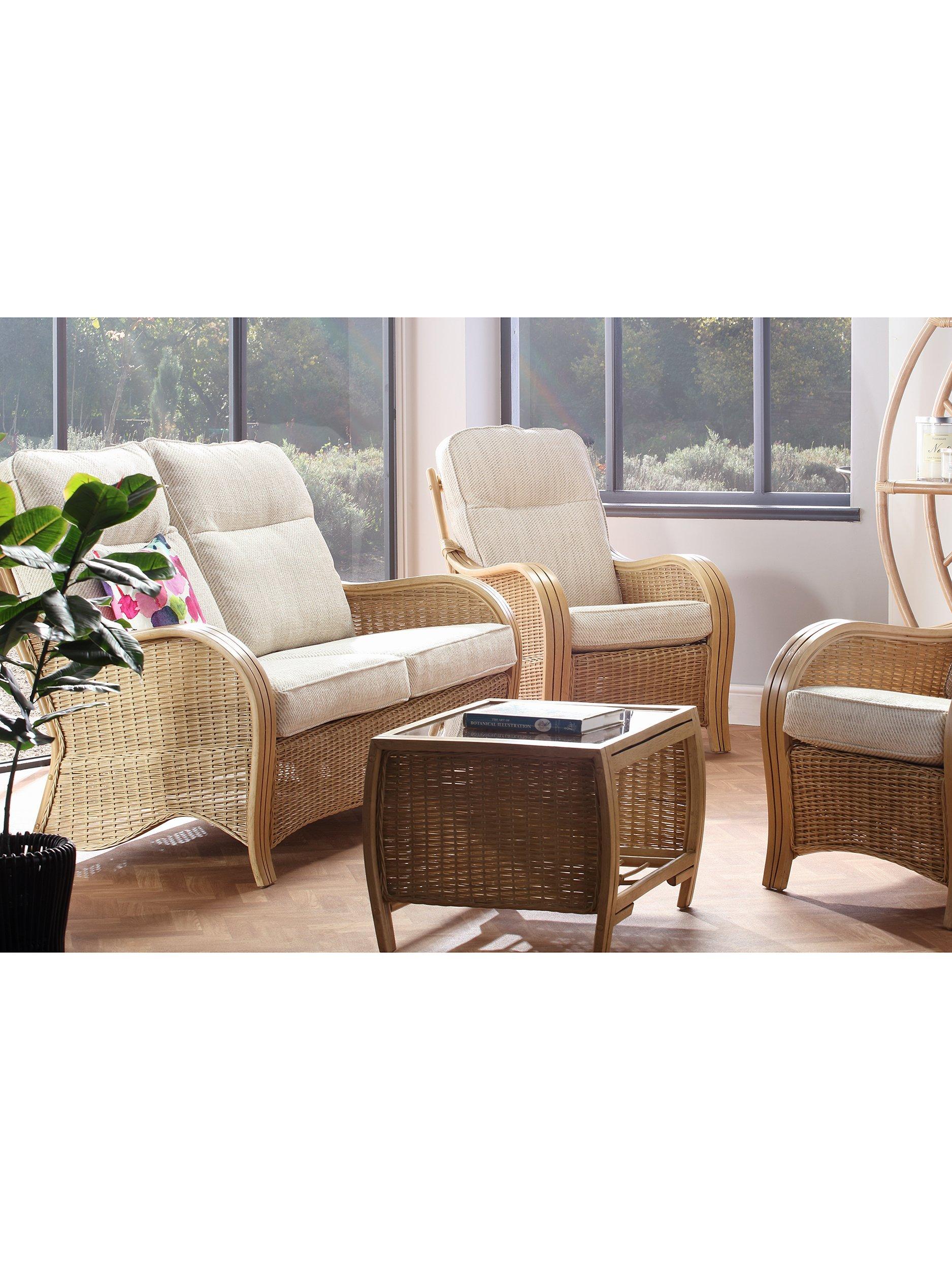 Strong and durable, natural rattan is low maintenance and easy to keep clean. Wipe the furniture clean with a dry cloth or a slightly damp cloth and dry it afterwards. Keep the furniture in a dry environment and avoid leaving it under direct sunlight for prolonged periods. The furniture’s colour lasts longer if moved around a conservatory regularly to protect it from direct sunlight in the same spot.
