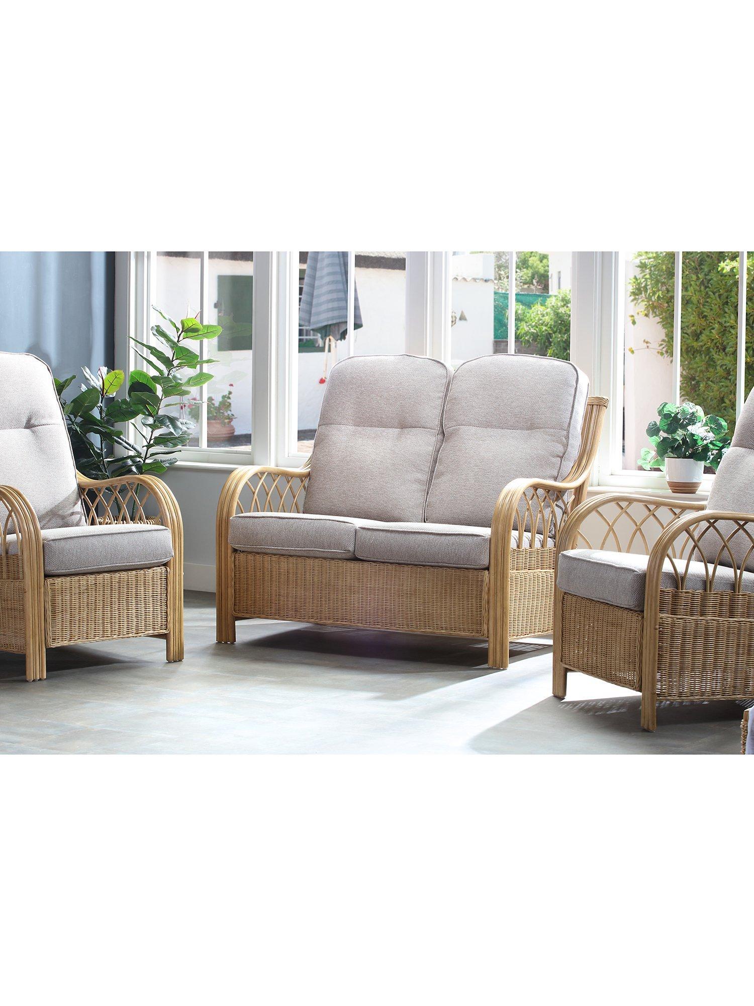 The sweeping laminated triple rattan arms are smooth for added comfort when relaxing back on the sofa. The handsewn seat and backrest cushions are made in the UK with a wrapped finish to help prevent wear and tear. The sofa complements matching rattan furniture in the Viola range.