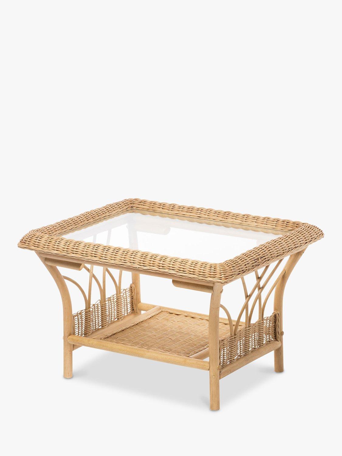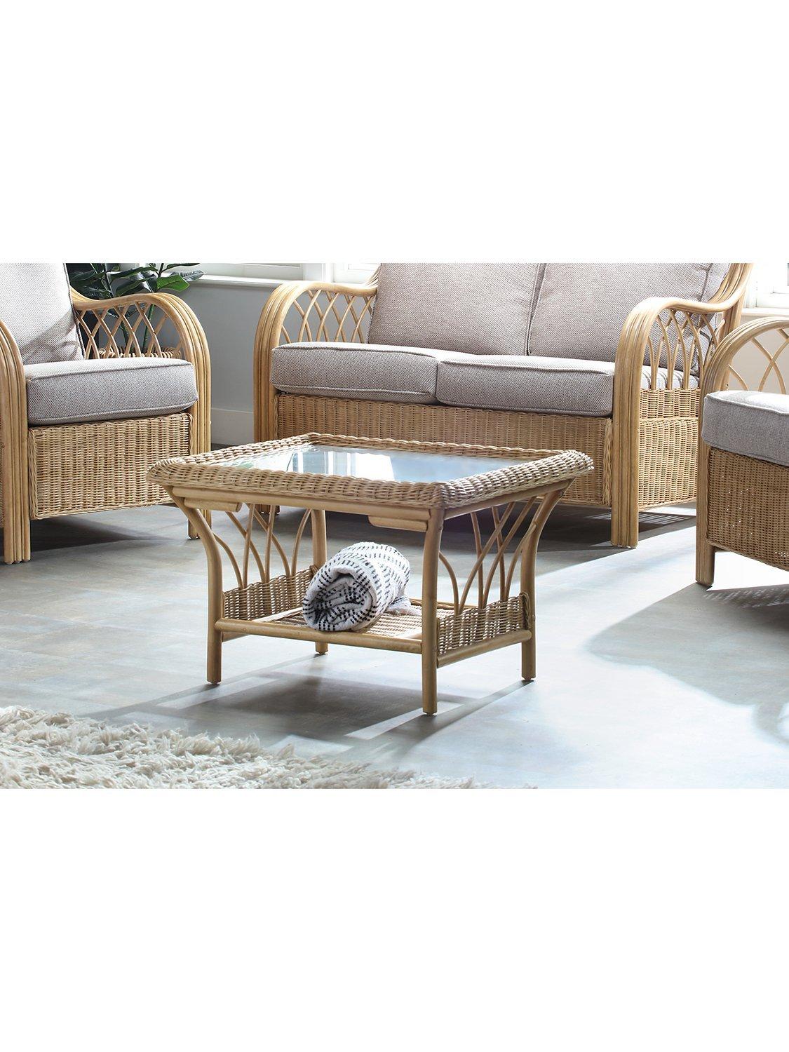 The rectangular coffee table has a 5mm toughened glass top and a storage shelf to keep magazines, newspapers and books tucked away. The set complements matching rattan furniture in the Viola range.
