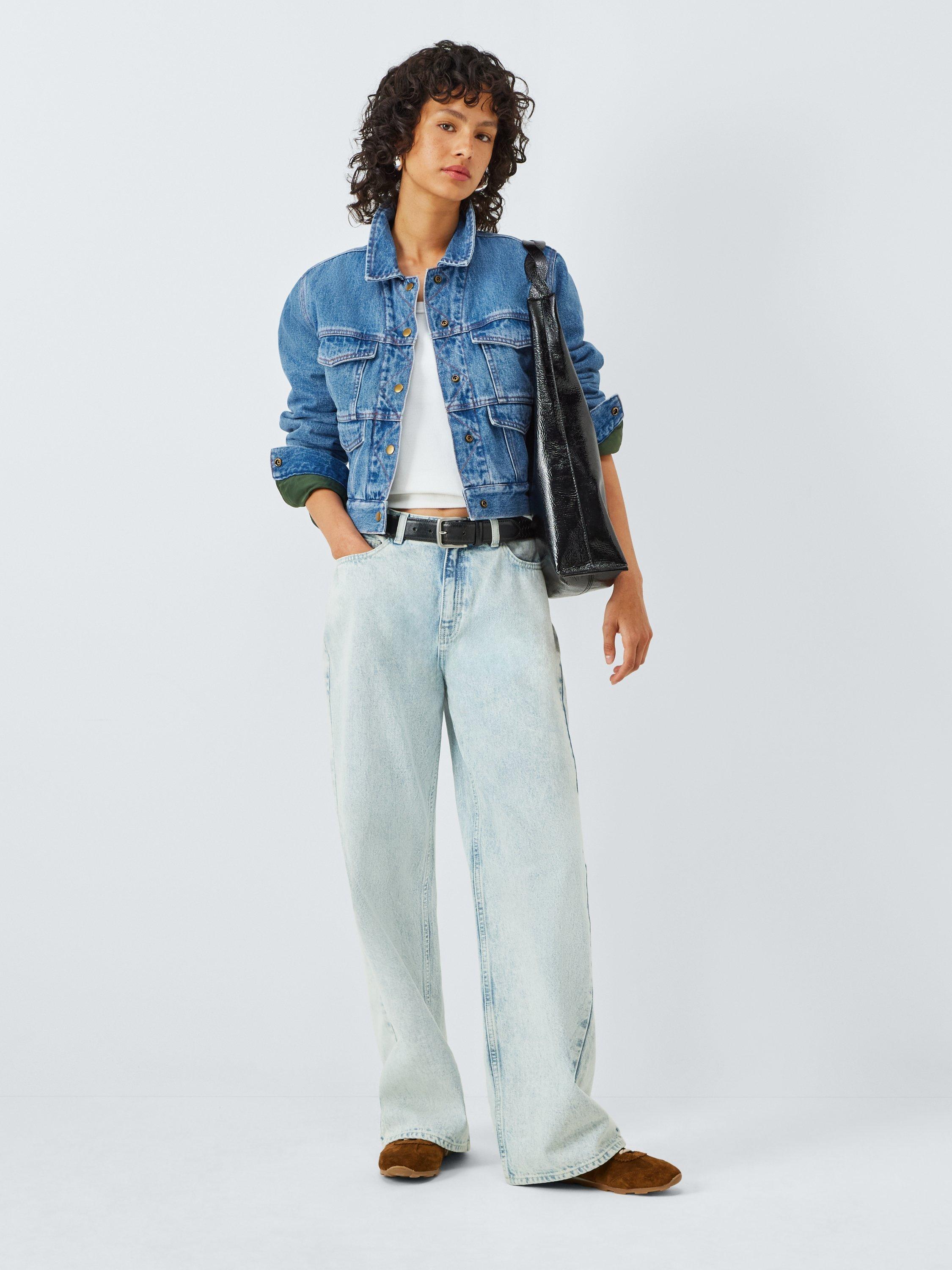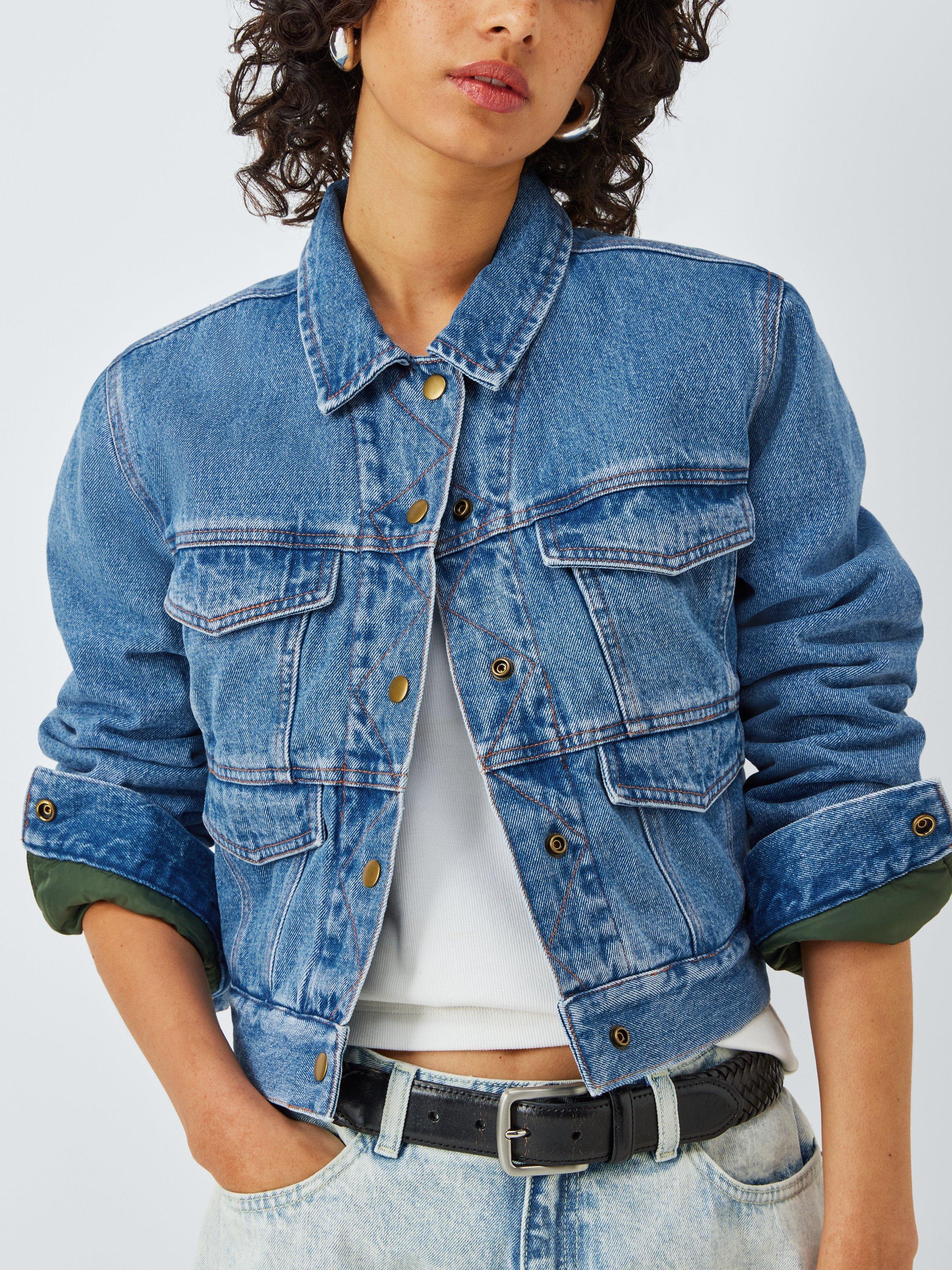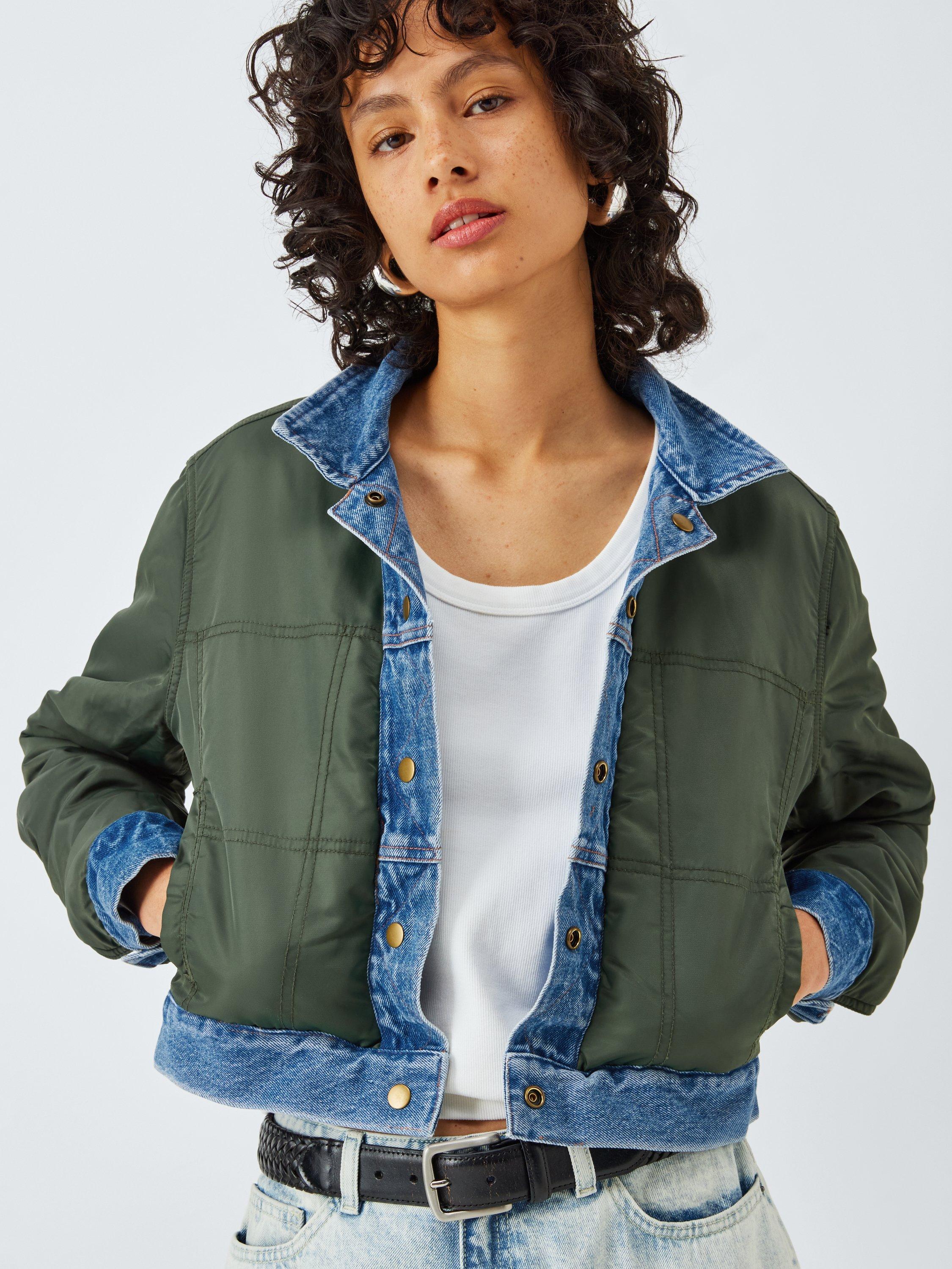 Reversible nylon and denim jacket. Can be worn either way with a double-front snap-close for ease of reversibility.