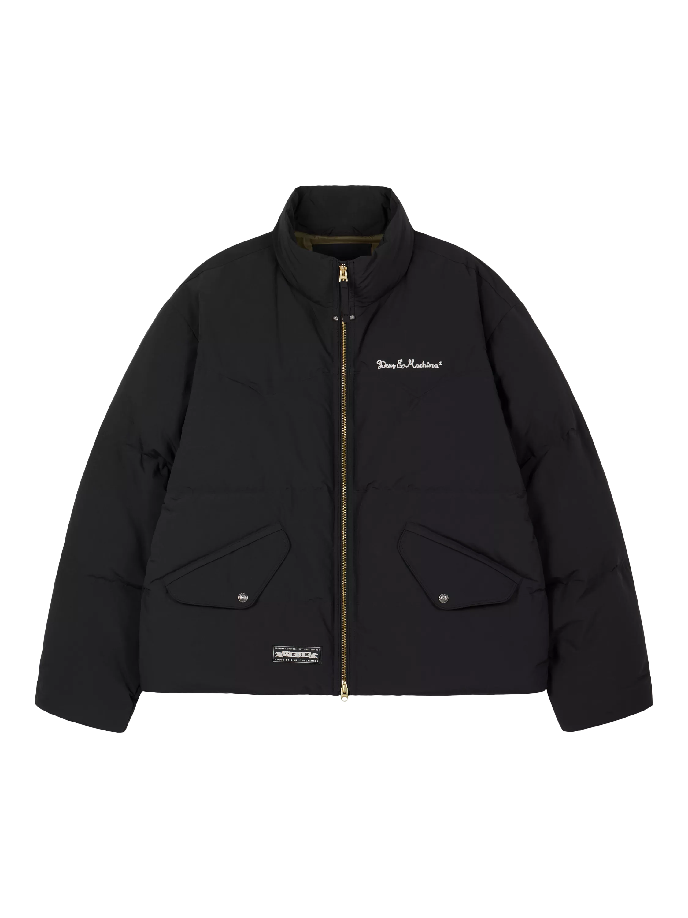 A modern outerwear piece with a high neckline, a convenient zip-fastened front and signature branding at the chest.