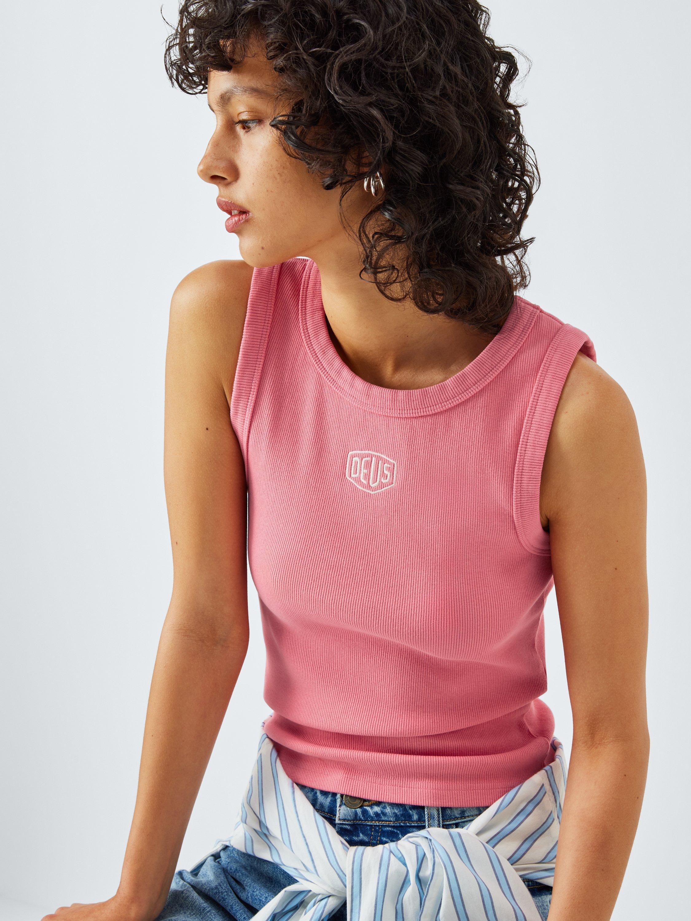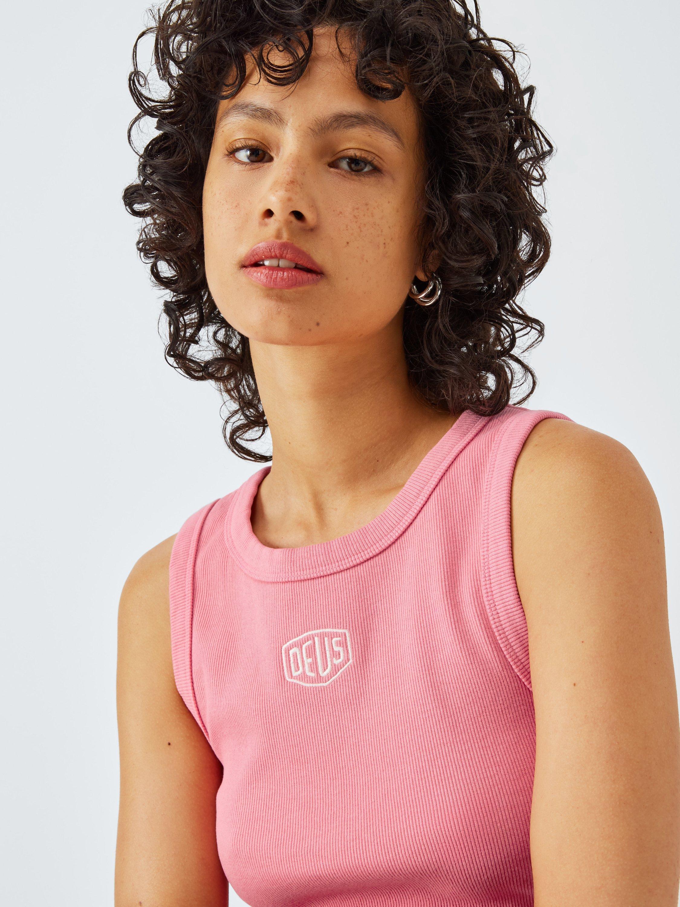 Made from a heavyweight cotton blend with stretch in the fabric for comfort, this rib tank top features mini Deus shield embroidery on the front. Finished with a heavy enzyme wash.