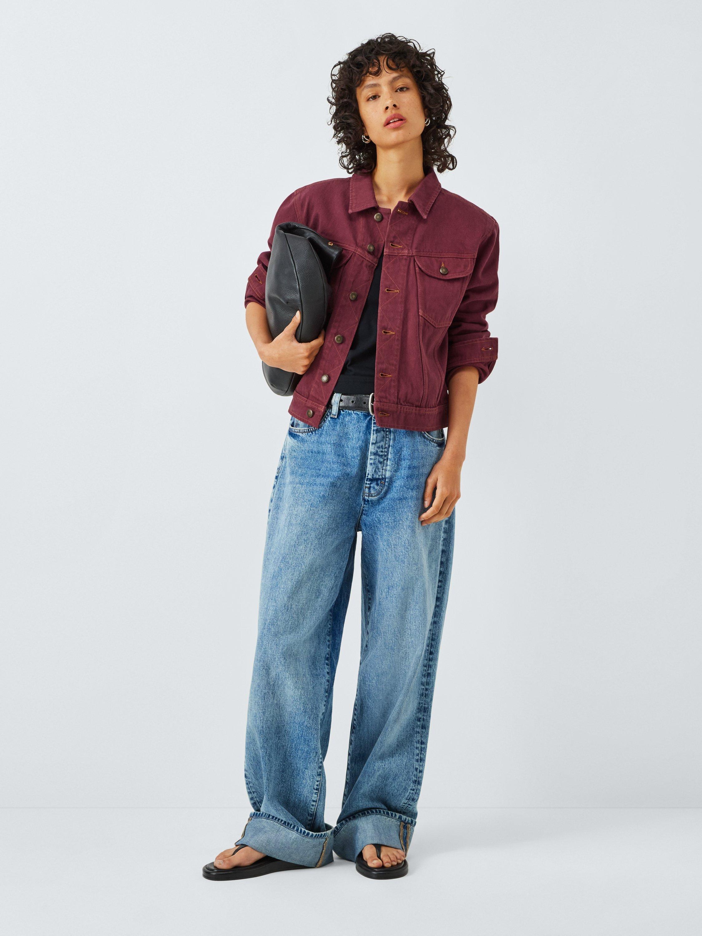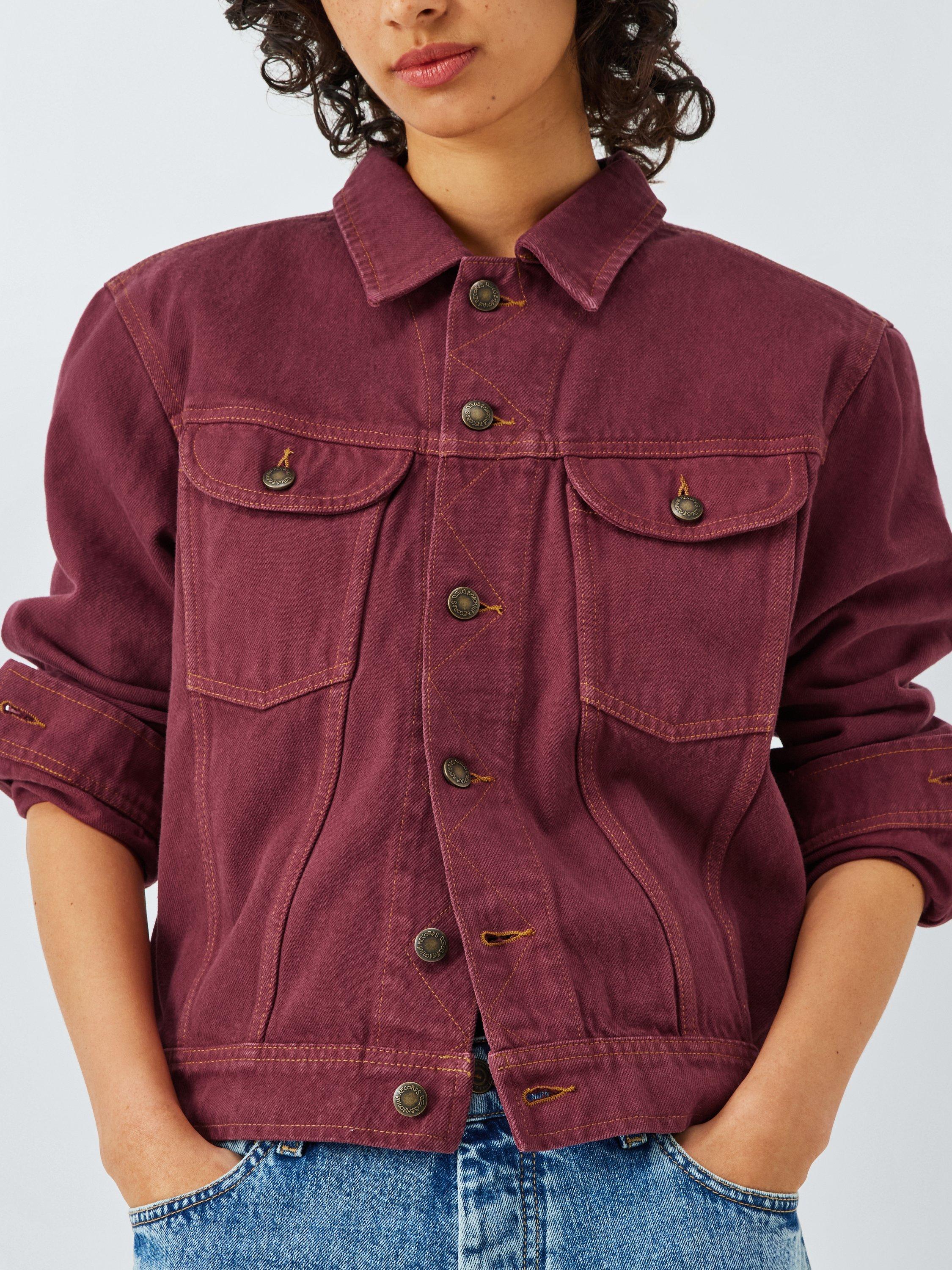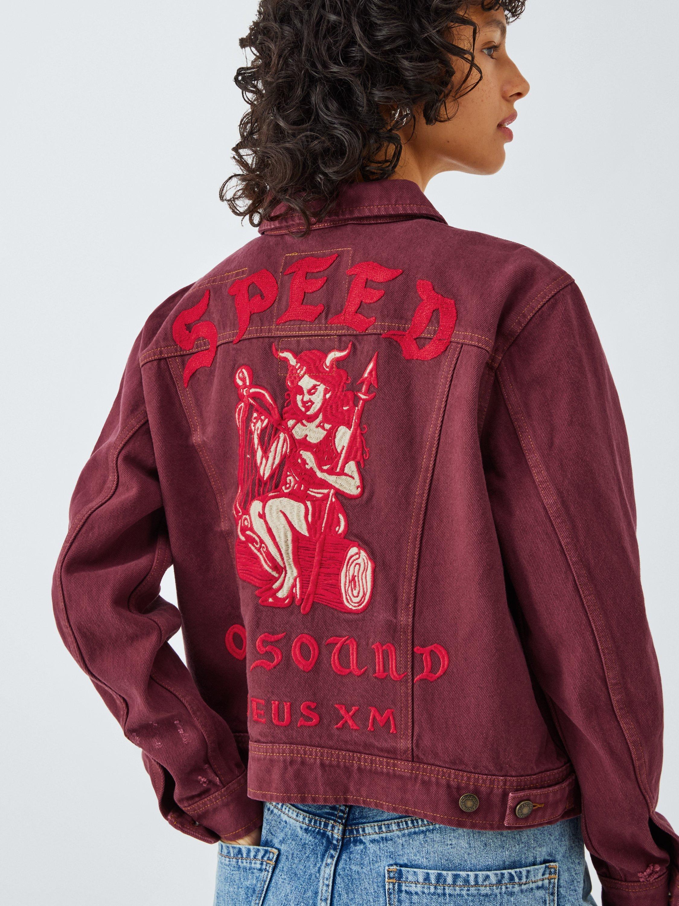 Relaxed fit jacket in an overdyed cotton denim fabric with a heavy enzyme stone wash. Styled with back embroidered art, chest patch pockets, branded shank button centre front closure and side adjusters at the hem.