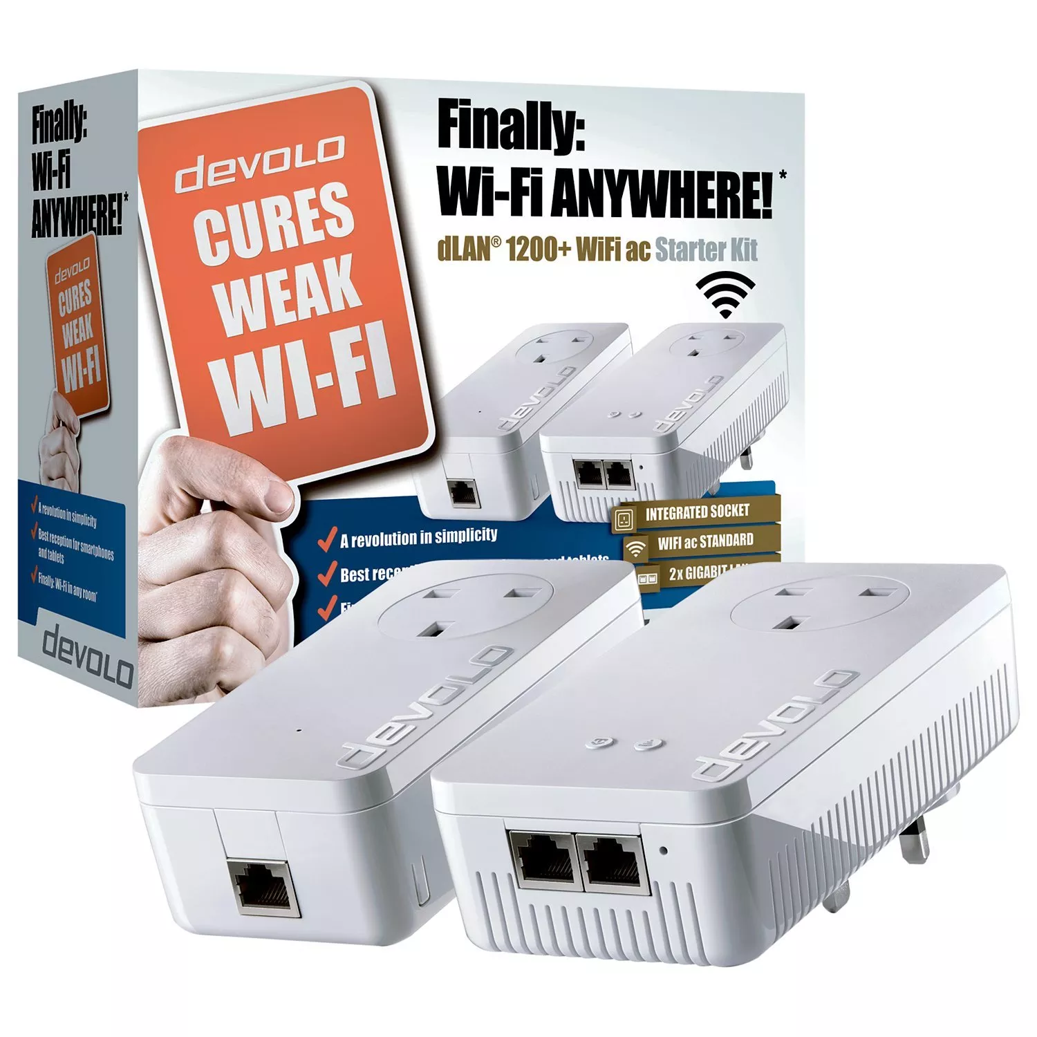 The Devolo dLAN 1200+ WiFi ac starter kit combines dLAN powerline technology with Wi-Fi to extend your network to wired and wireless devices virtually anywhere in your home with a power socket. The pair of adapters work by transferring your high speed network connection from your router, through your household electrical wiring to wherever the second unit is plugged in. You can then plug into the connection directly, using an Ethernet cable, or enjoy wireless browsing, thanks to the built in wireless LAN. Ideal for homes where solid walls and dead spots make a Wi-Fi network hard to use.