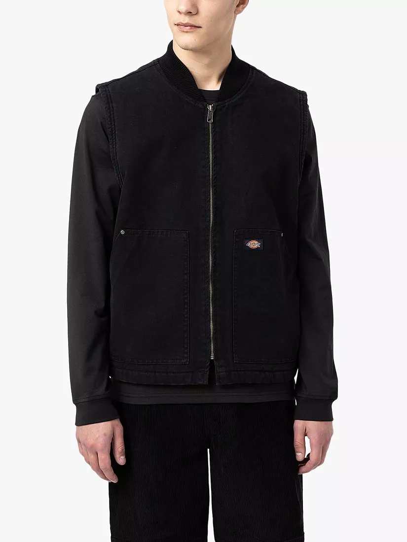 The Dickies Duck Canvas Vest is a relaxed fit, zip-up utility vest with authentic detailing and fabrication. Made of brushed duck canvas cotton that has been stonewashed for a softer hand feel that results in a garment that's comfortable and hardwearing with a pre-worn look. Slip on over everyday tees and knits when the temperature drops.