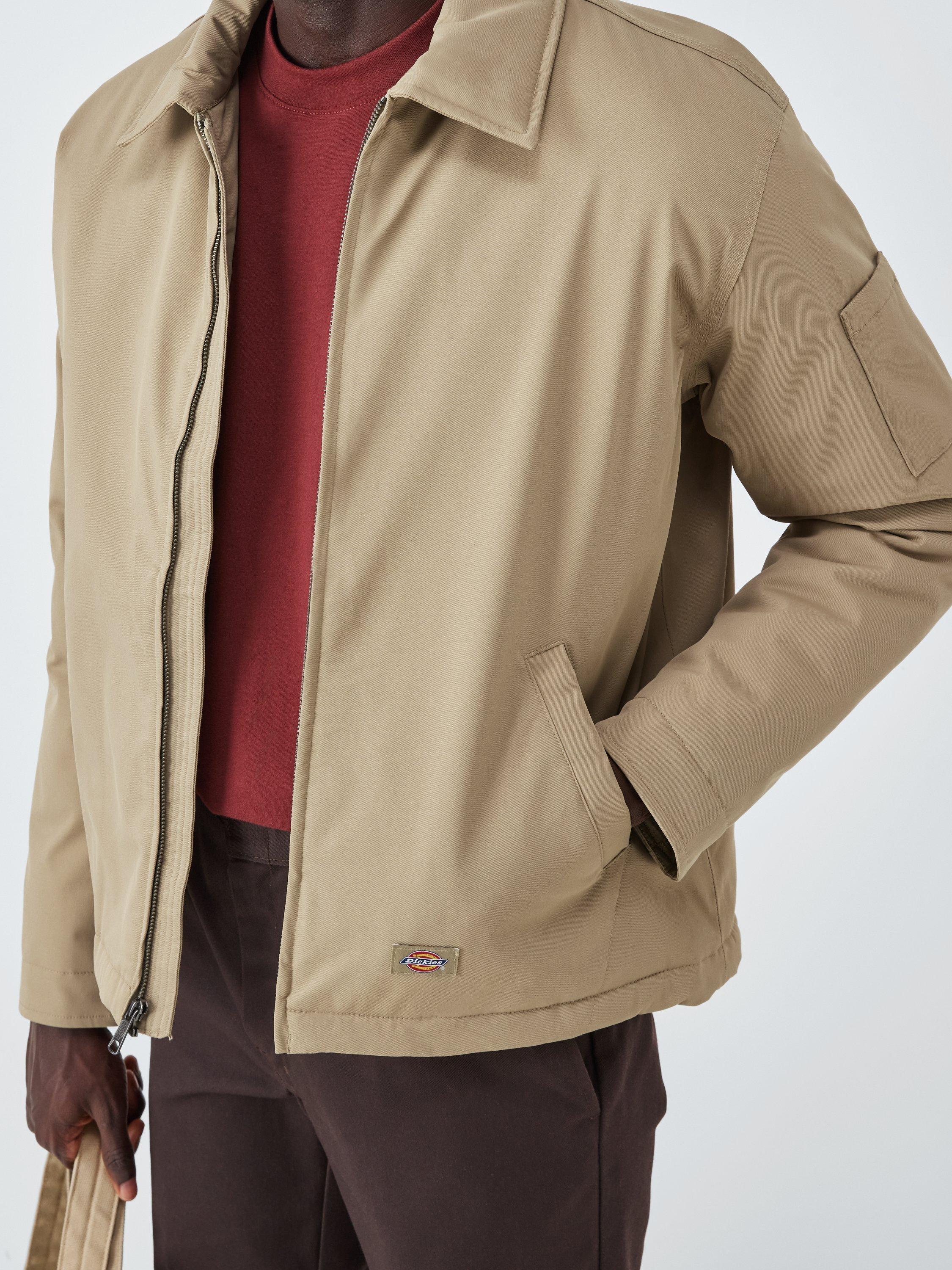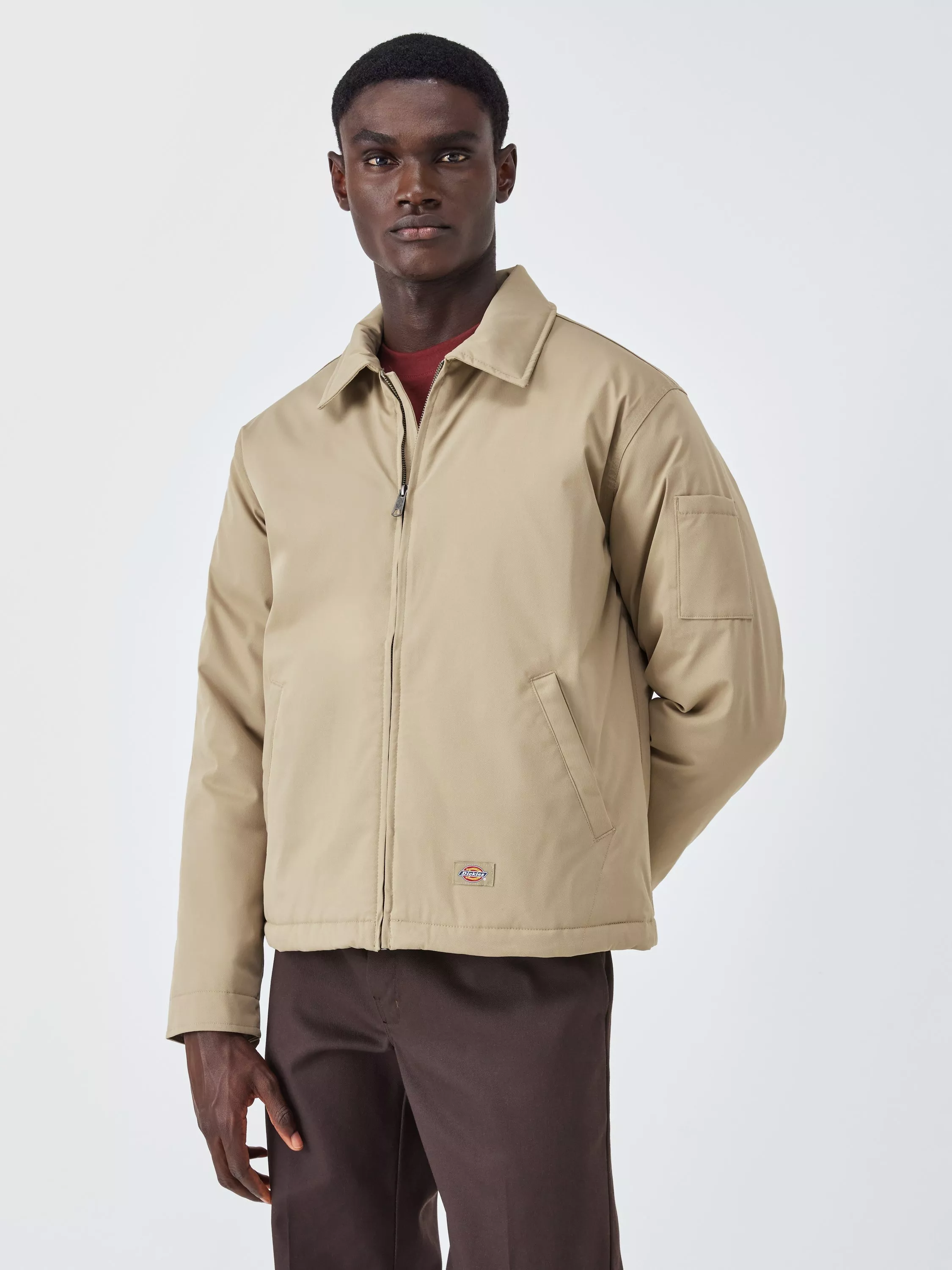 The thoughtful construction delivers on both style and substance. It includes a full metal zip-through fastening, a padded one-piece collar, and cuffs with integrated elastic for a secure fit. Details like the internal hem adjuster and the functional arm patch pocket make this design exceptionally useful for daily wear. A woven Dickies label above the hem adds a subtle, authentic finish to this timeless, yet newly winterised, jacket.