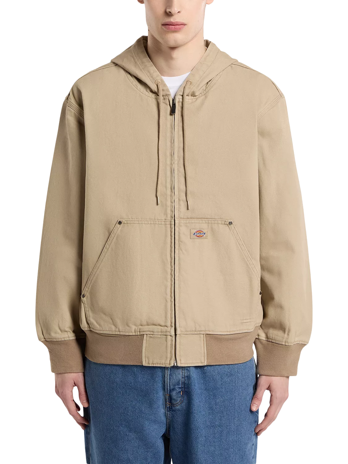This Dickies workwear-inspired hooded jacket is made from cotton canvas and features faux down padding for added warmth.