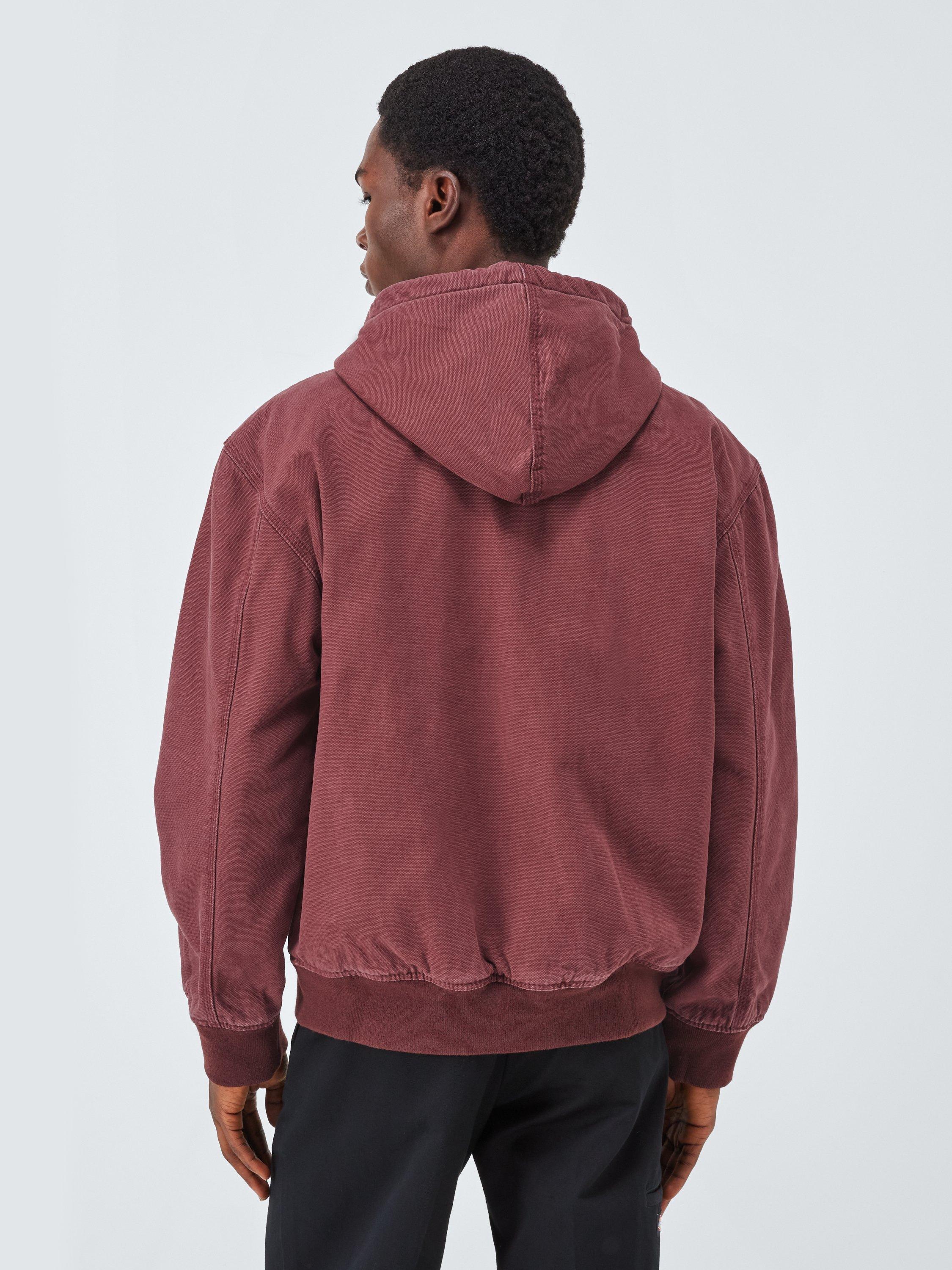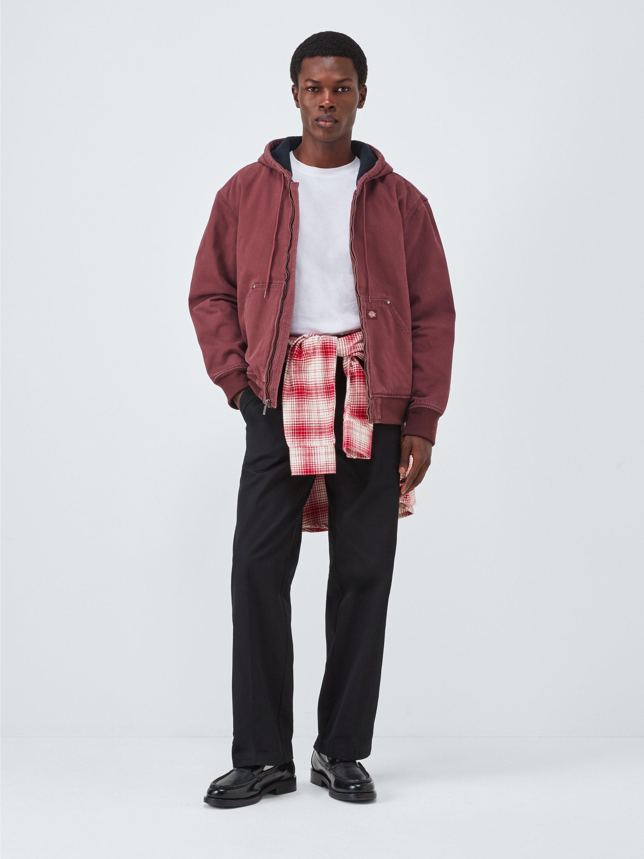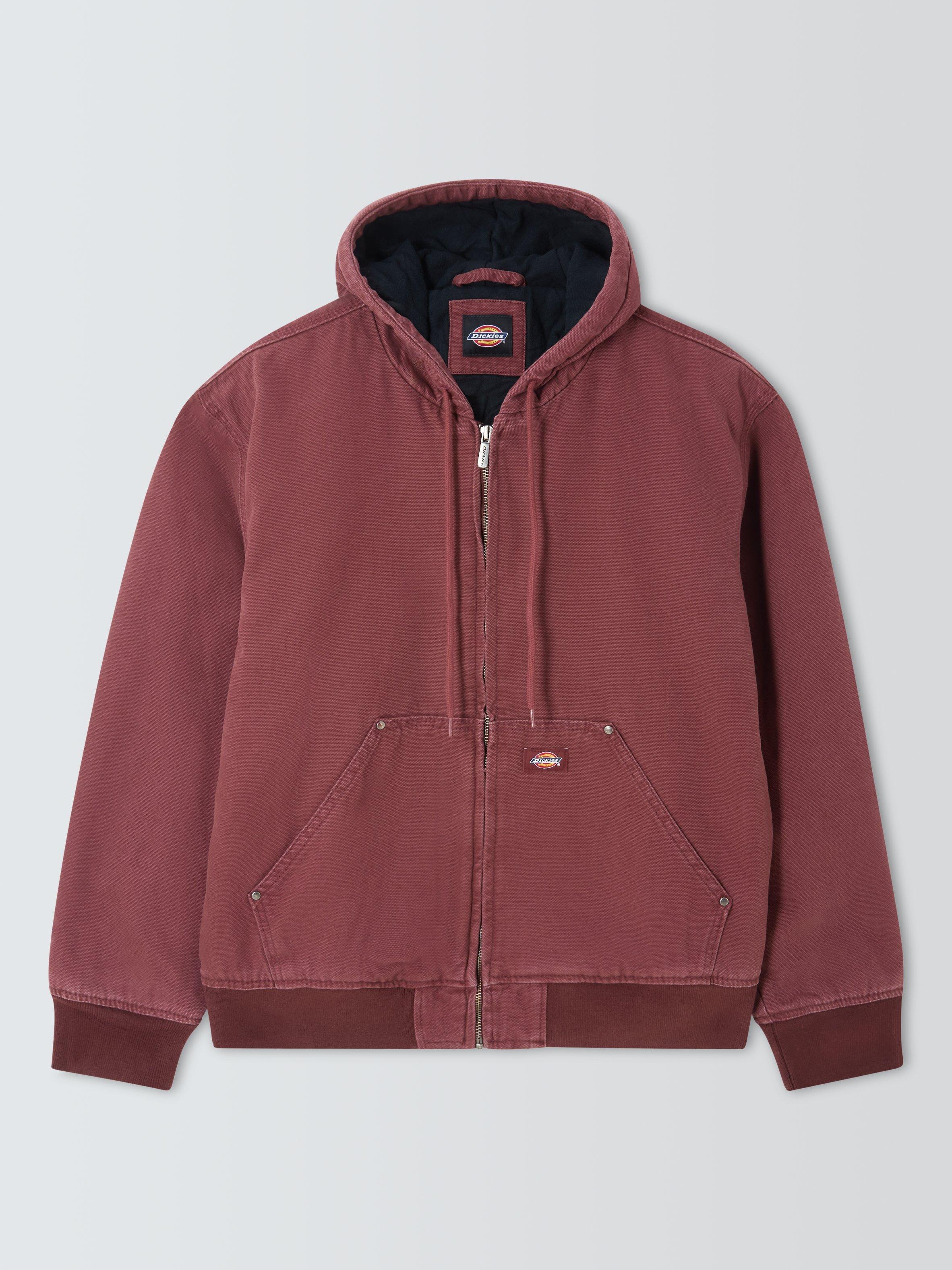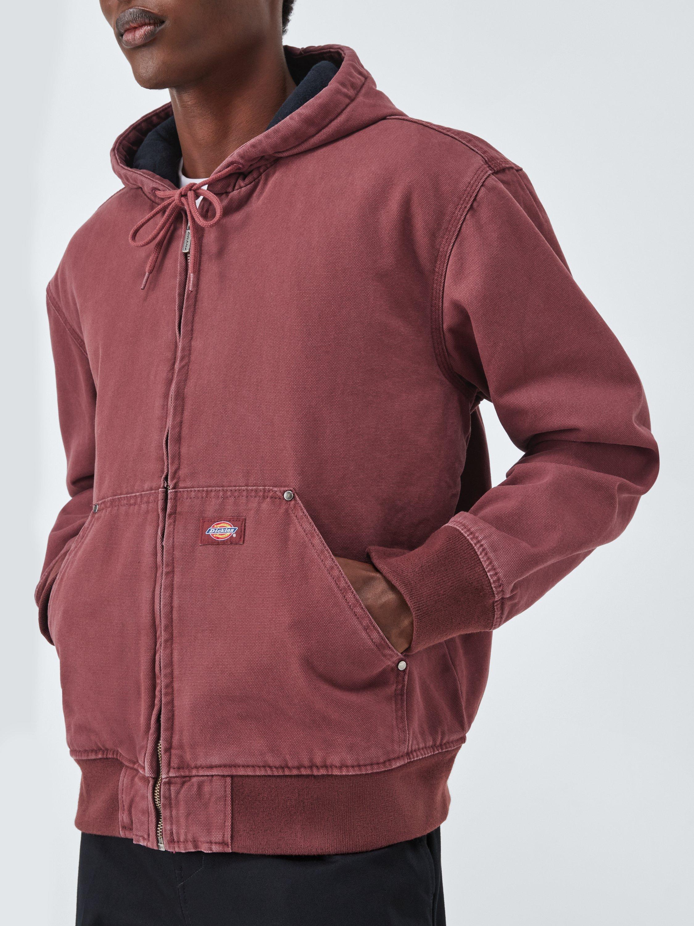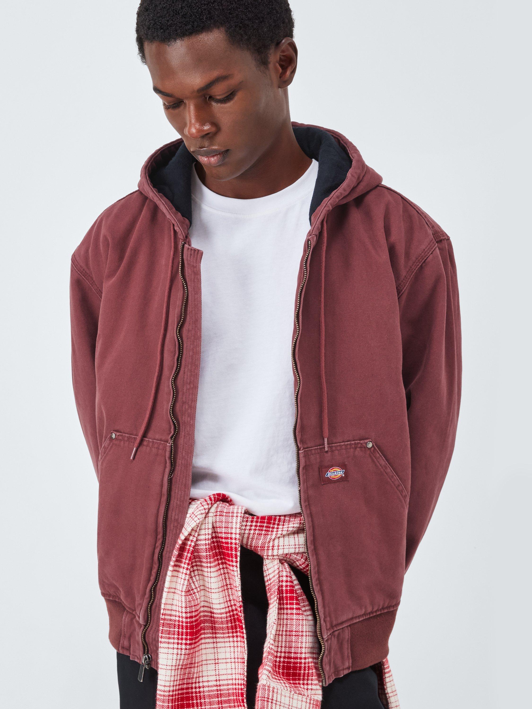 The Hilham Hooded Canvas Jacket is a tough and enduring bomber imbued with Dickie's DNA. This relaxed-fit jacket is made from 12oz comfort-washed canvas cotton, featuring light quilting and padding for warmth. Practical details include a drawstring hood, a full metal zip, and a kangaroo pocket finished with metal rivets. Finished with ribbed cuffs and hem, and a cosy flannel lining inside the cuffs, it's made for enduring wear.