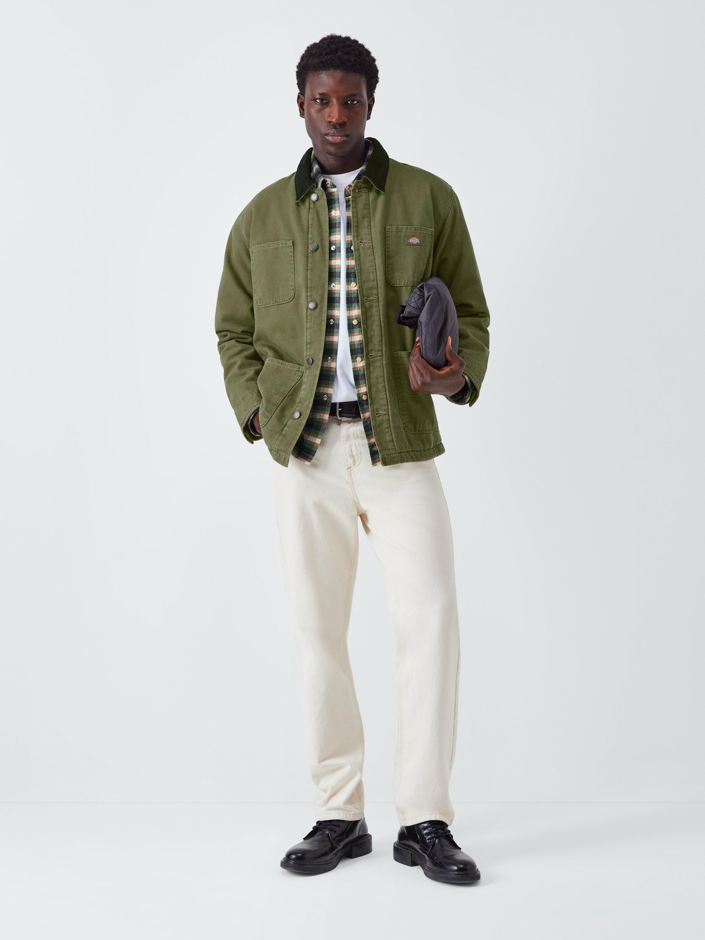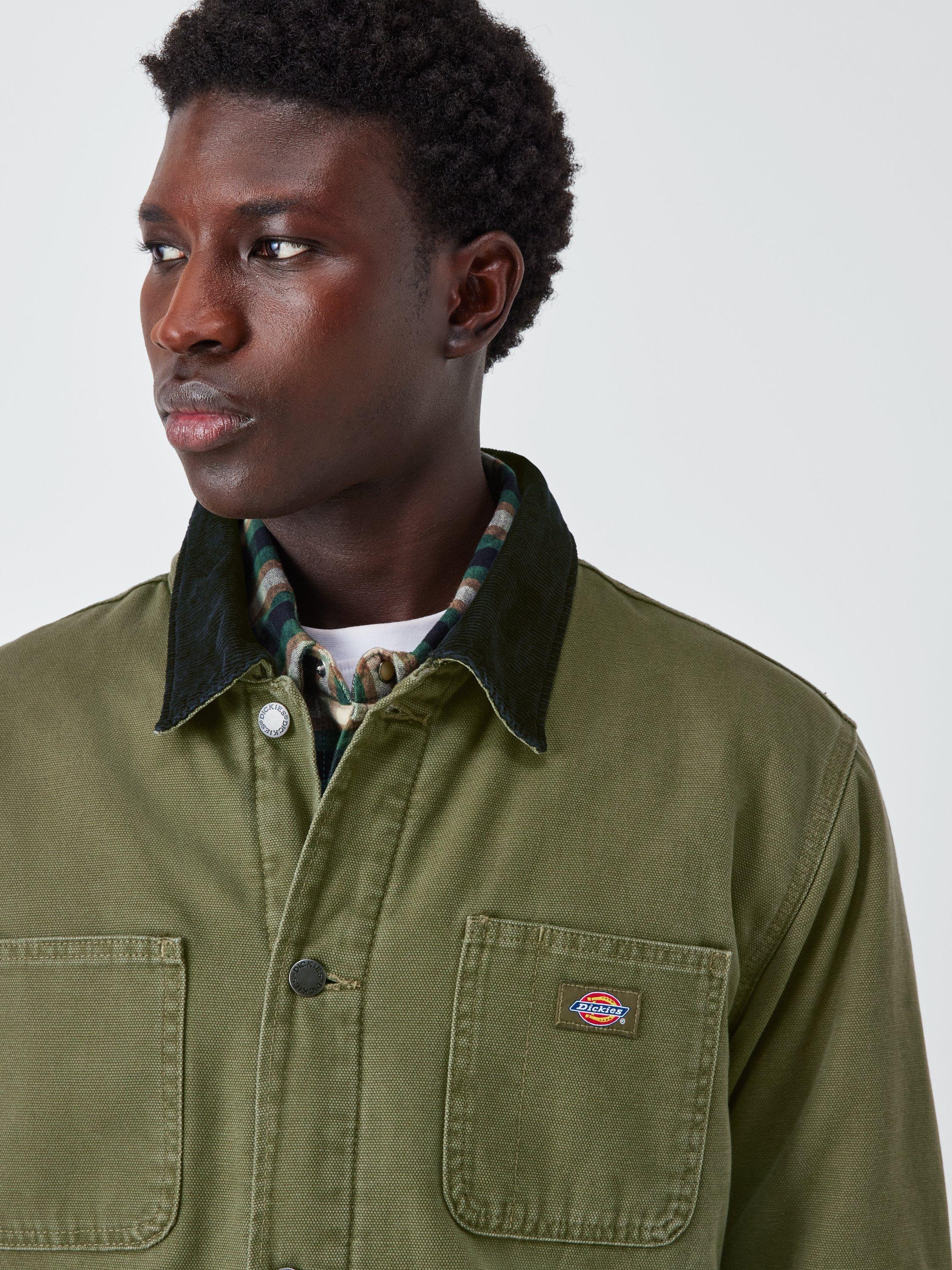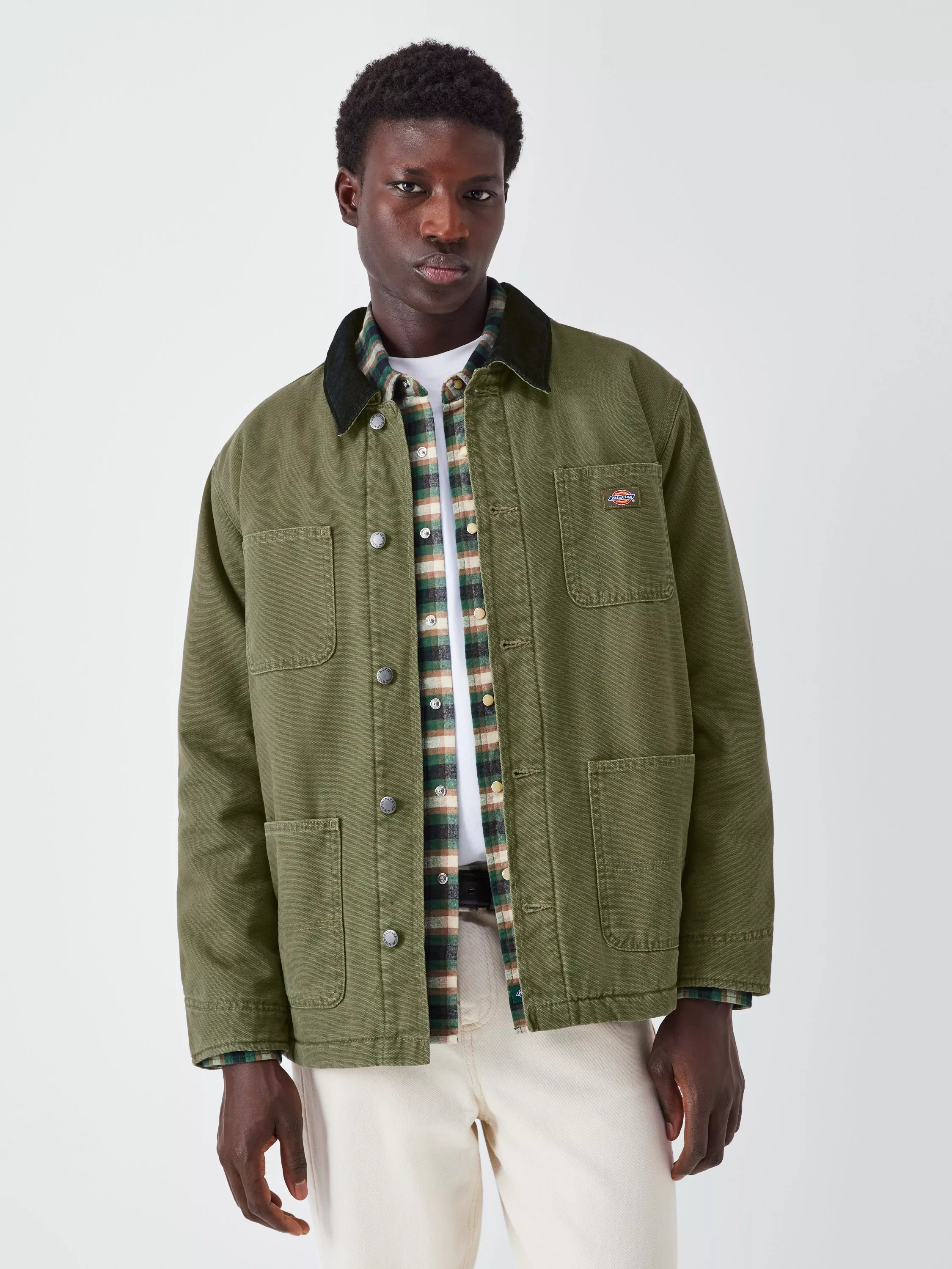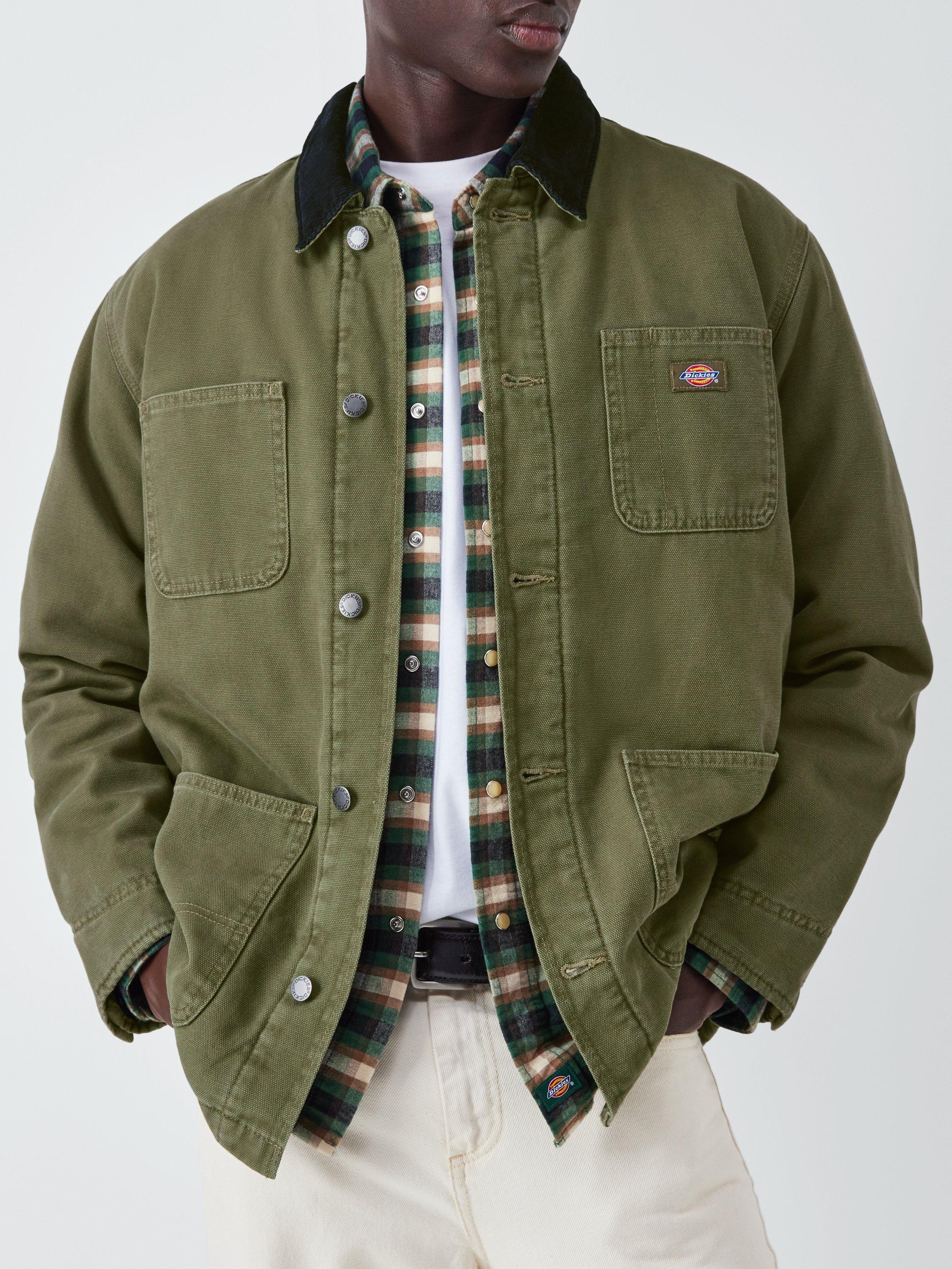 The Chore Lined Canvas Jacket is a tough and timeless staple that offers authentic Dickies fabrication and detailing. Its relaxed fit is cut from 12oz reactive and pigment-dyed cotton, built to last with quality and longevity in mind. For true comfort and warmth, the design features a quilted flannel lining, complemented by corduroy detailing on the collar and inside the cuffs. Practical touches like sturdy metal trims, rivets at the pocket corners, internal pockets, and a metal shank front closure ensure this is a jacket ready for anything.