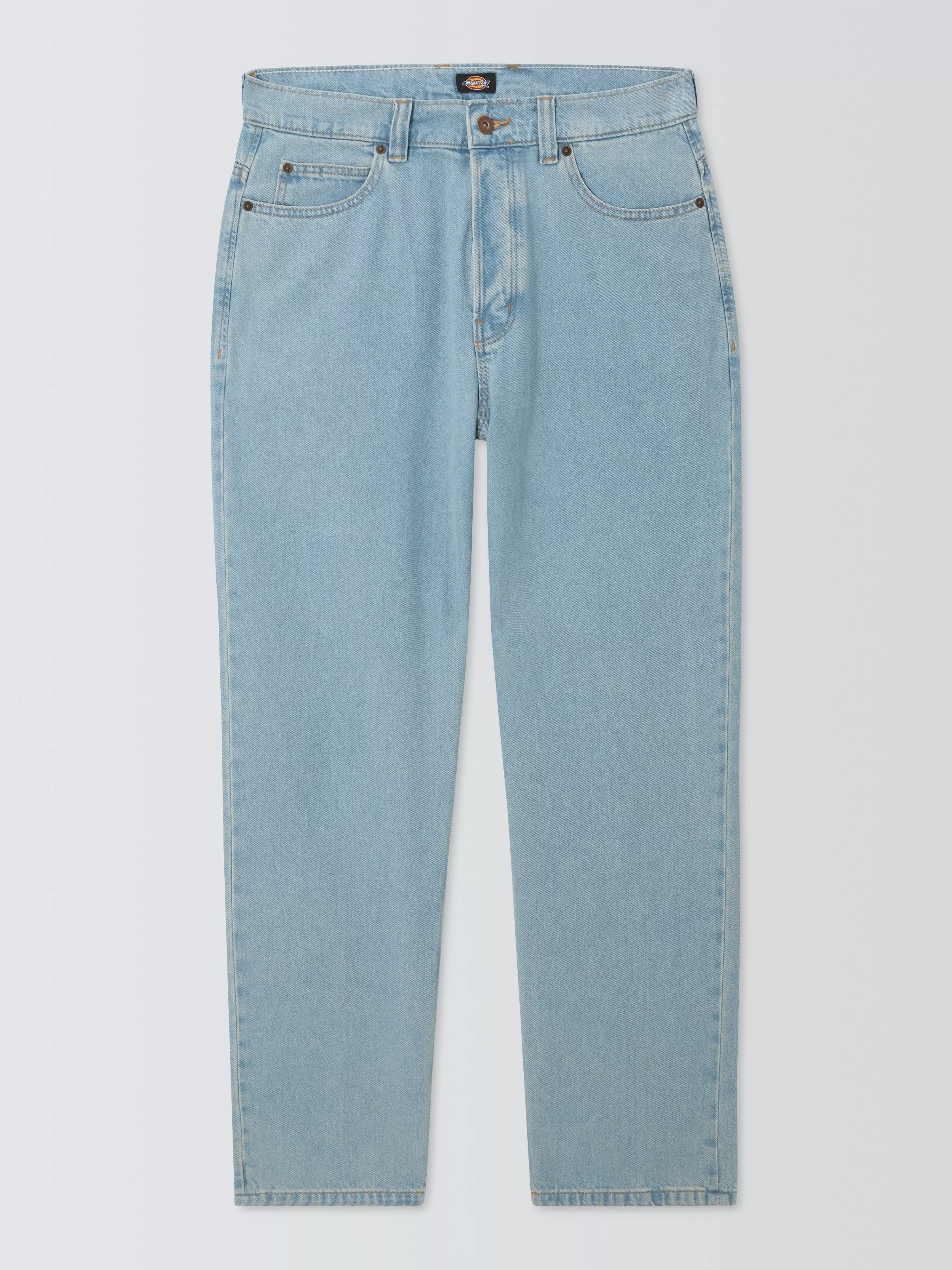 The Thomasville Denim jean is a loose cut, 5-pocket jean with authentic style and detailing. A timeless and relaxed straight cut leg with a regular waist, featuring iconic woven Dickies label on the back pocket. Made with hardwearing BCI certified denim, and available this season in Light Denim, Classic Blue, Blue Marble Wash, Overdye Brown Wash, Rinsed Black, and Black Wash. A laidback, hardwearing denim staple made to stand the test of time.