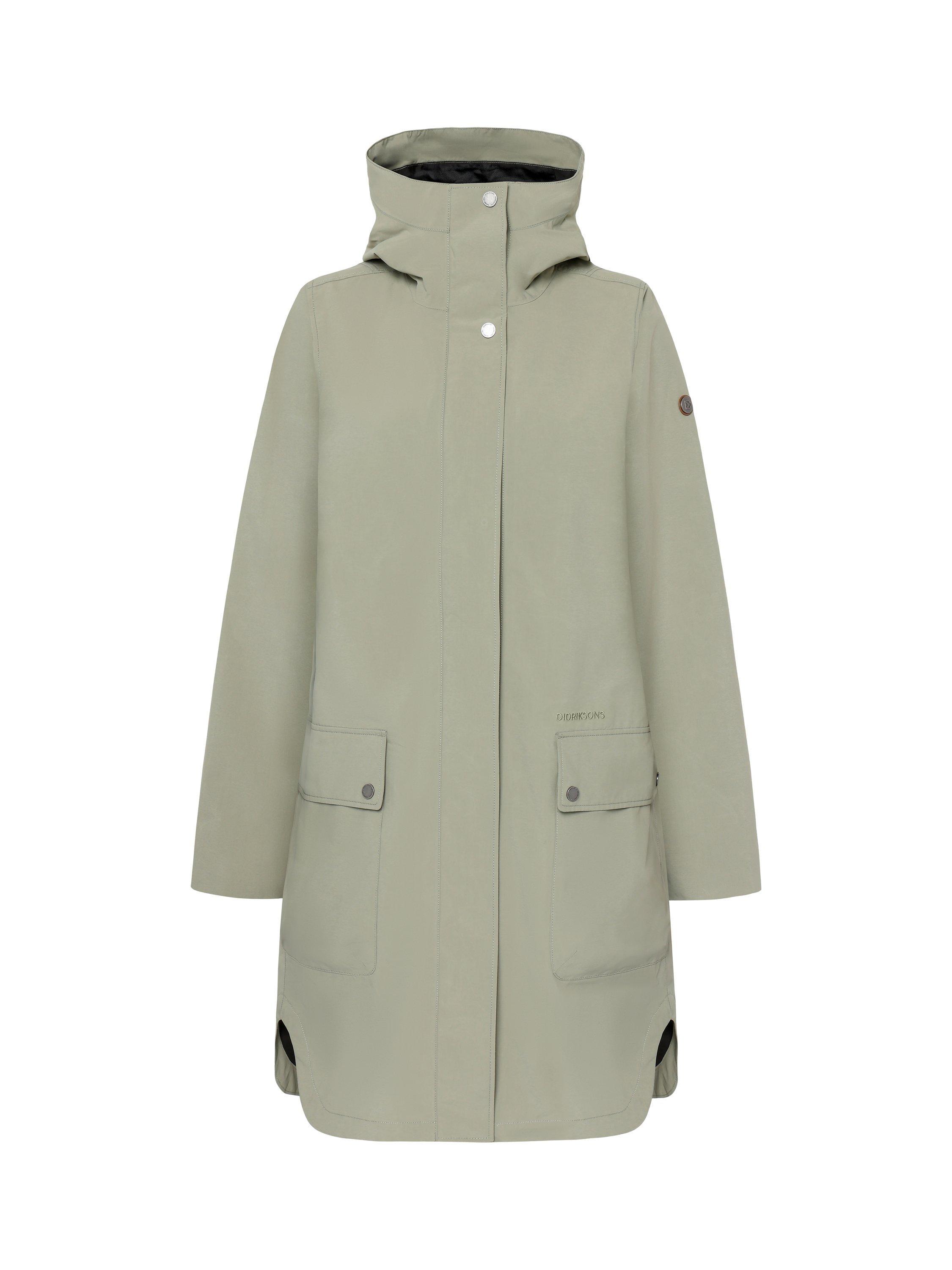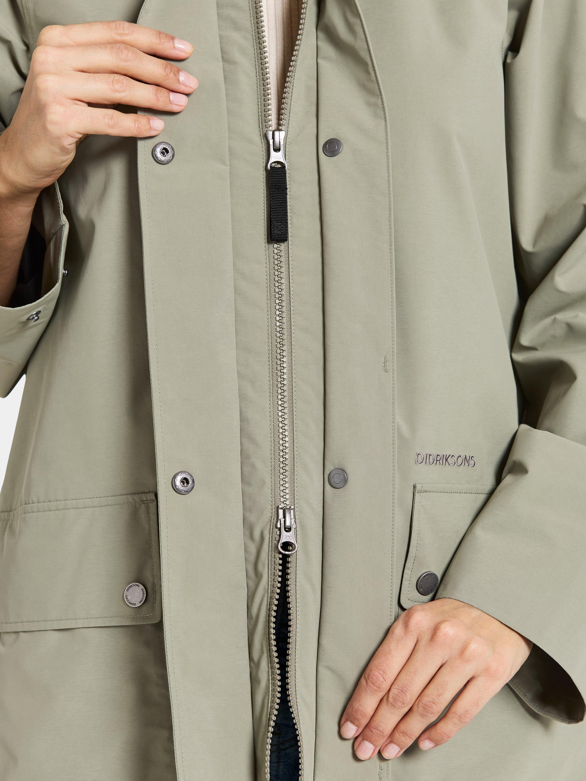 Adria is a parka with a relaxed fit, perfect for everyday adventures. It is both water and windproof with taped seams and made from a breathable material, making it ideal for all weather conditions. The parka has an adjustable hood and closes with a combination of zip and buttons for extra protection. The practical front pockets with buttons provide space for your essentials, while the adjustable cuffs with buttons ensure a comfortable fit. The A-shaped silhouette gives a modern and casual look. The parka has a PFC-free water-repellent finish.