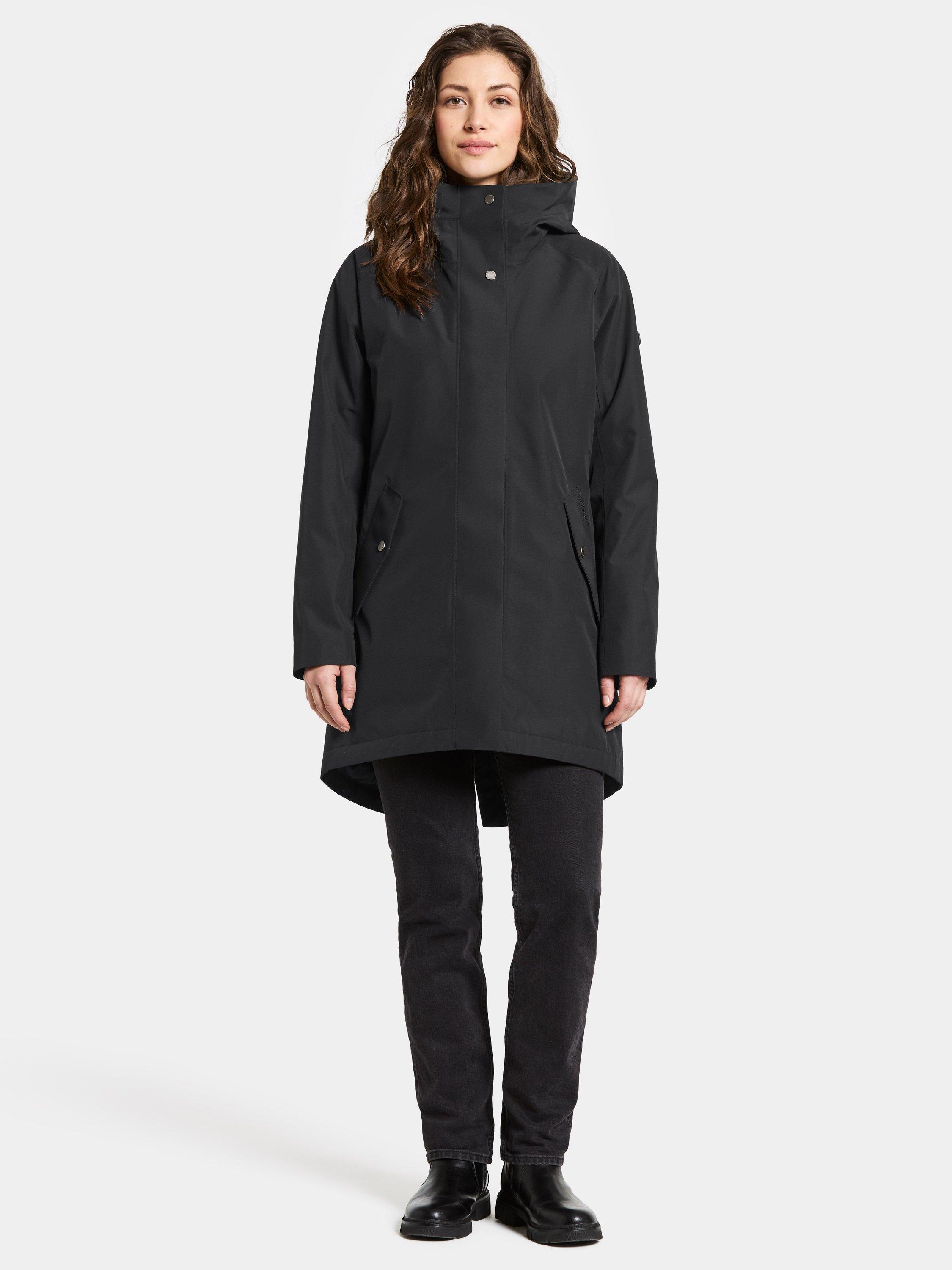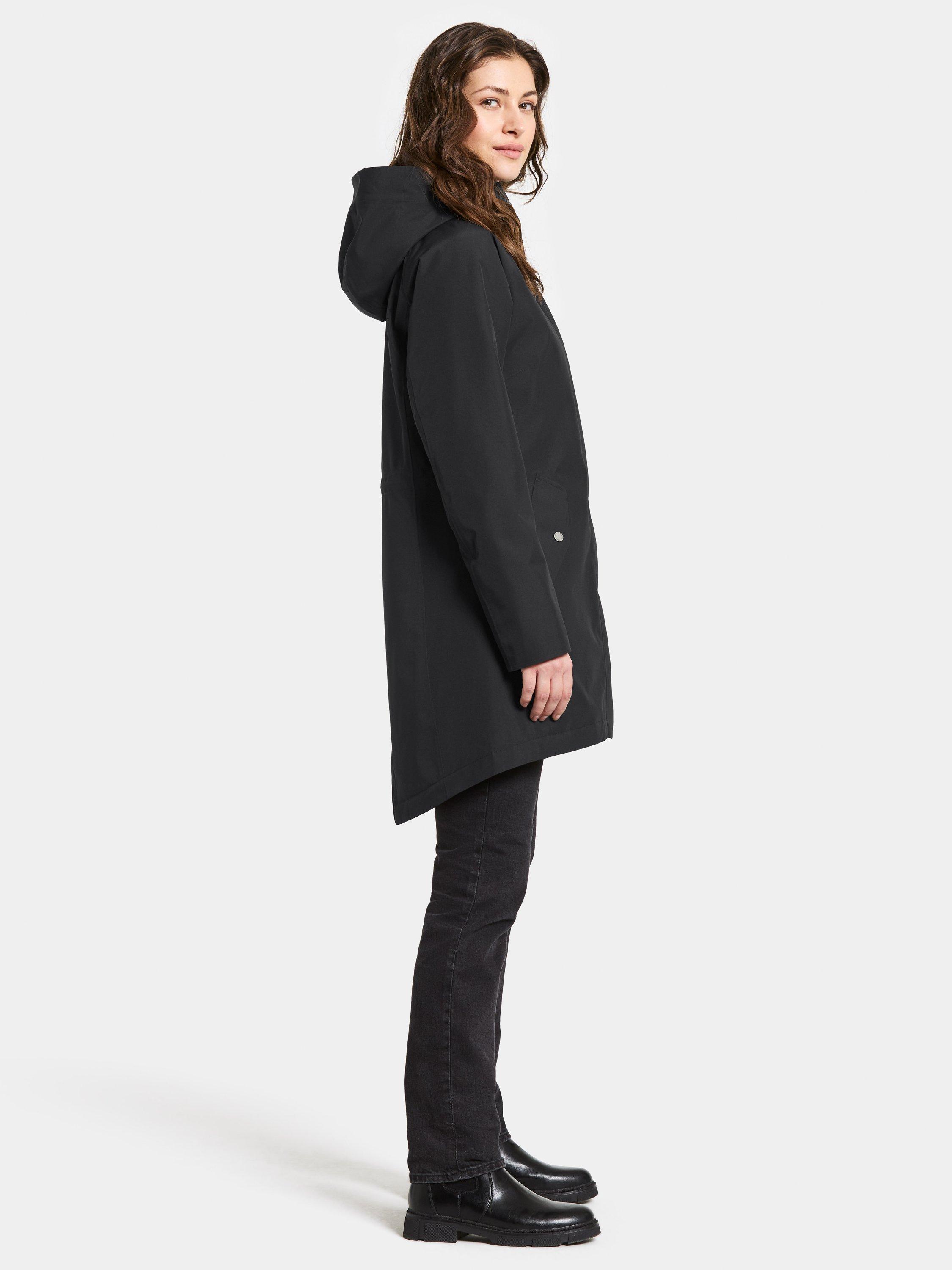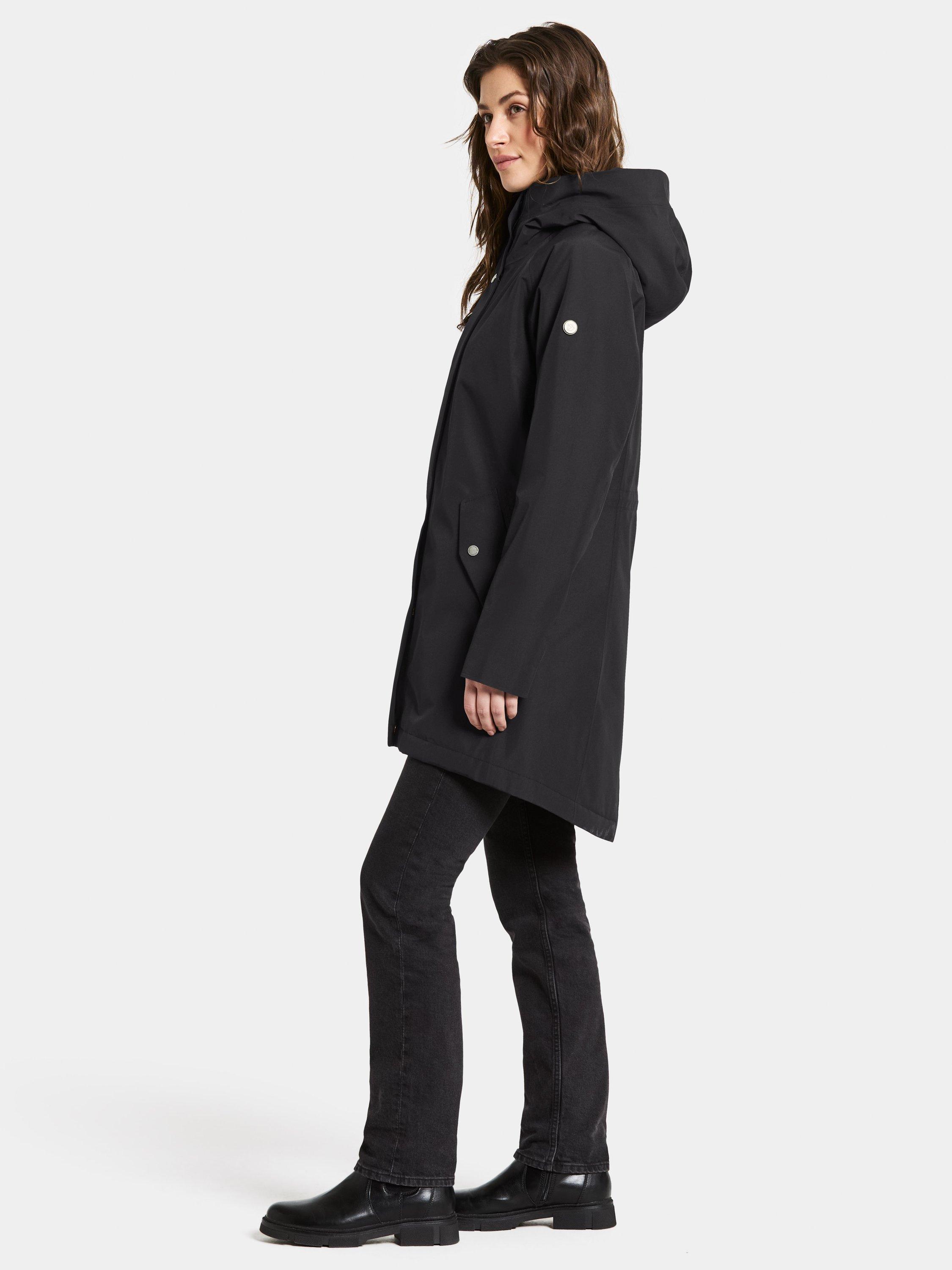 Alana is a sleek parka with padding, perfect for both everyday use and outdoor activities. It is water and windproof with taped seams and made from a breathable material, making it ideal for all weather conditions. The parka features a two-way zip at the front and an adjustable hood for extra protection. The waist can be adjusted with a drawstring on the inside for a personalised fit. The side pockets close with buttons and the cuffs have elasticated edges for extra comfort. The zip never sits directly against the chin thanks to the collar's design.