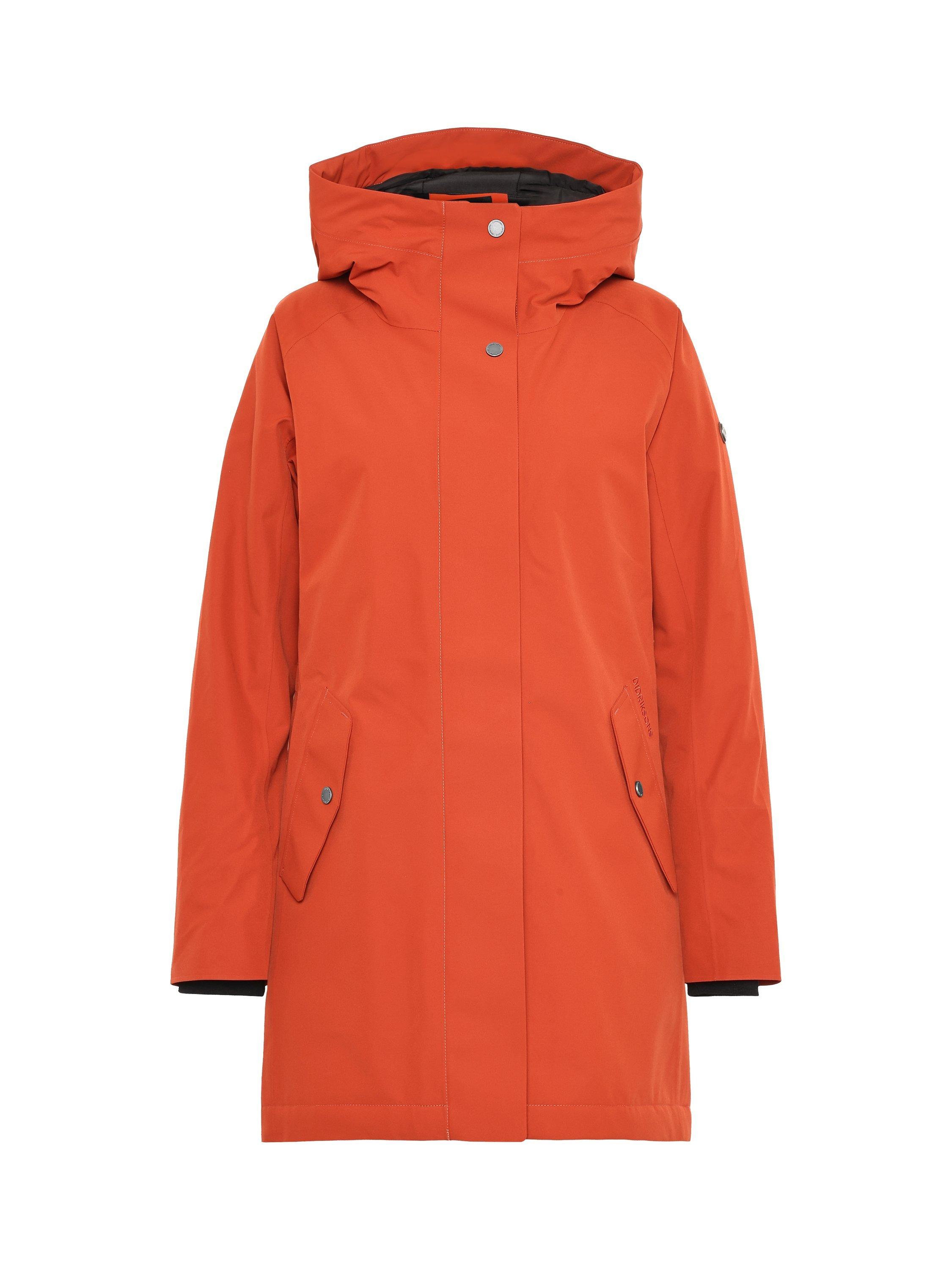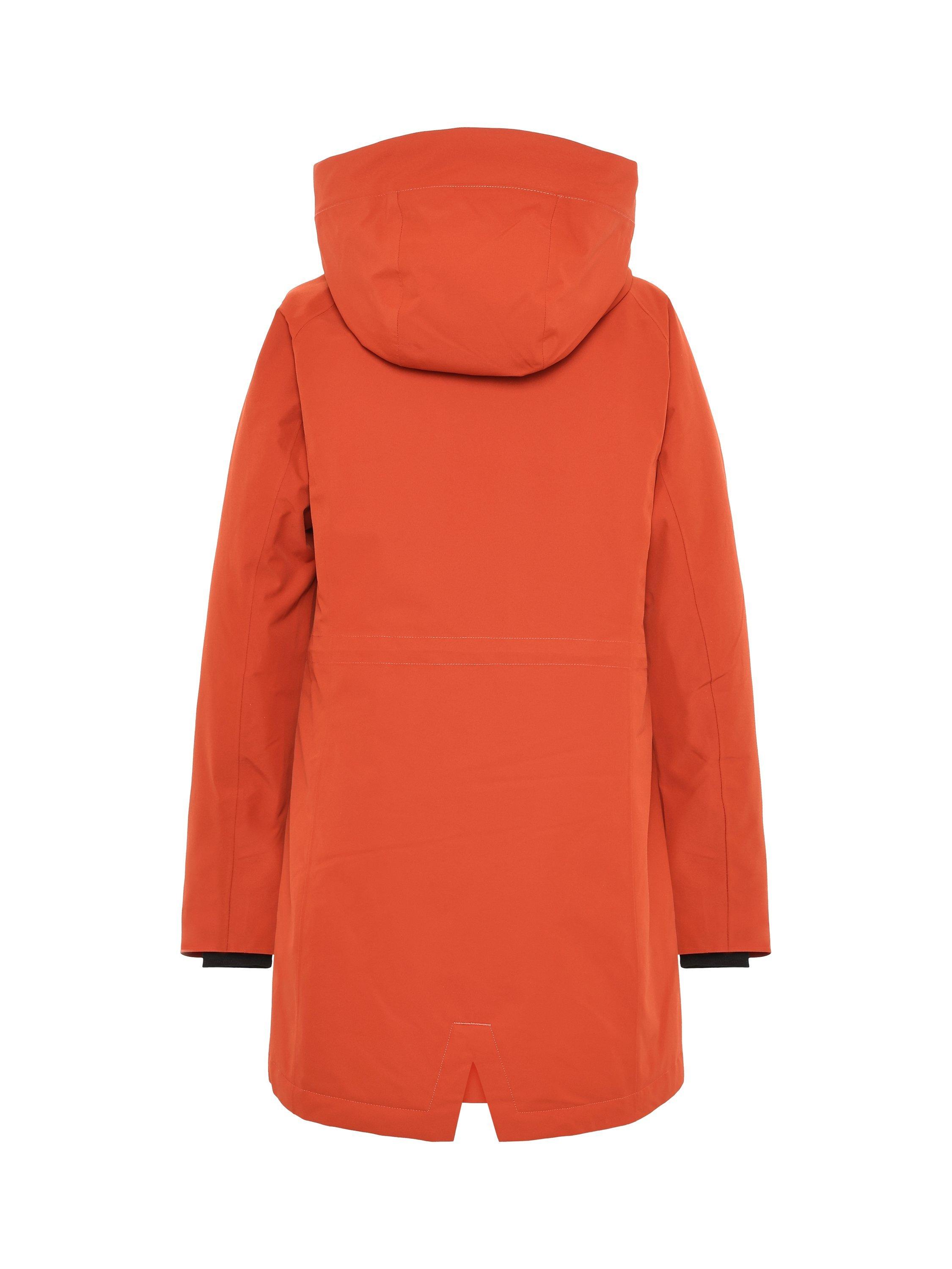Alana is a sleek parka with padding, perfect for both everyday use and outdoor activities. It is water and windproof with taped seams and made from a breathable material, making it ideal for all weather conditions. The parka features a two-way zip at the front and an adjustable hood for extra protection. The waist can be adjusted with a drawstring on the inside for a personalised fit. The side pockets close with buttons and the cuffs have elasticated edges for extra comfort. The zip never sits directly against the chin thanks to the collar's design.