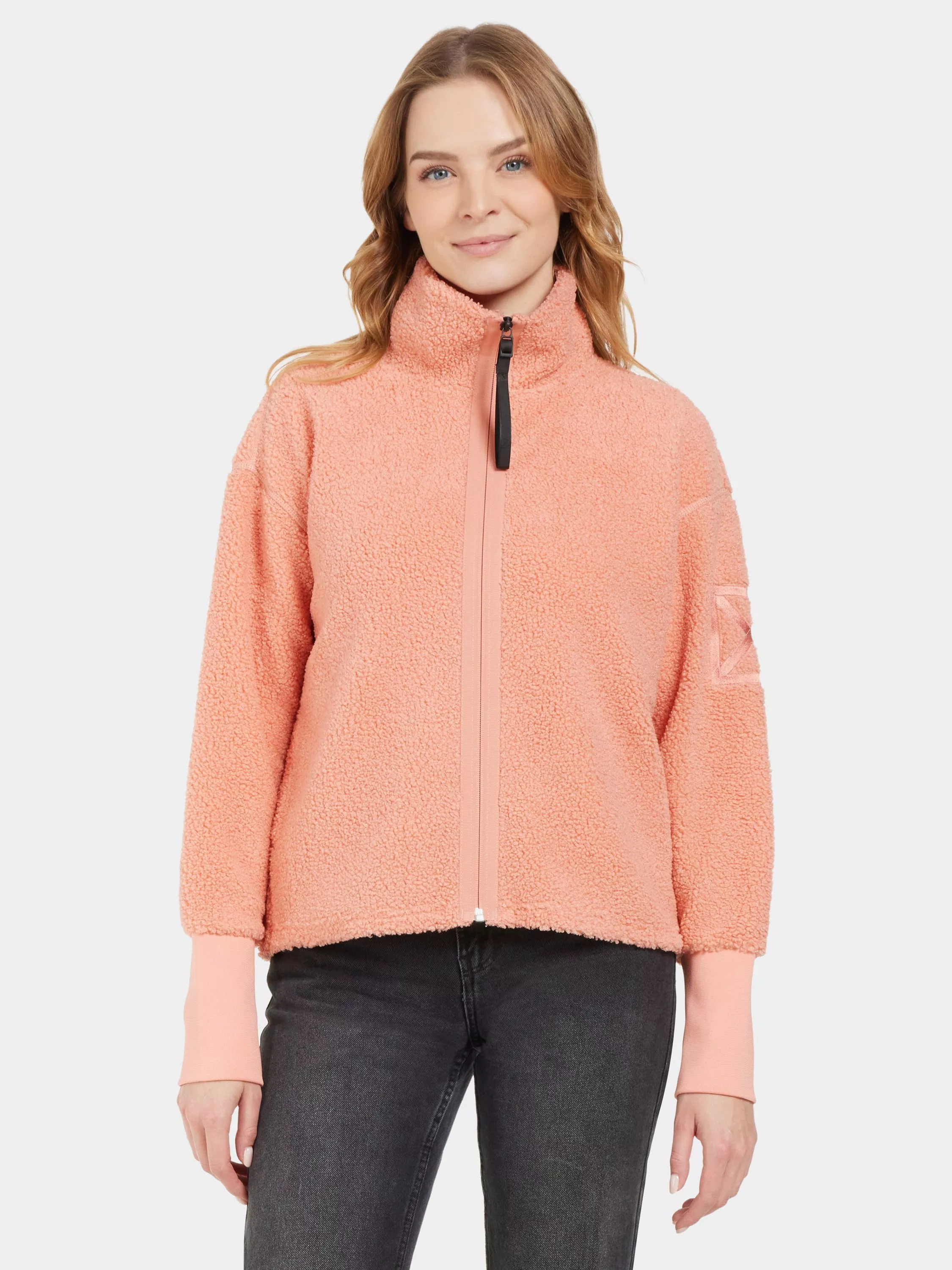 Alexa is a soft and comfortable fleece jacket in pile fabric, perfect for outdoor activities. It has a straight fit and is designed to provide maximum comfort with its 4-way stretch fabric. The jacket has elastic cuffs and practical side pockets, as well as a front zipper closure. It is ideal for layering and provides a cosy feeling on chilly days.