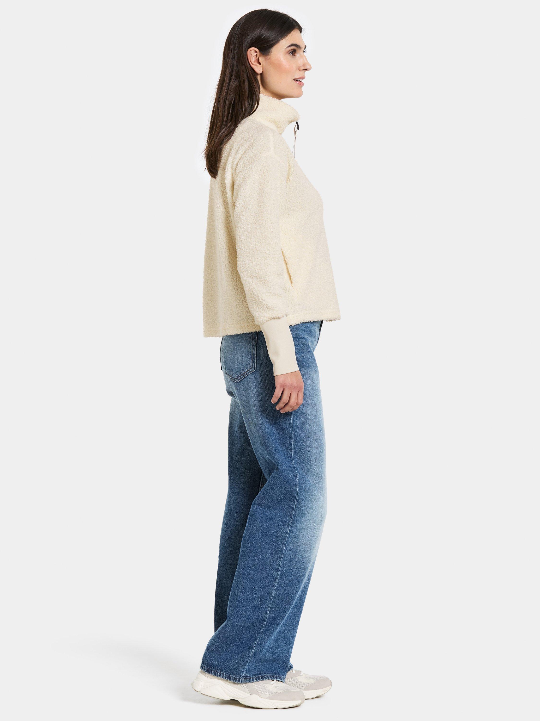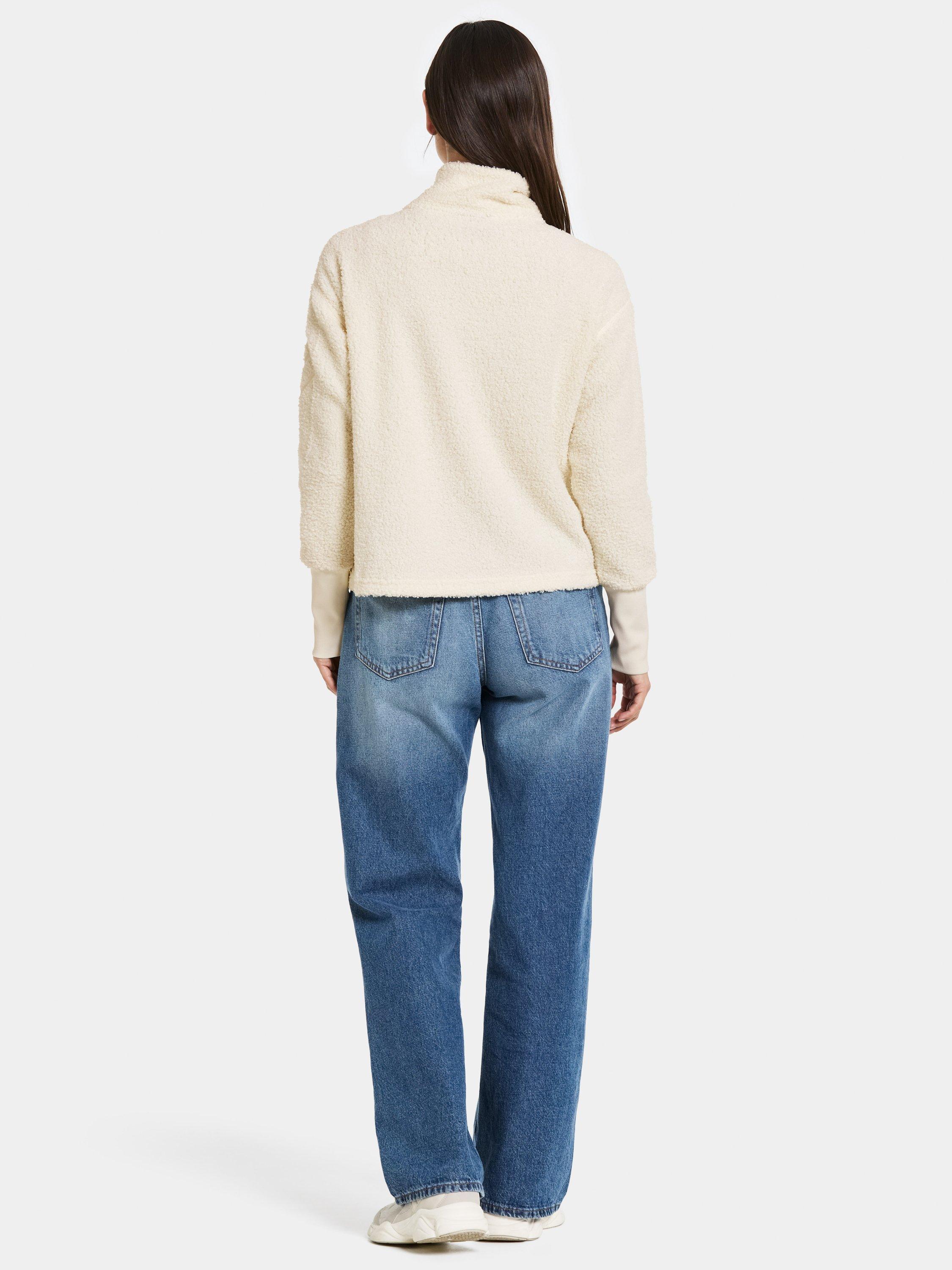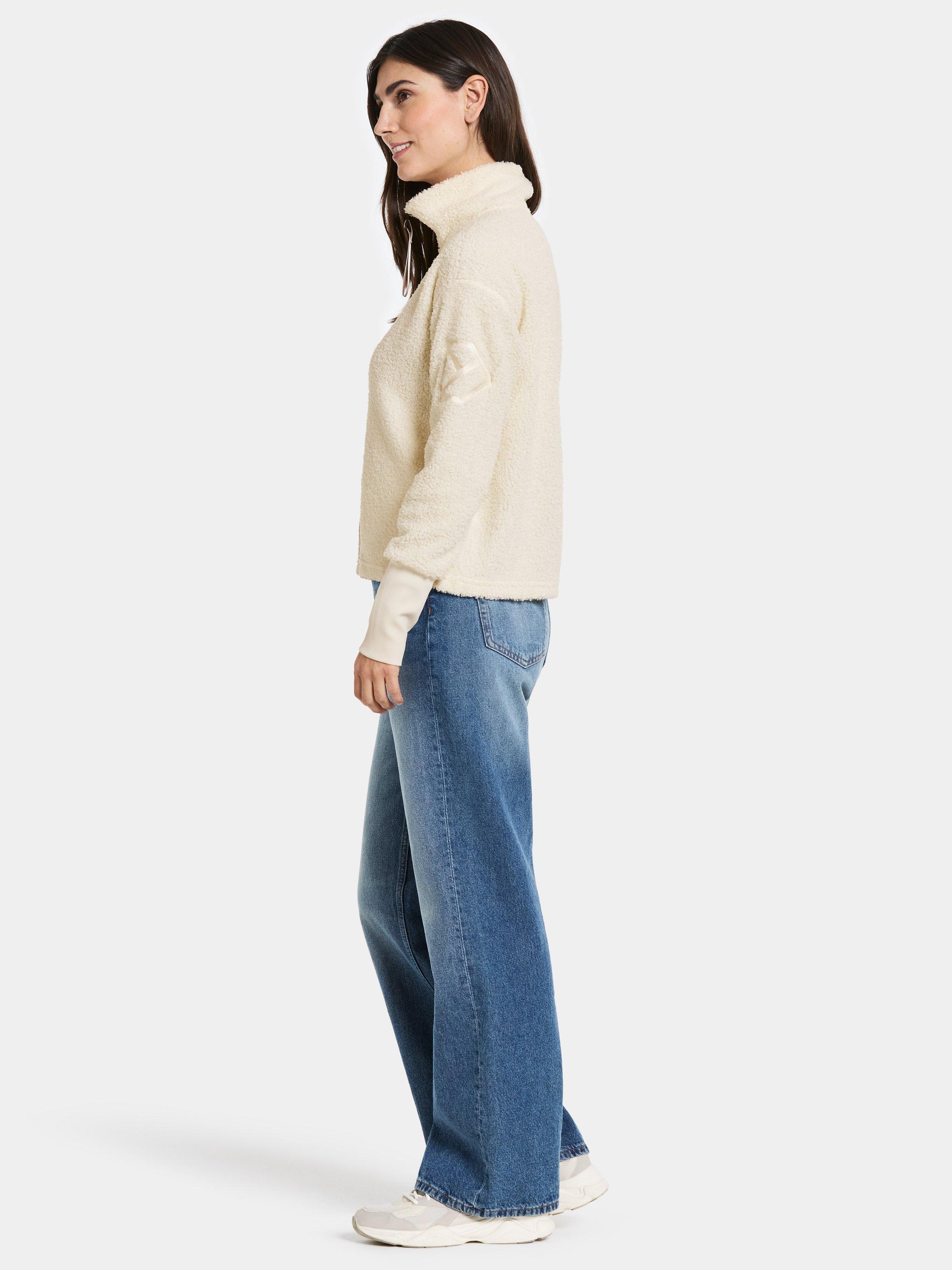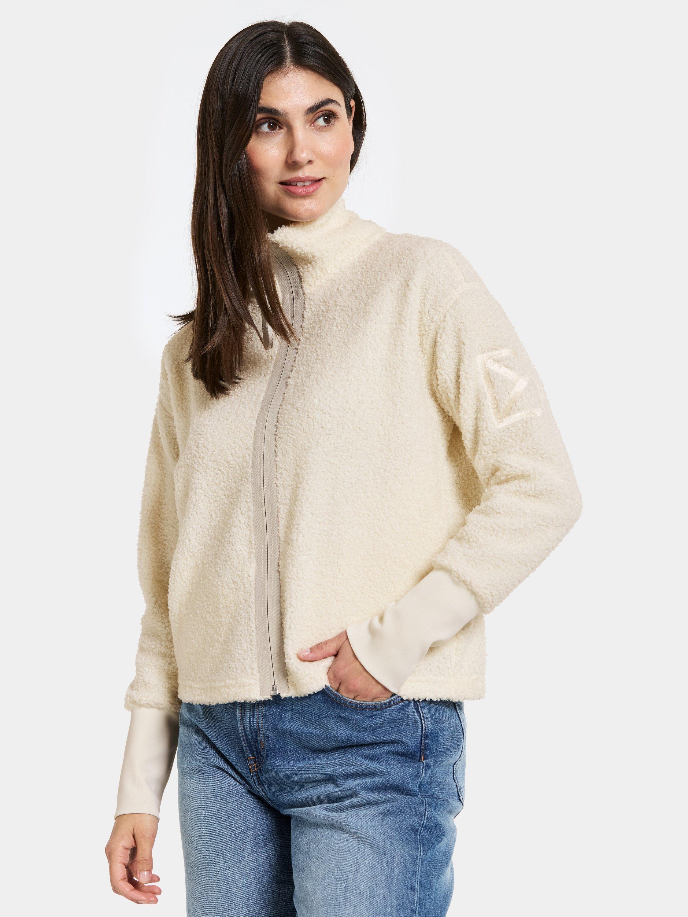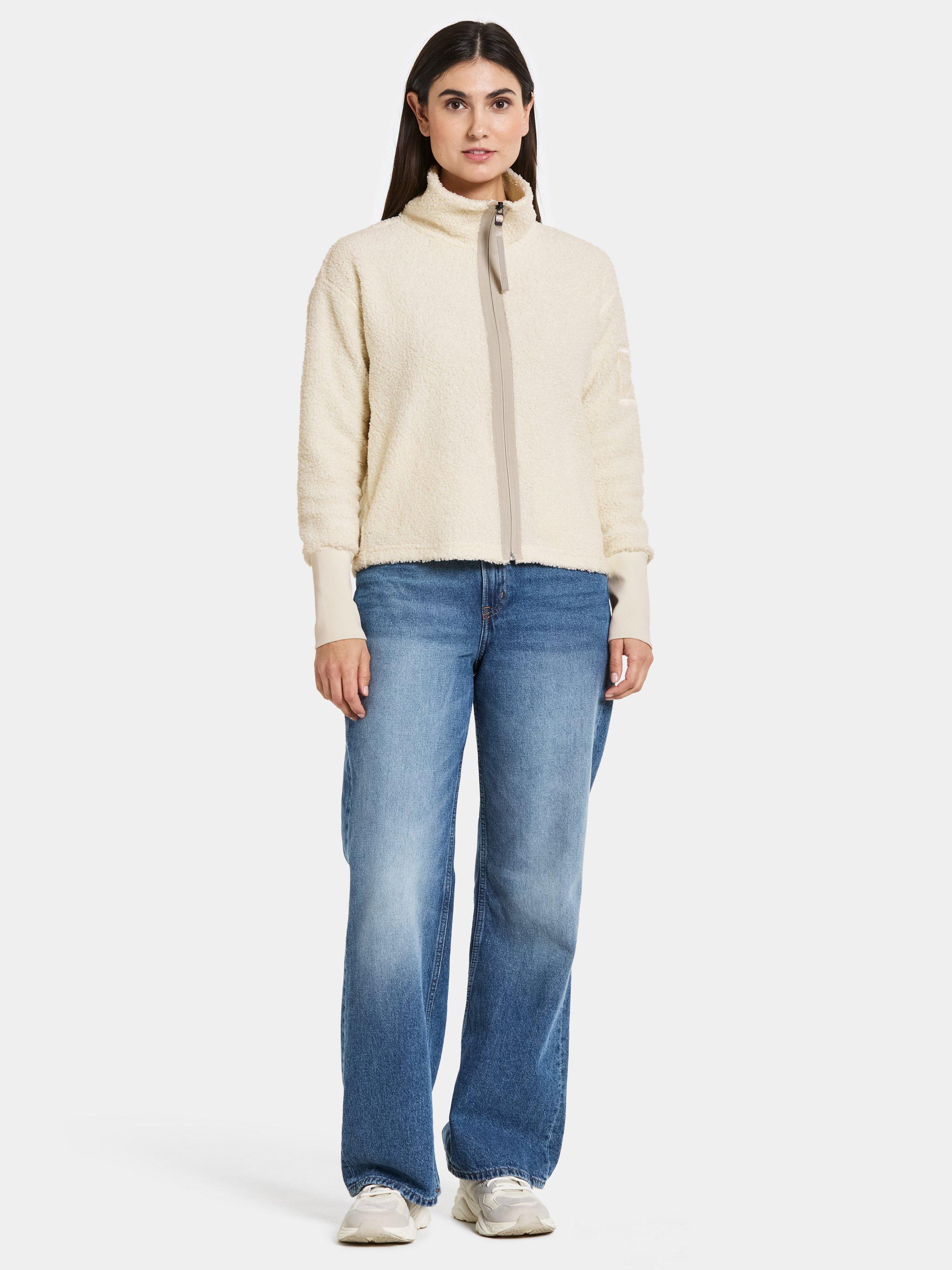 Alexa is a soft and comfortable fleece jacket in pile fabric, perfect for outdoor activities. It has a straight fit and is designed to provide maximum comfort with its 4-way stretch fabric. The jacket has elastic cuffs and practical side pockets, as well as a front zipper closure. It is ideal for layering and provides a cosy feeling on chilly days.