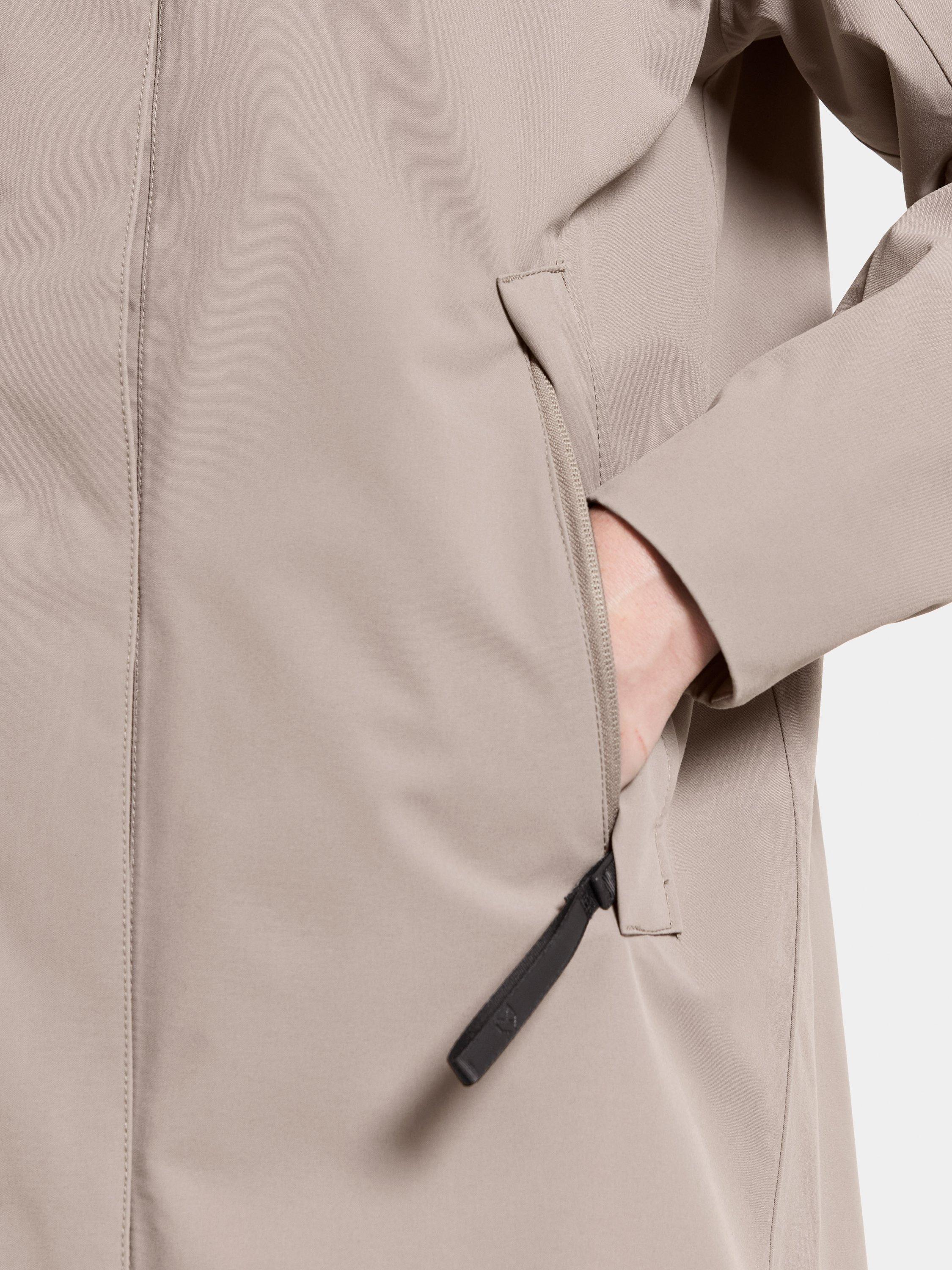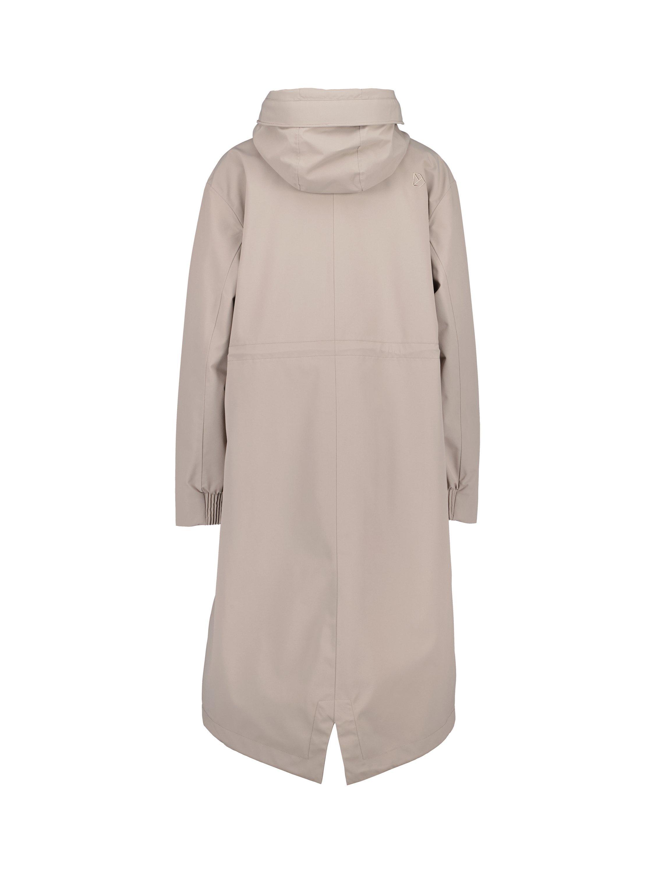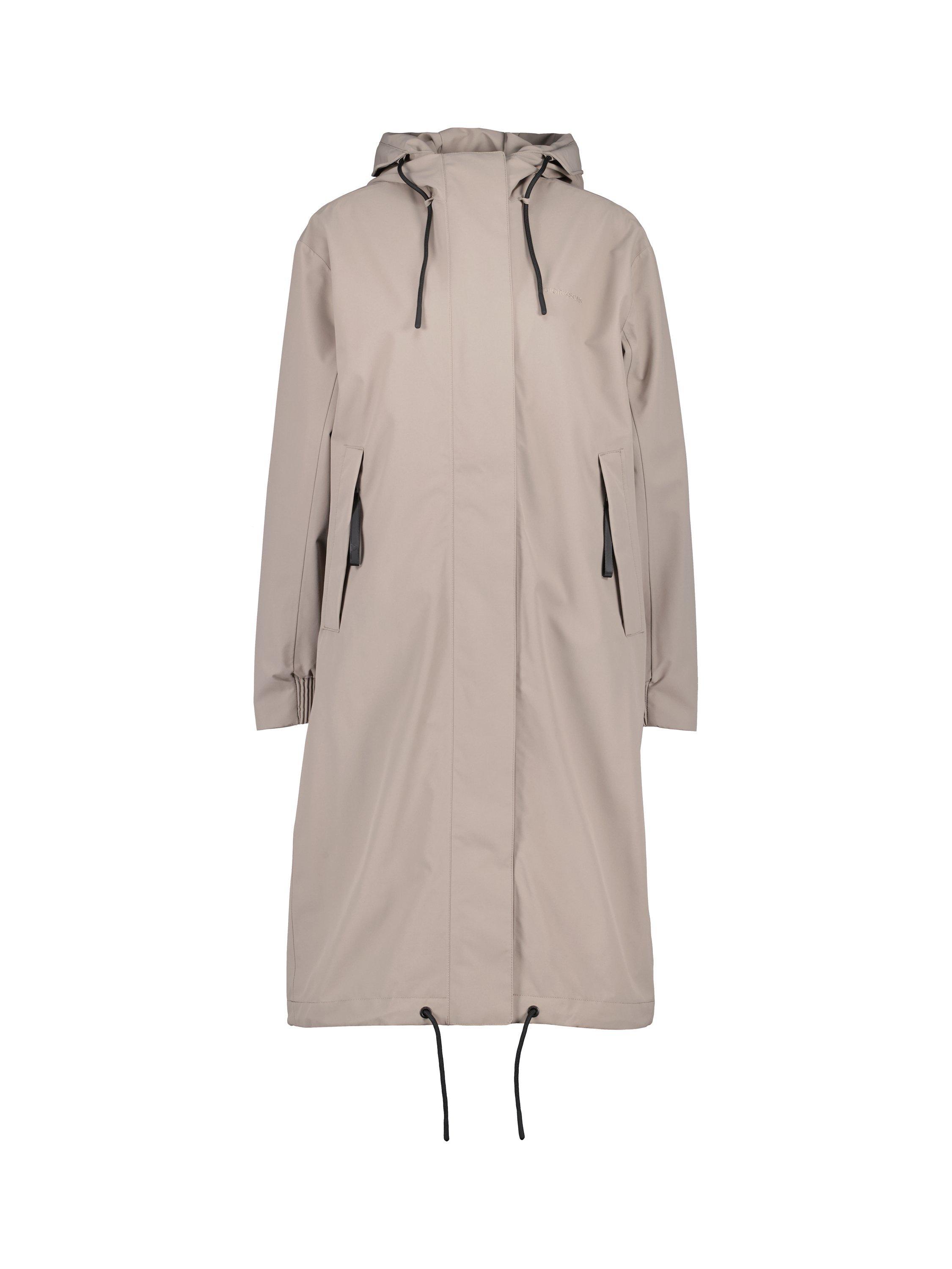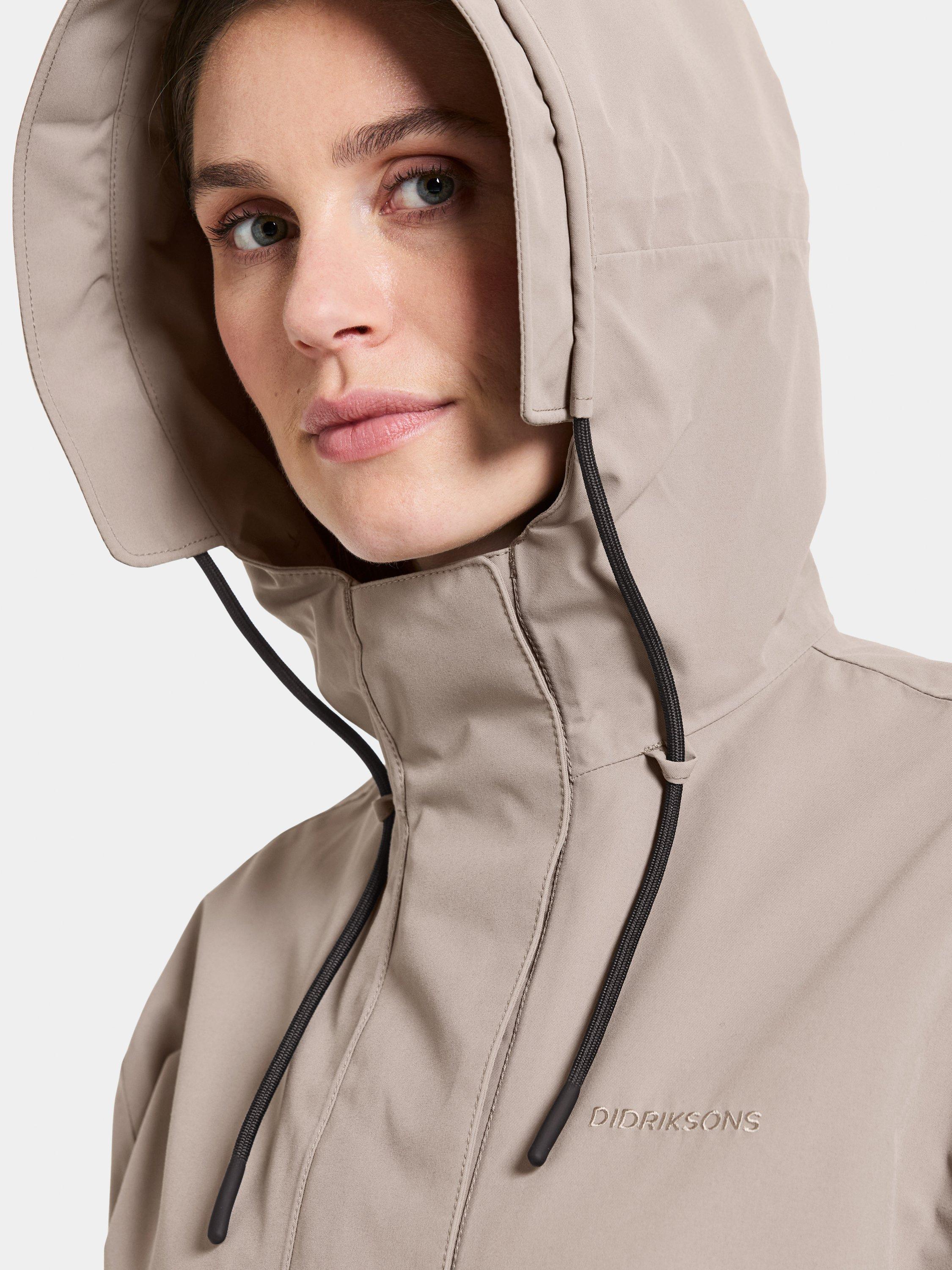 Astrid is a long parka. It's designed to protect against the weather with its waterproof, windproof and breathable fabric. The parka has a relaxed fit and adjustable waist. The fixed hood has an extra protective brim and can be adjusted in two directions for an optimal fit. The parka has practical details such as a zip with chin guard, a placket with buttons and a zip closure at the front. The side pockets and inner zipped pocket offer secure storage. The adjustable drawstring hem and elastic cuffs provide extra comfort. The parka has a PFC-free water-repellent finish.