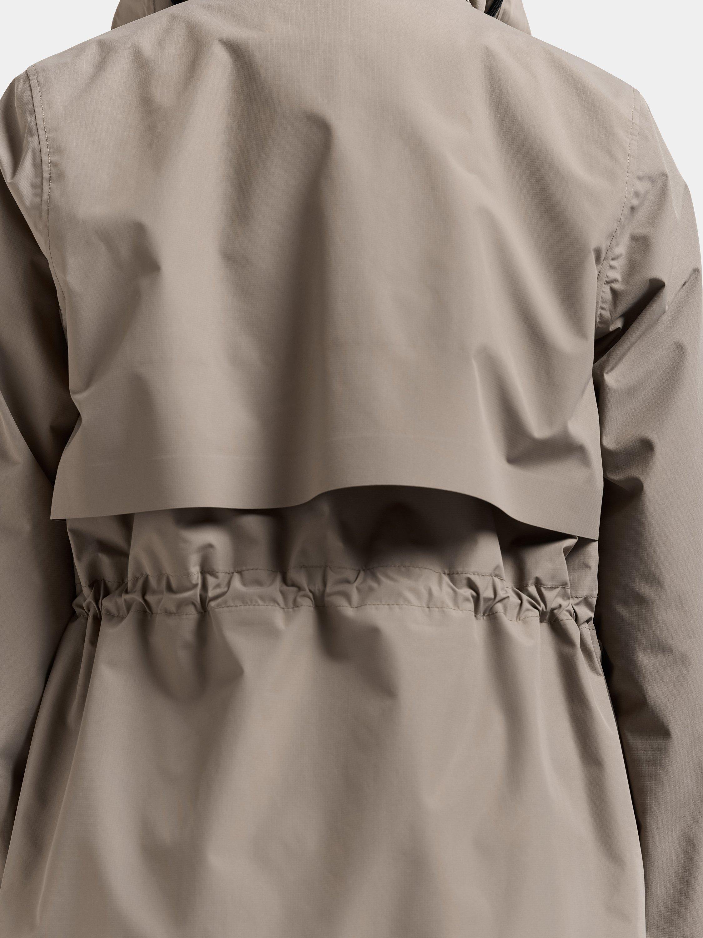 Elina is a waterproof everyday parka that combines style and function. It is designed to suit both urban environments and outdoor activities. The parka features an adjustable hood with a drawstring and a front zip protected by a buttoned placket. The waist can be adjusted from the inside with a drawstring for a personalised fit. The cuffs are easily adjusted with buttons, and the side pockets close with buttons for secure storage. The parka is water and windproof with taped seams and made from a breathable material.