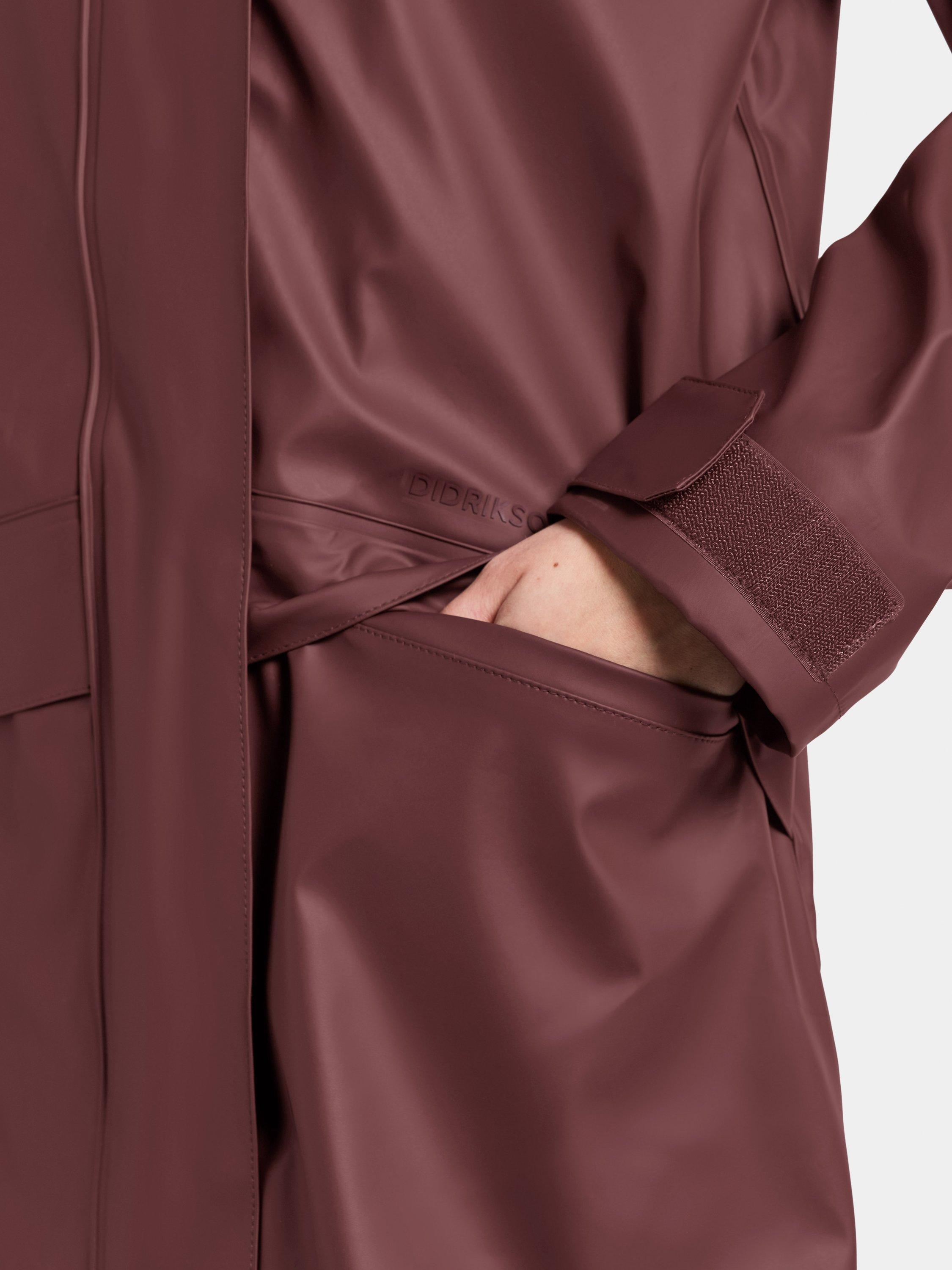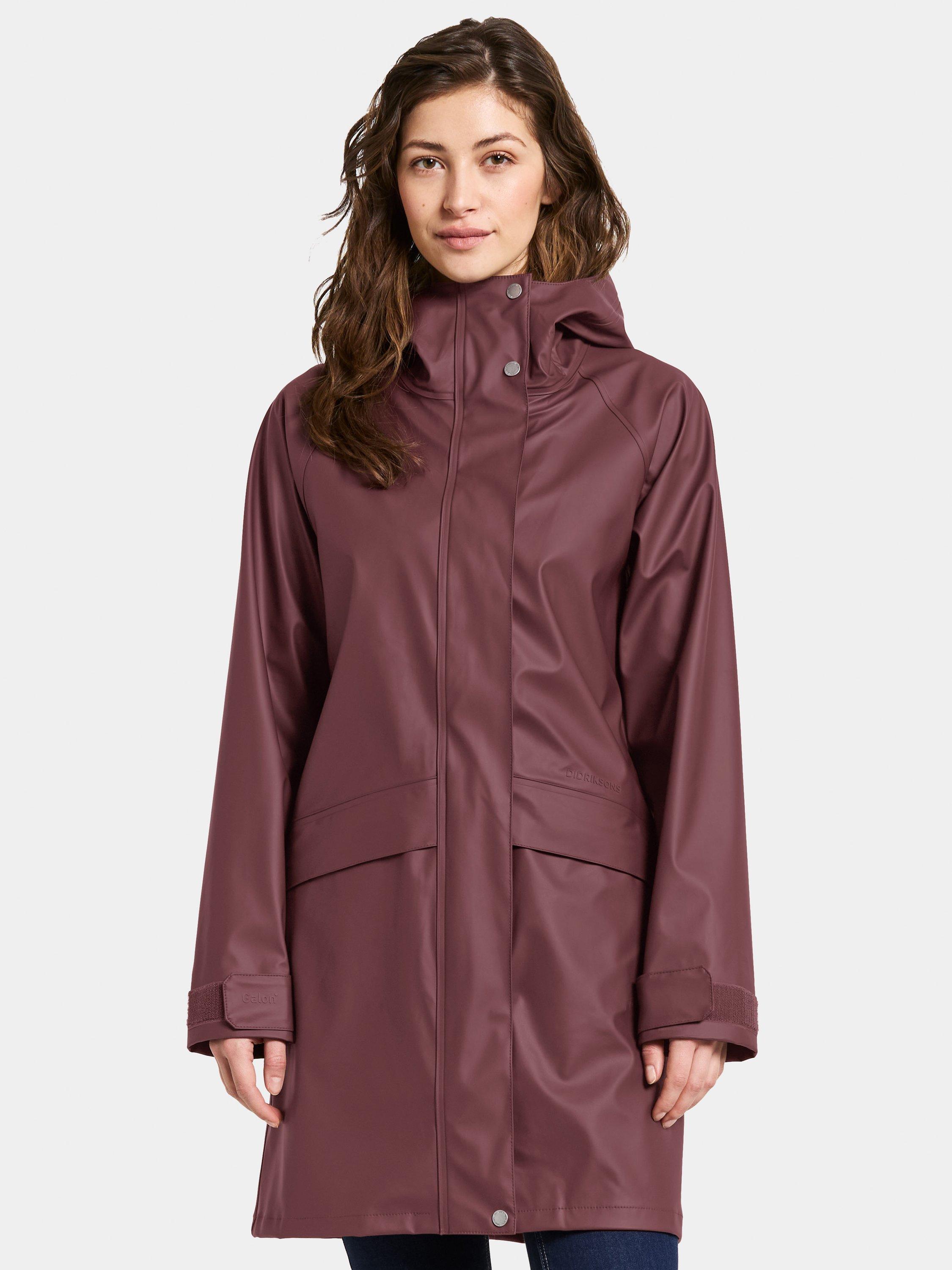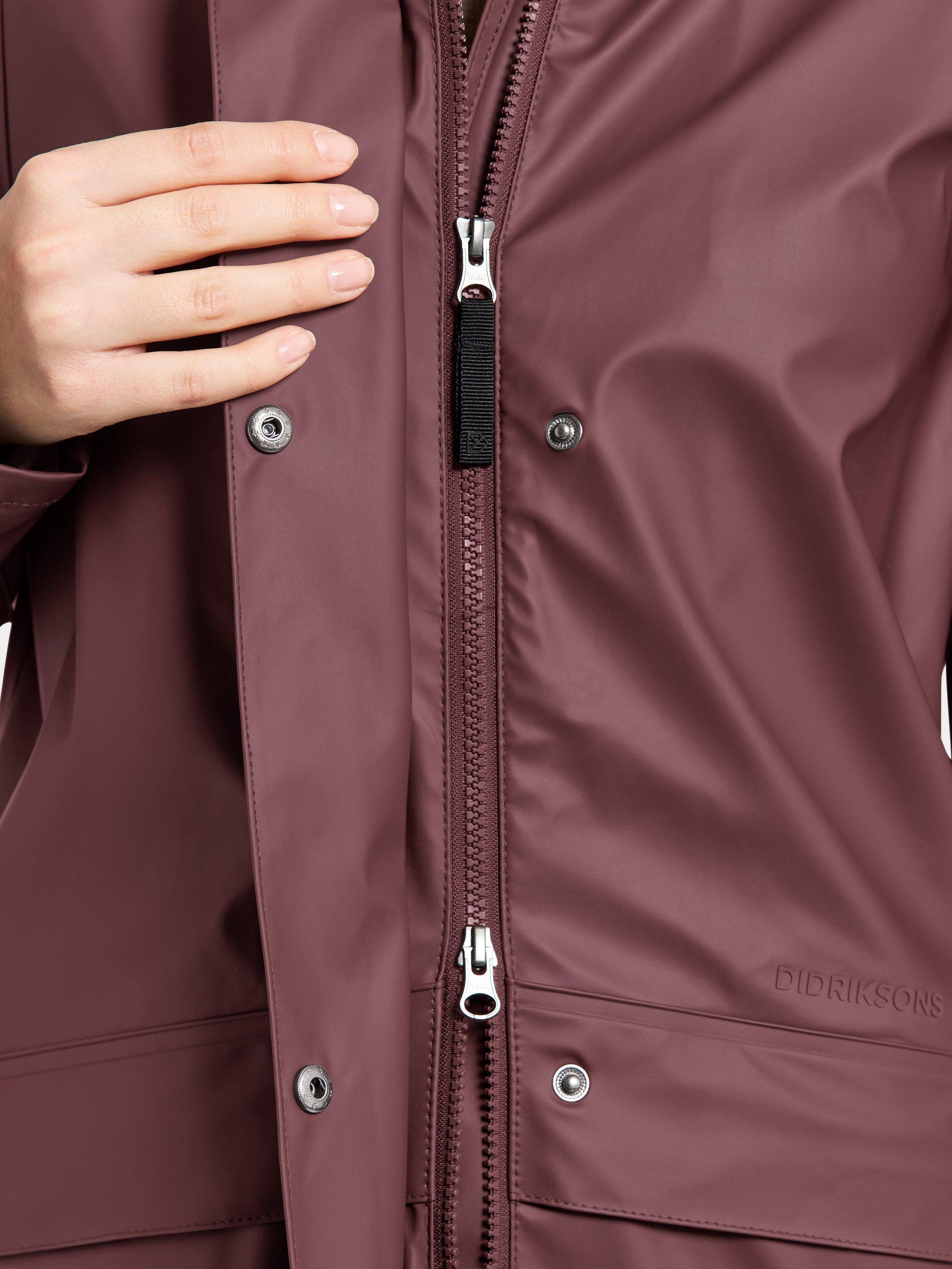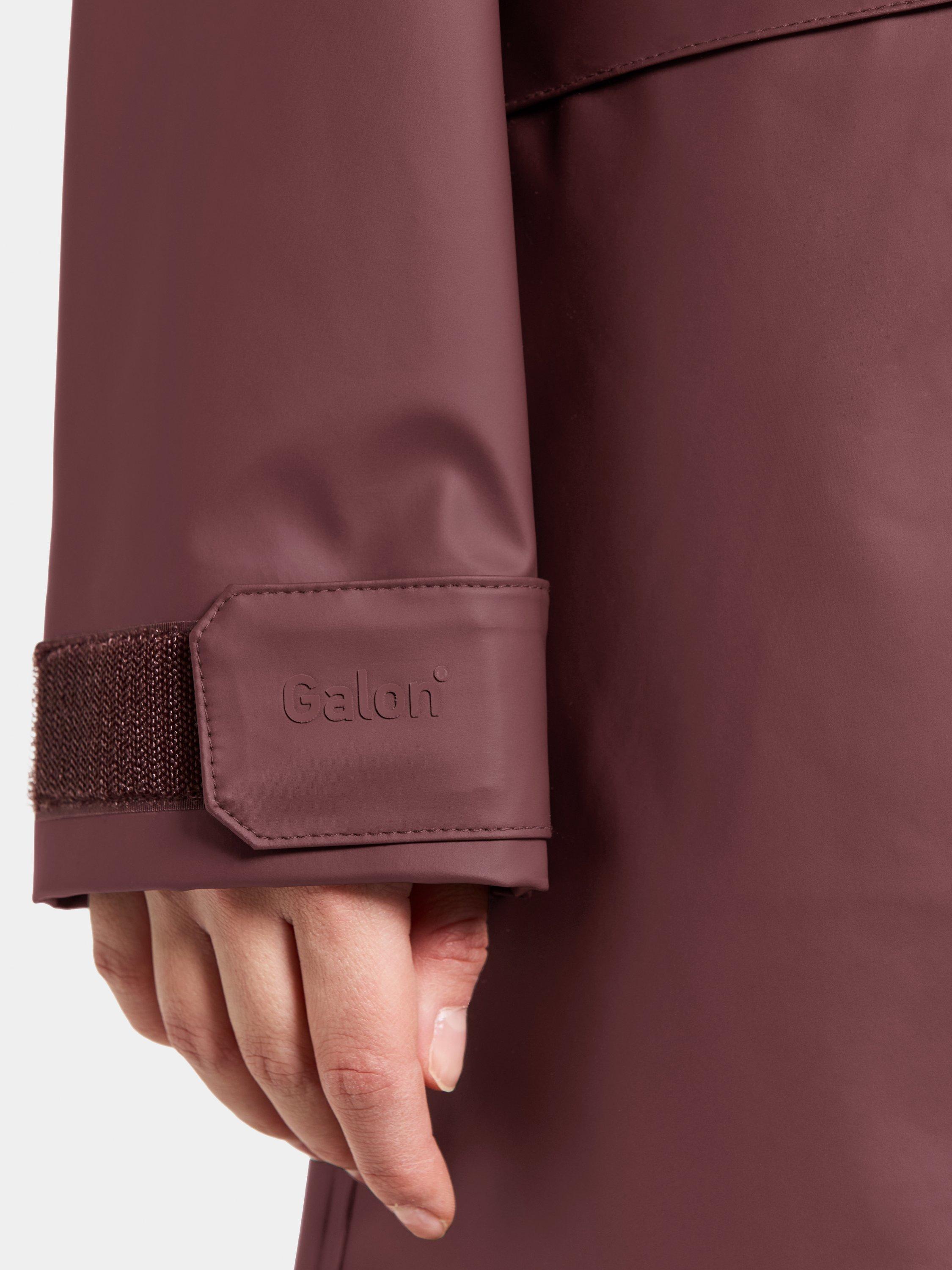 Elly is a 100% waterproof Galon® parka. It is designed to protect you from the rain. This rain jacket has two outer pockets with button closing. The hood and sleeve ends are adjustable.