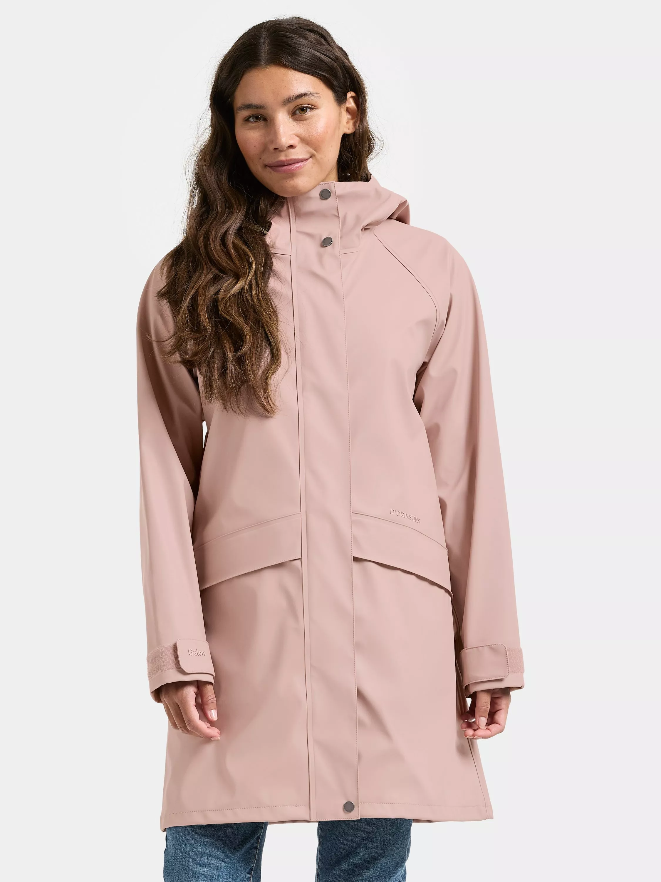 Elly is an everyday jacket in Galon® that combines style and function. It is completely wind and waterproof with welded seams for a 100% waterproof construction, making it suitable for both everyday use and outdoor activities. The jacket has a straight fit and a fixed hood that can be adjusted with riptape to provide extra protection against the weather and wind.