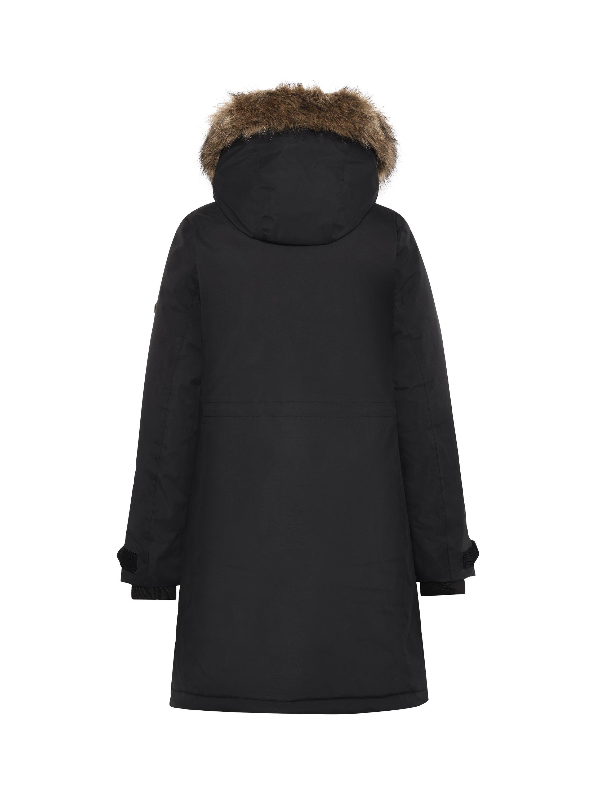 Erna is a warm parka with a feminine fit, perfect for everyday use. It is water and windproof with taped seams and made from a breathable material, making it ideal for all weather conditions. The parka features a detachable synthetic fur on the hood and an adjustable waist with a drawstring for a personalised fit.