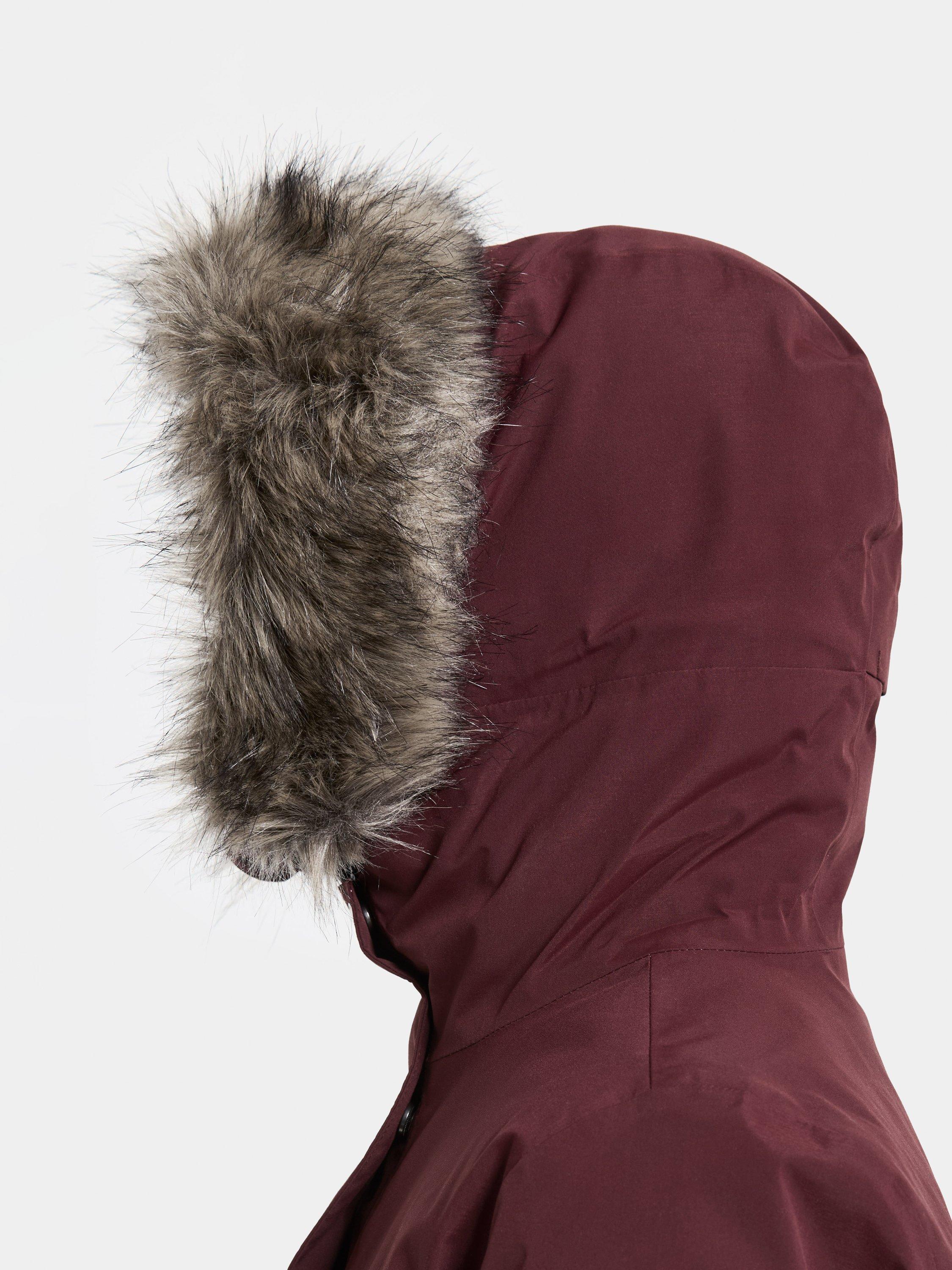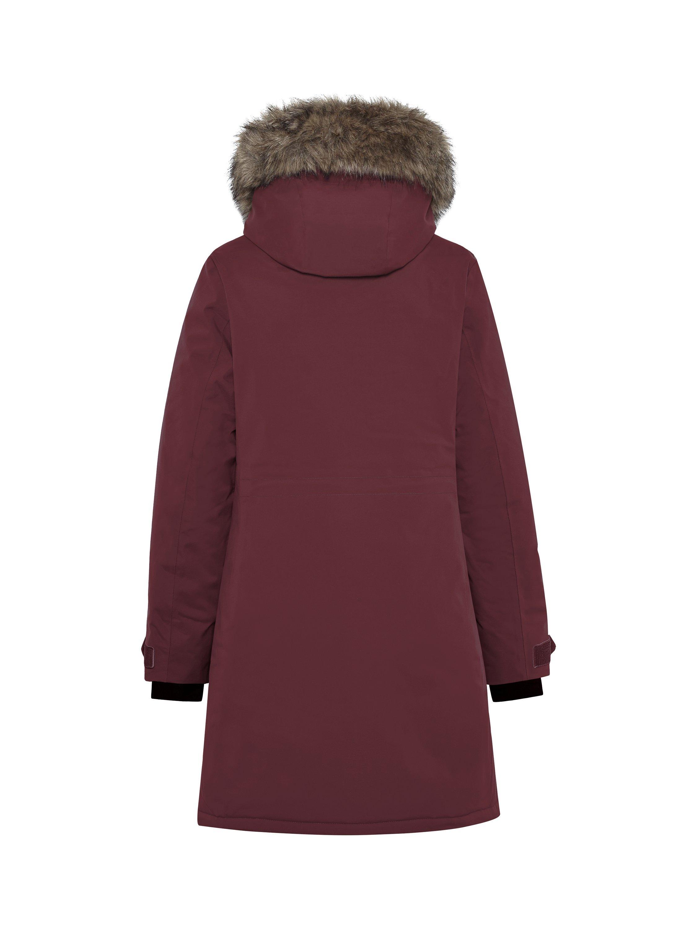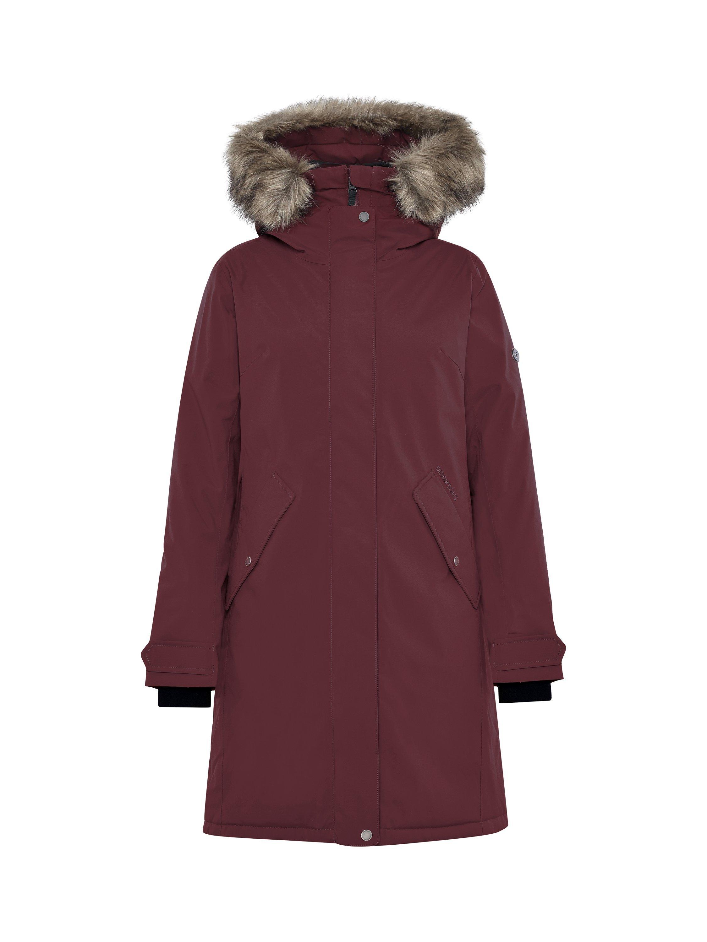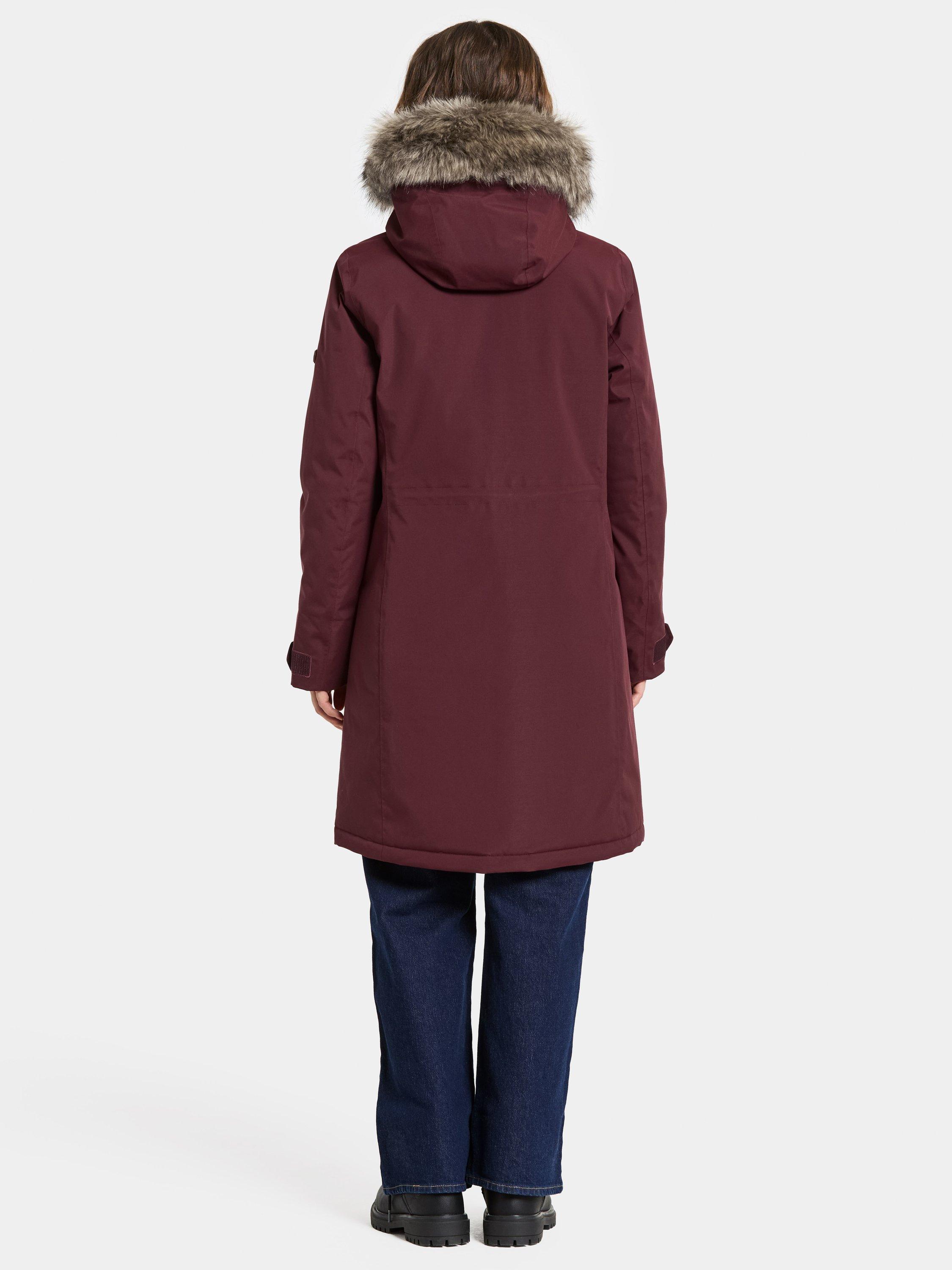 Erna is a warm parka with a feminine fit, perfect for everyday use. It is water and windproof with taped seams and made from a breathable material, making it ideal for all weather conditions. The parka features a detachable synthetic fur on the hood and an adjustable waist with a drawstring for a personalised fit.