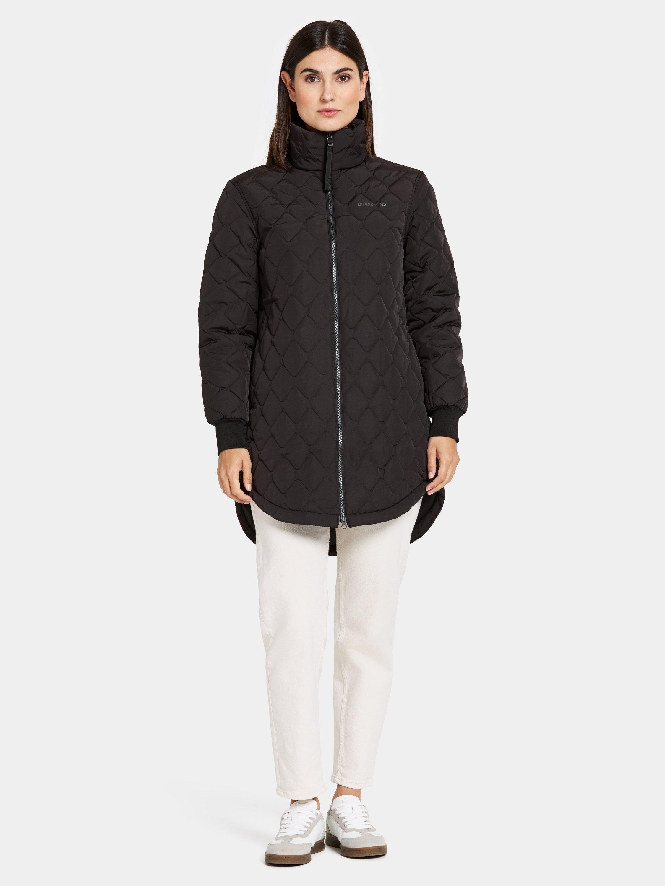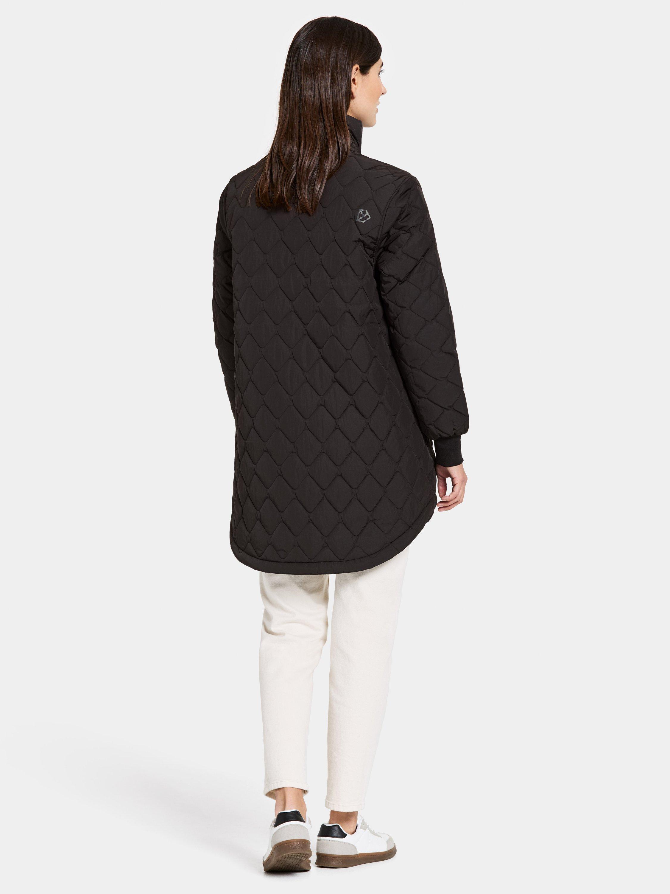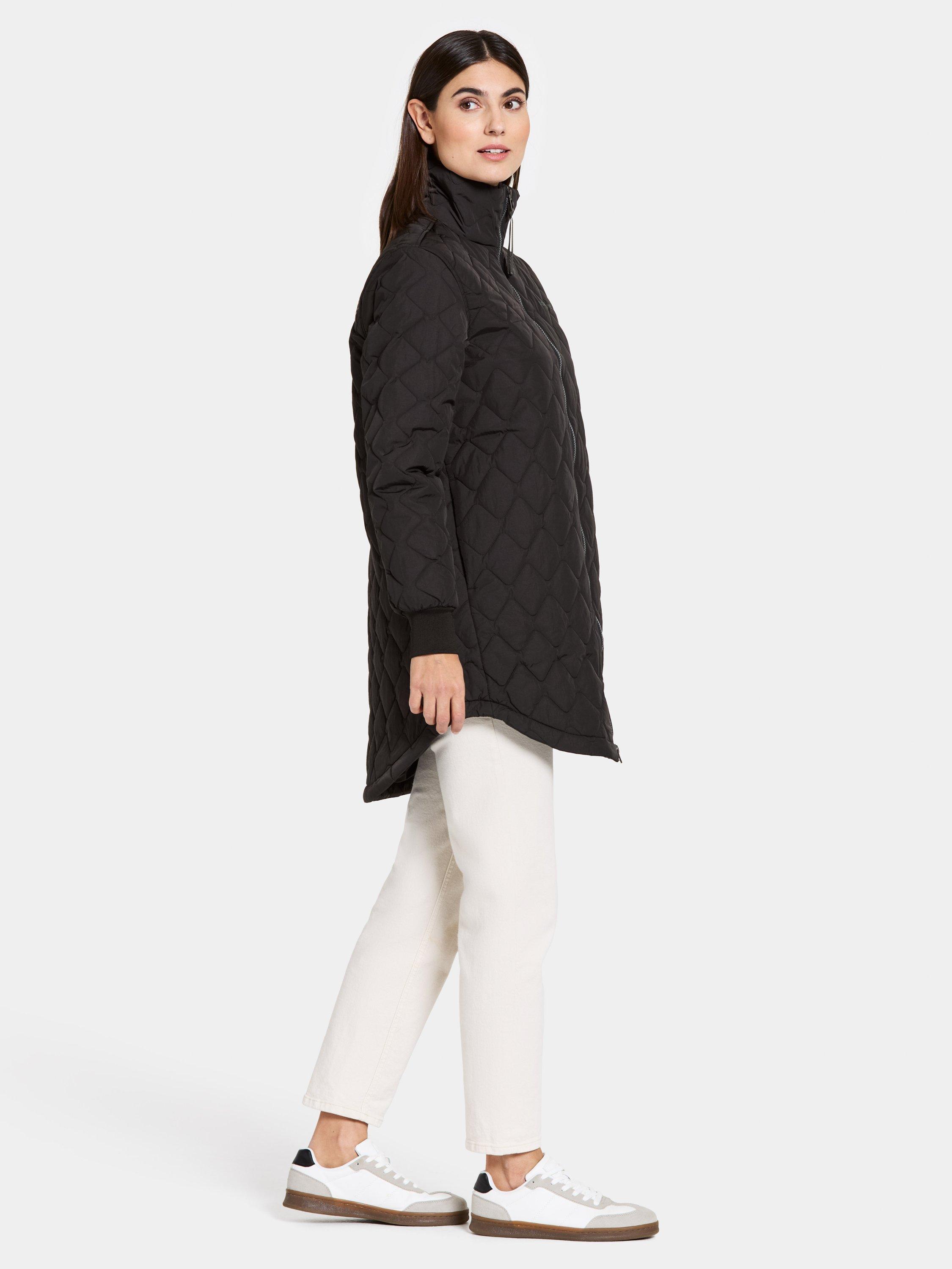 Gabbi is a quilted jacket with a relaxed fit. This is a must have piece for the colder days and will keep you dry in a light drizzle, the outer fabric is water repellent with a crinkle and shiny texture. The sleeve ends have an elastic cuff and the two side pockets have a button fastening.