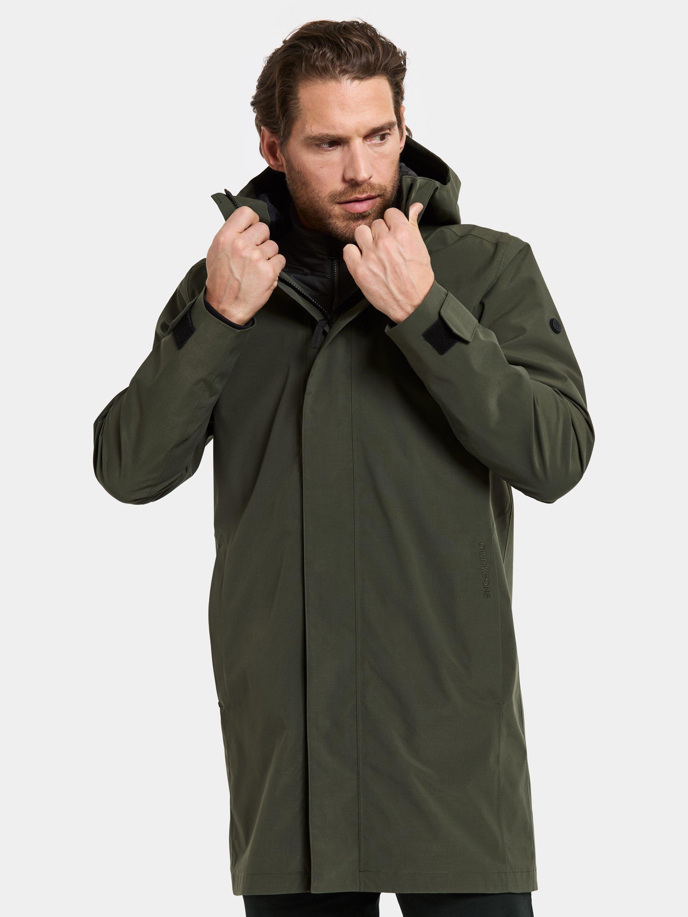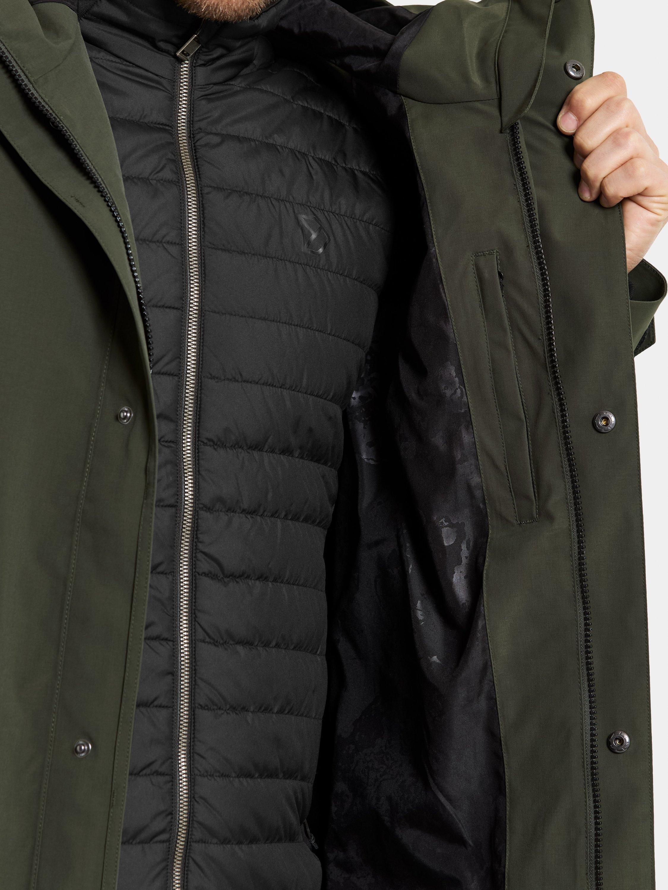 It is windproof and waterproof with taped seams and made from a breathable material. The parka has a straight silhouette and a fixed hood that can be adjusted for optimal fit. The parka has a two-way front zip, covered by a buttoned placket for extra protection against the elements. The cuffs can be adjusted with Velcro to keep out the cold, and the elastic hem contributes to a comfortable fit. Storage options include zipped side pockets and an inner zipped pocket for safe storage of your belongings. The parka has a PFC-free water-repellent finish.