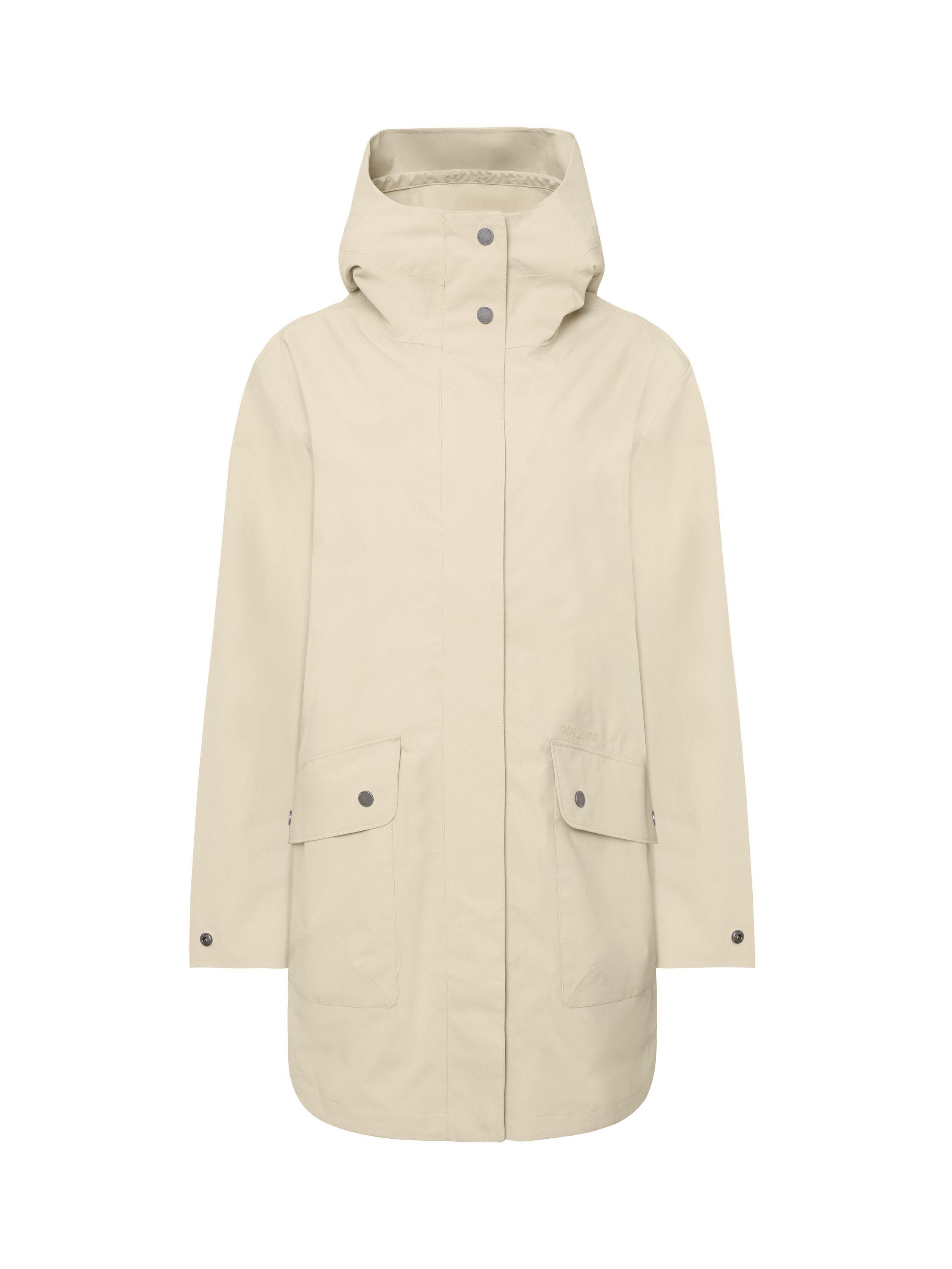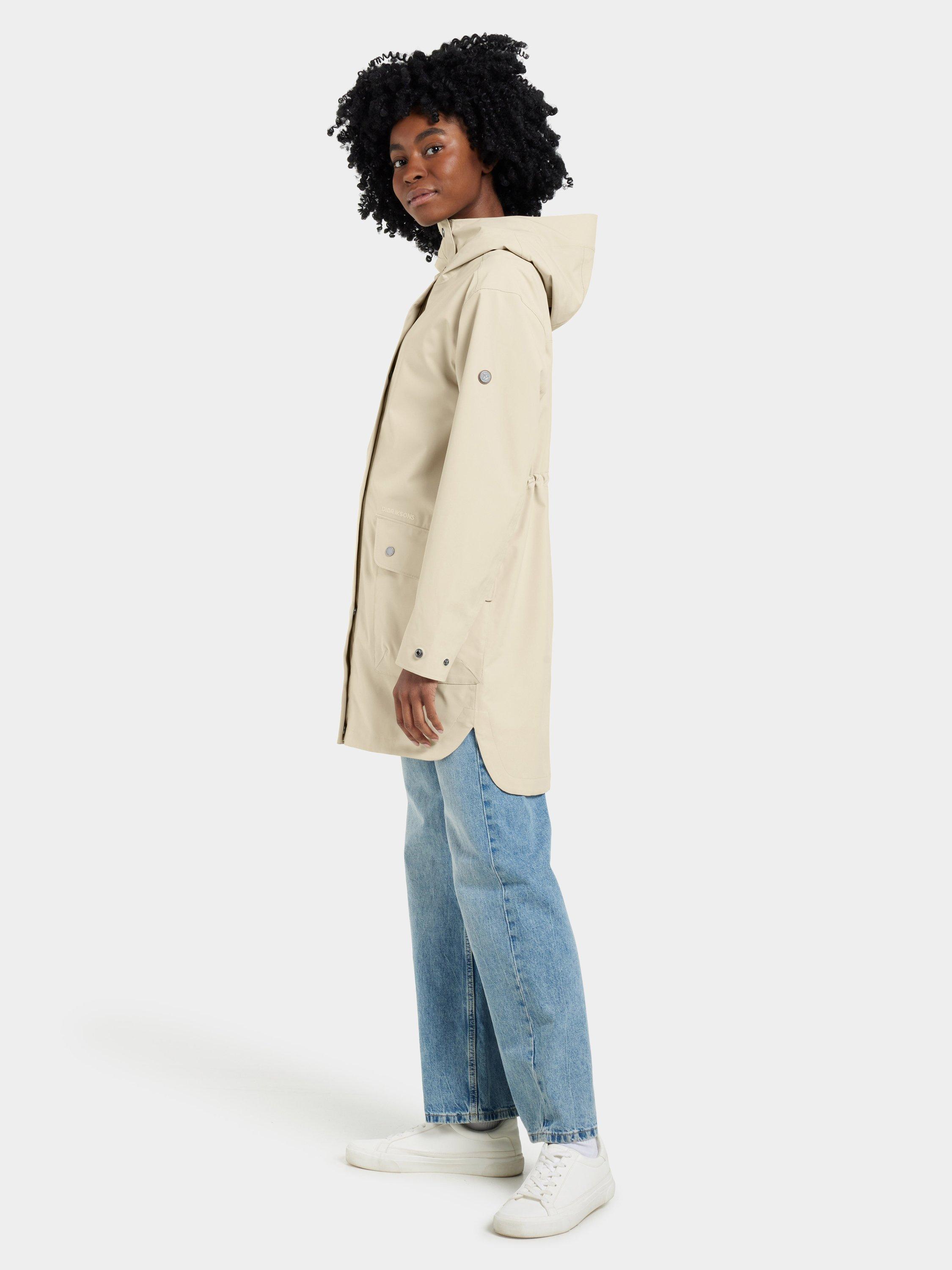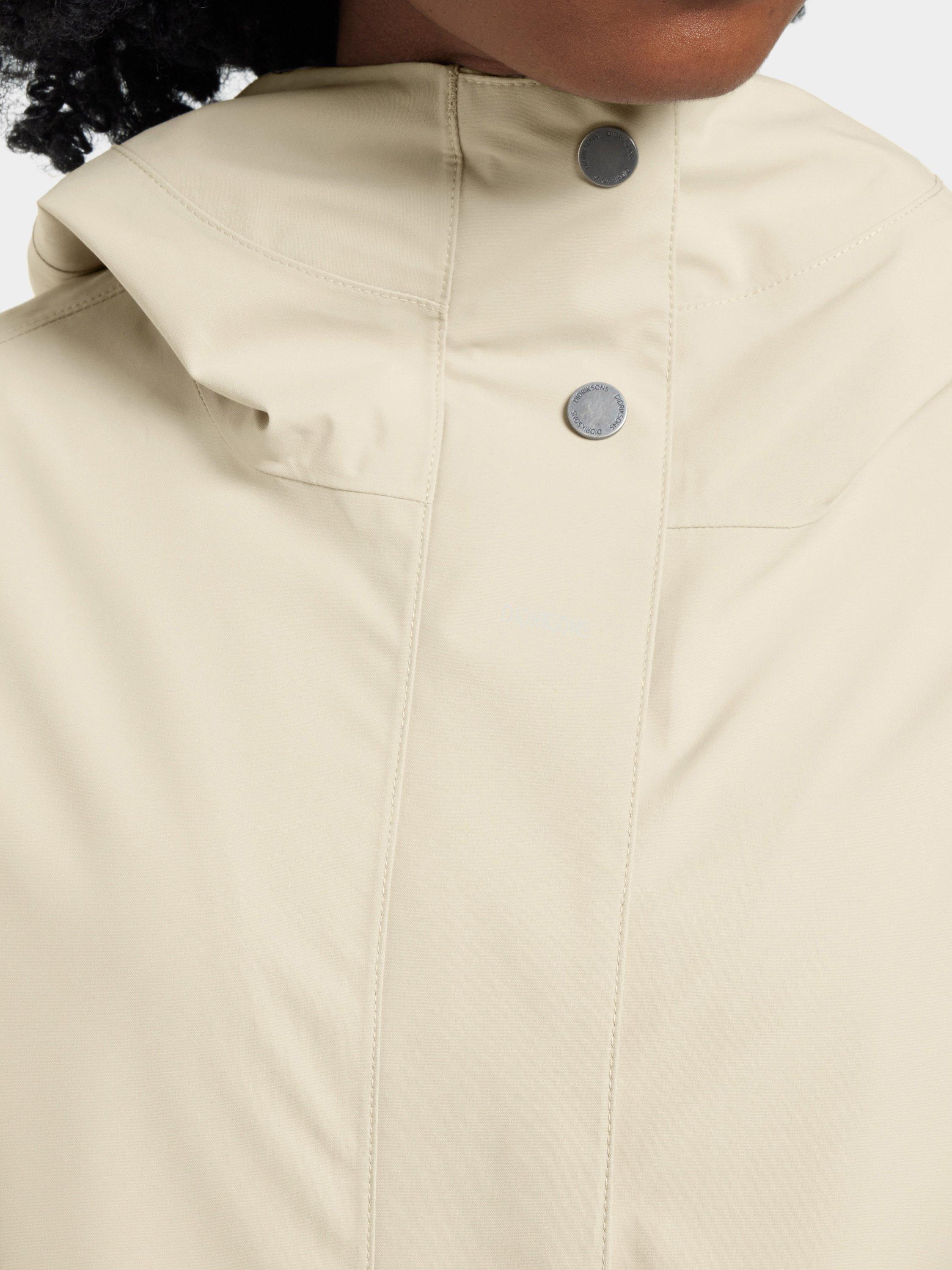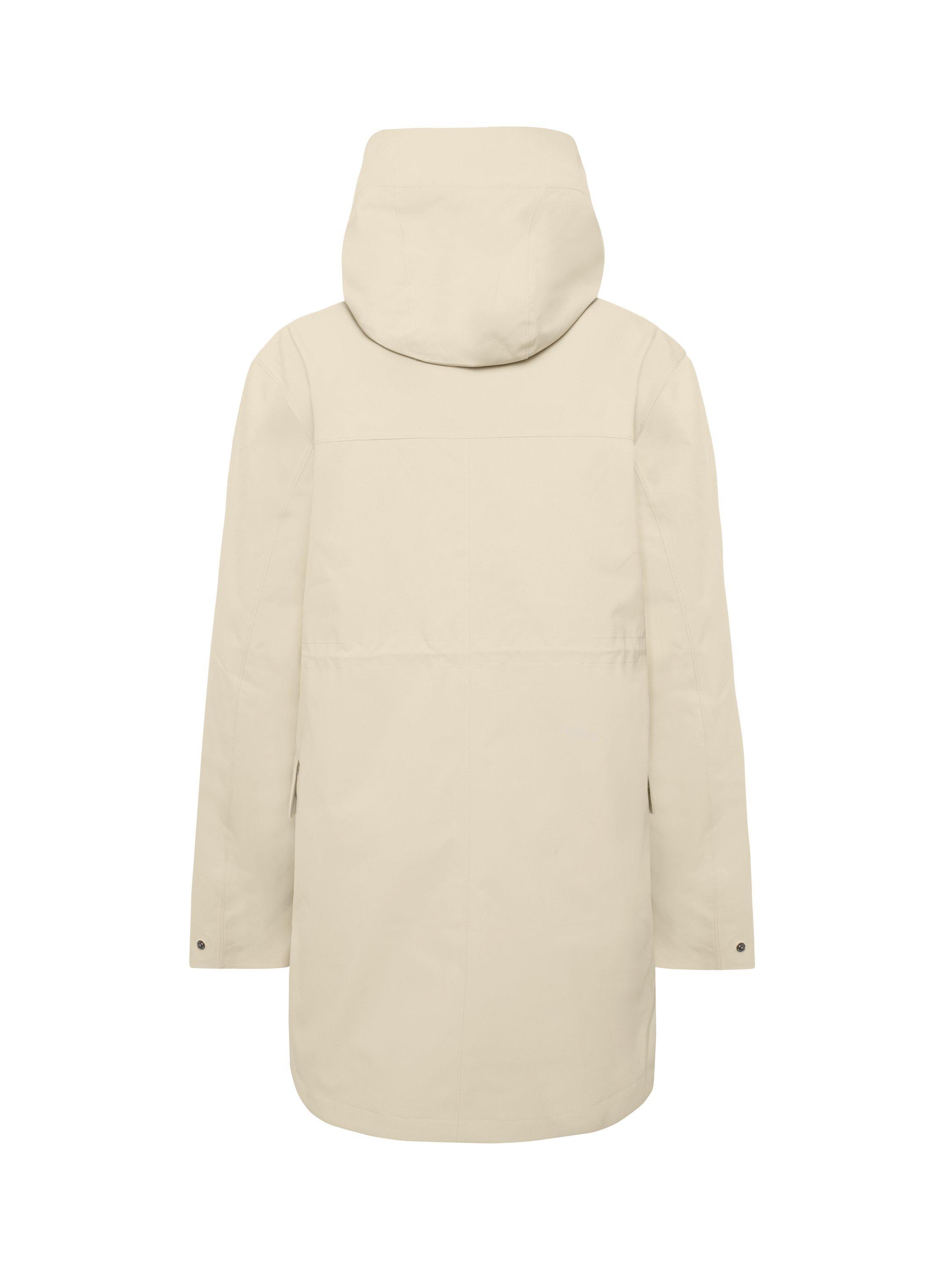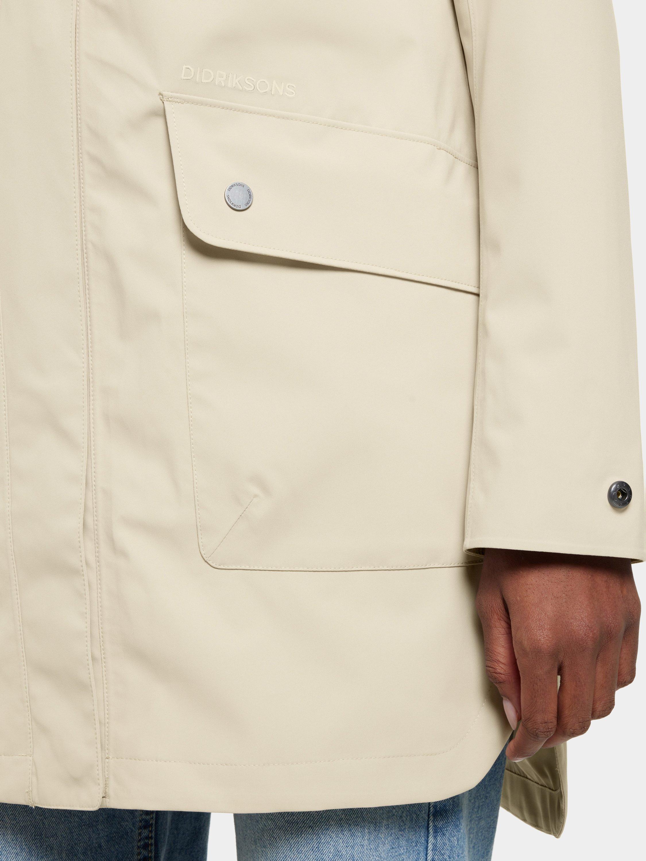 Gwen is a stylish and functional parka that is perfect for everyday use. It is fully windproof and waterproof with taped seams and made from a breathable material, making it ideal for all weather conditions. The parka has a straight fit and an adjustable waist with a drawstring on the inside. The fixed hood can be adjusted for extra protection, and the cuffs can be easily adjusted with buttons for optimal comfort. The parka has a two-way front zip, covered by a buttoned placket for extra protection against the elements. Practical front pockets with buttons provide secure storage.