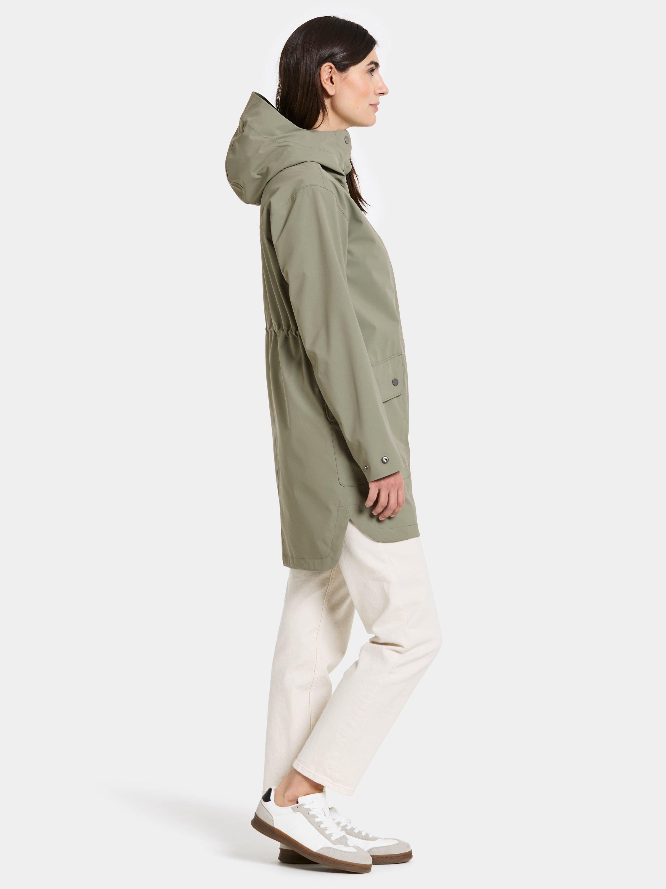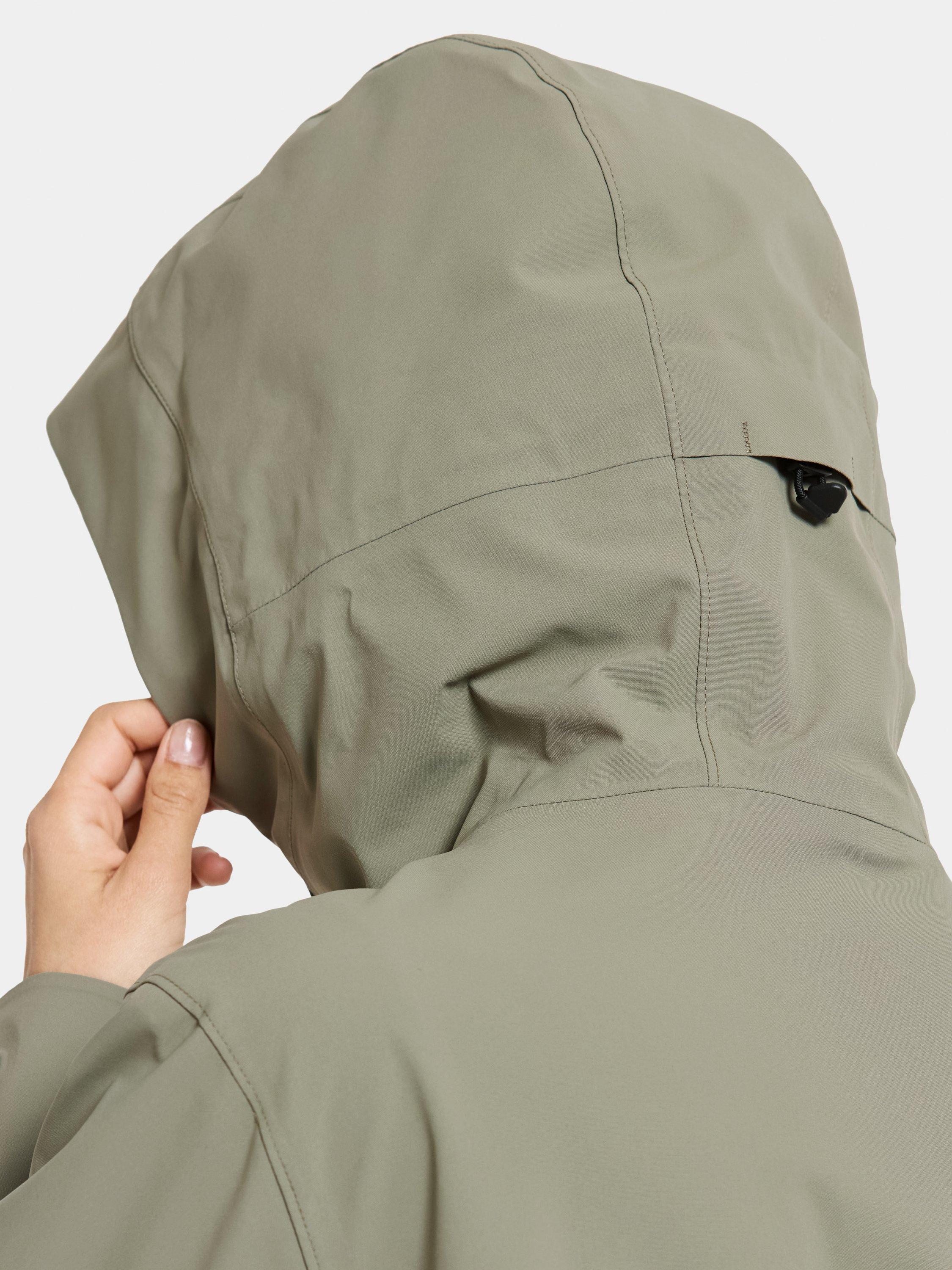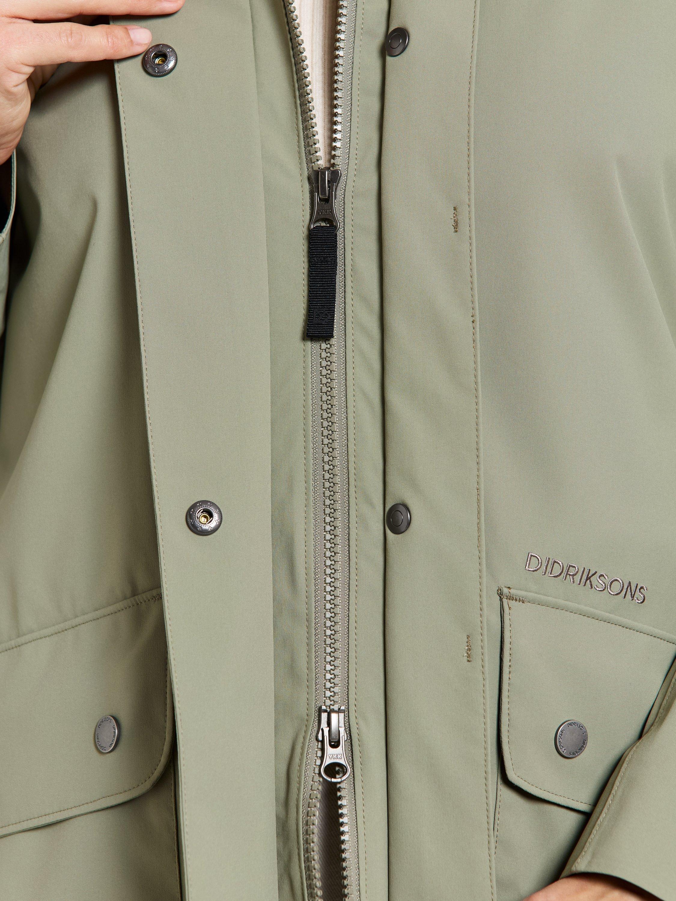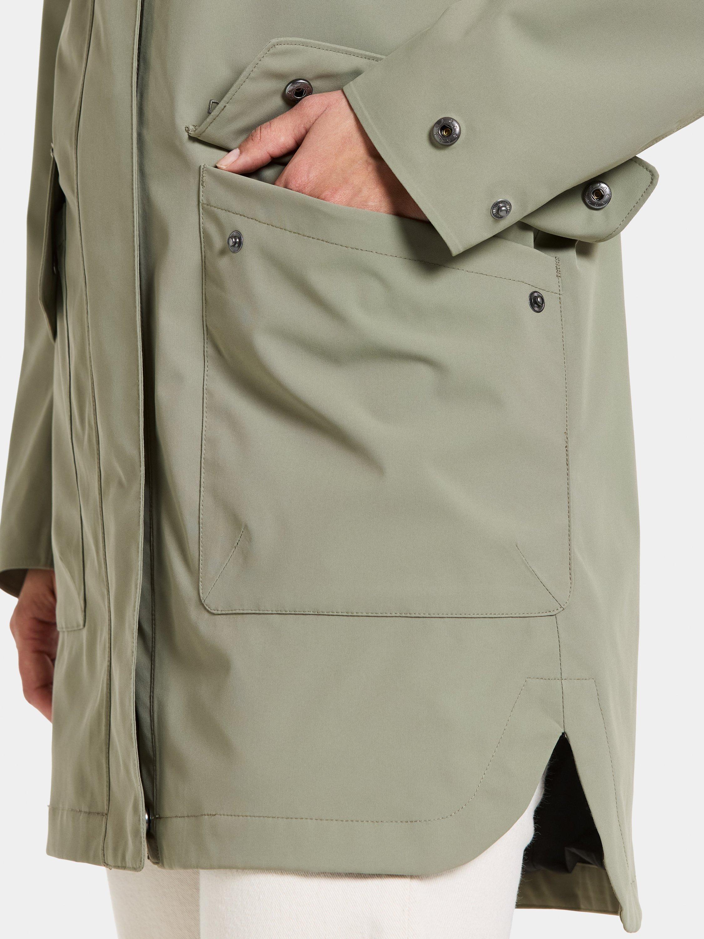 Gwen is a stylish and functional parka that is perfect for everyday use. It is fully windproof and waterproof with taped seams and made from a breathable material, making it ideal for all weather conditions. The parka has a straight fit and an adjustable waist with a drawstring on the inside. The fixed hood can be adjusted for extra protection, and the cuffs can be easily adjusted with buttons for optimal comfort. The parka has a two-way front zip, covered by a buttoned placket for extra protection against the elements. Practical front pockets with buttons provide secure storage.