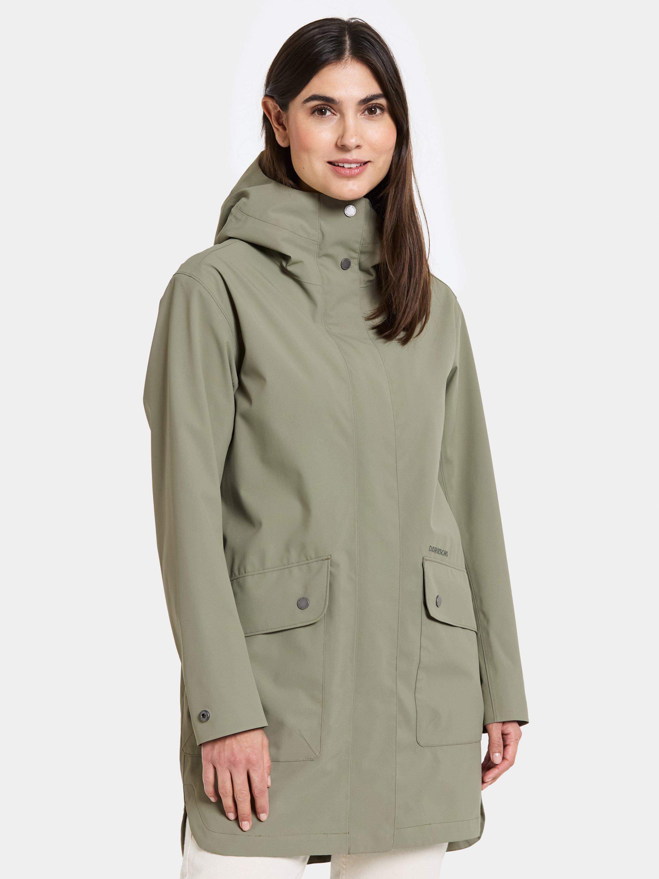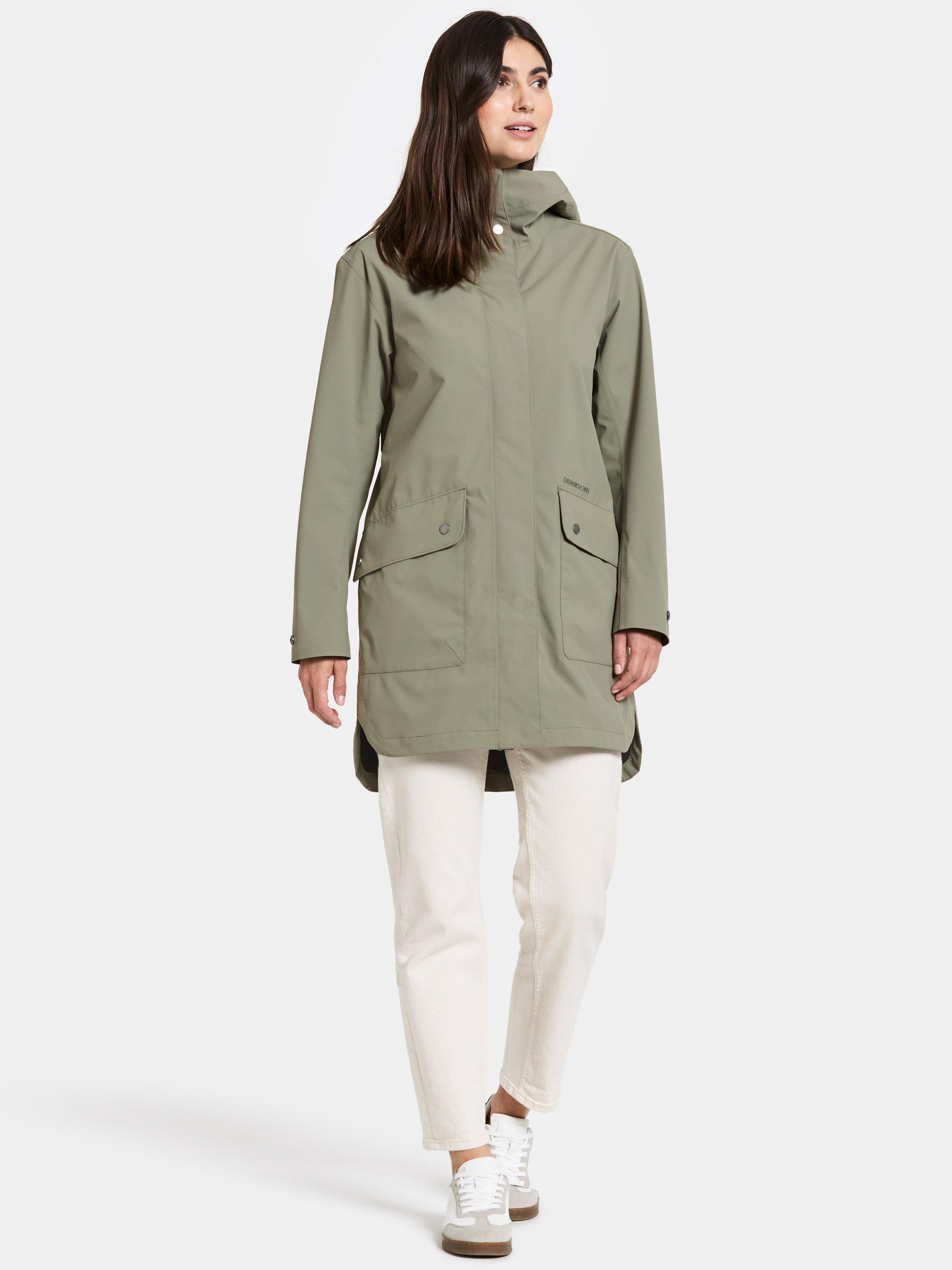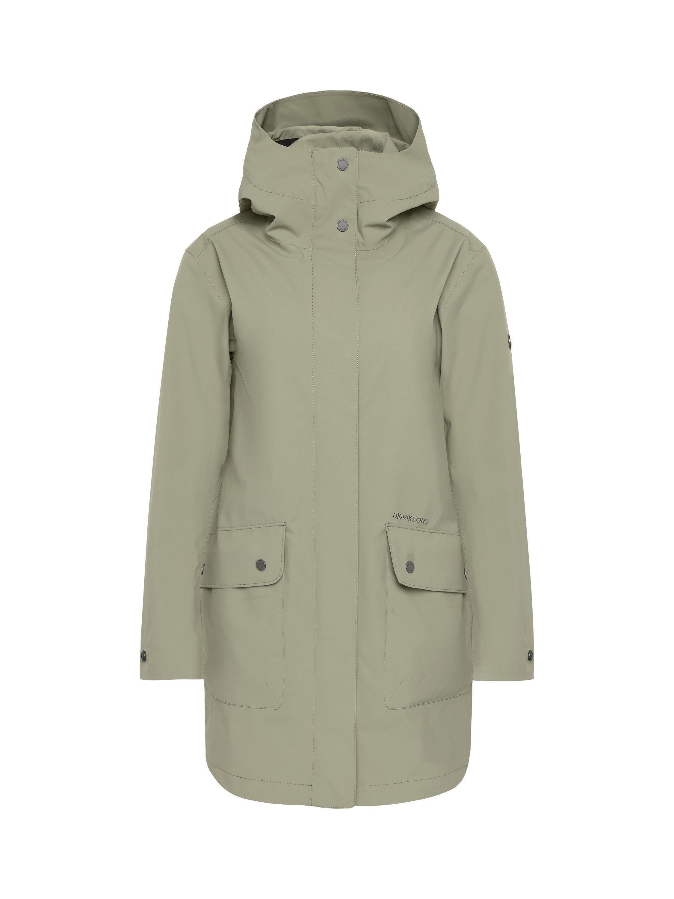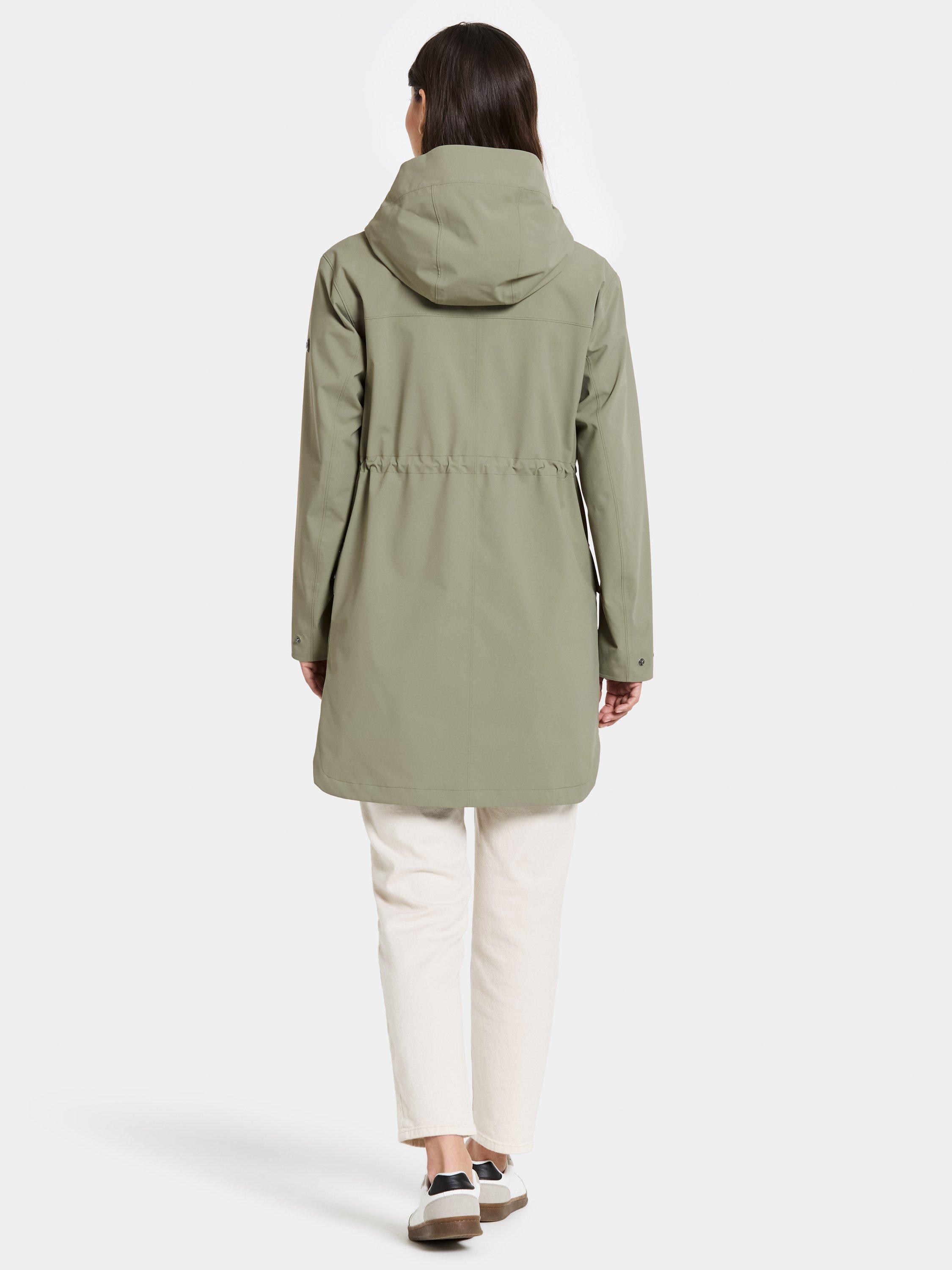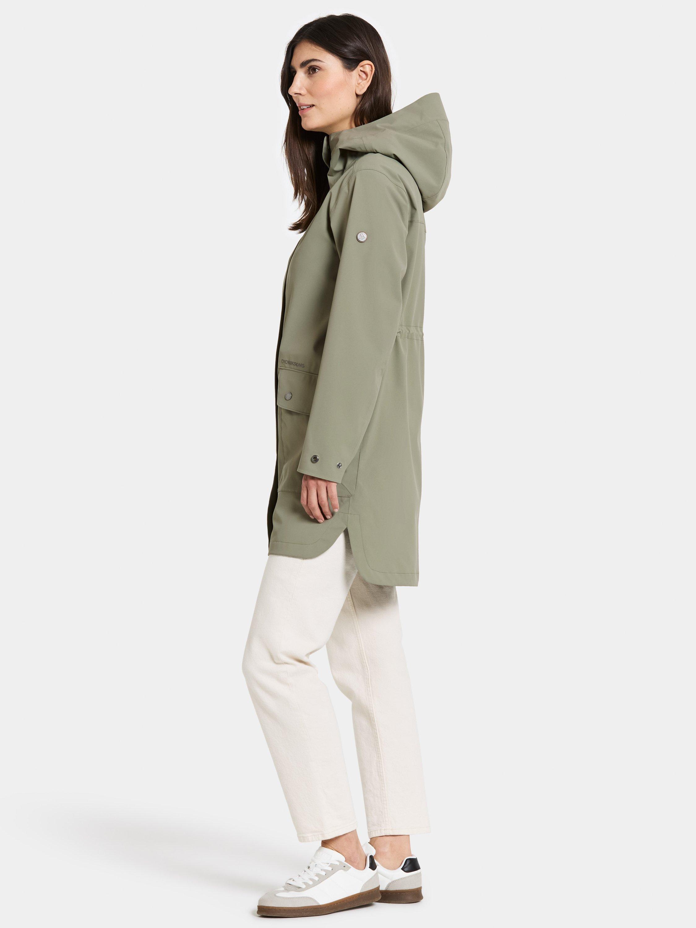 Gwen is a stylish and functional parka that is perfect for everyday use. It is fully windproof and waterproof with taped seams and made from a breathable material, making it ideal for all weather conditions. The parka has a straight fit and an adjustable waist with a drawstring on the inside. The fixed hood can be adjusted for extra protection, and the cuffs can be easily adjusted with buttons for optimal comfort. The parka has a two-way front zip, covered by a buttoned placket for extra protection against the elements. Practical front pockets with buttons provide secure storage.