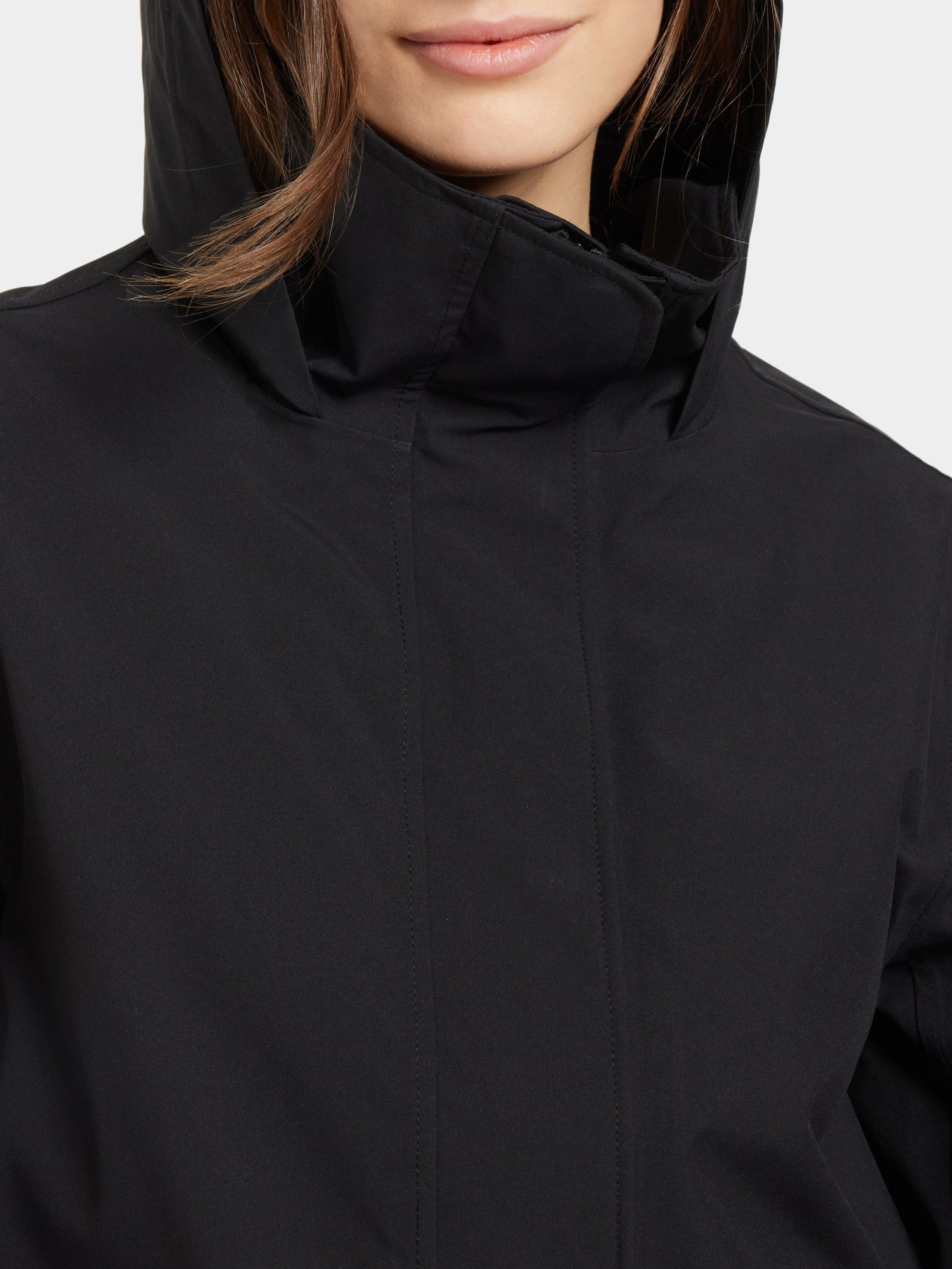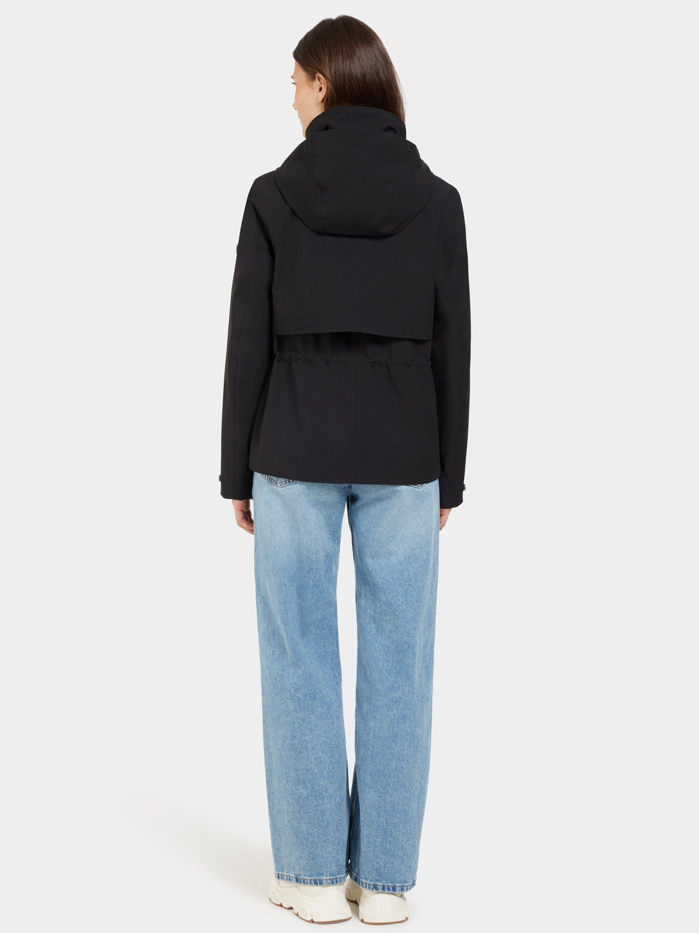 Mabel is a stylish jacket with a feminine fit that combines function and fashion for everyday use. The jacket is both windproof and waterproof with taped seams and made from a breathable material. The adjustable waist with drawstring on the inside gives a flattering silhouette, while the fixed hood and inner stand-up collar provide extra protection against the elements. The jacket has a practical zip and button closure at the front, and adjustable cuffs with buttons. The two front pockets with buttons offer secure storage. The surface is water-repellent and PFC-free.