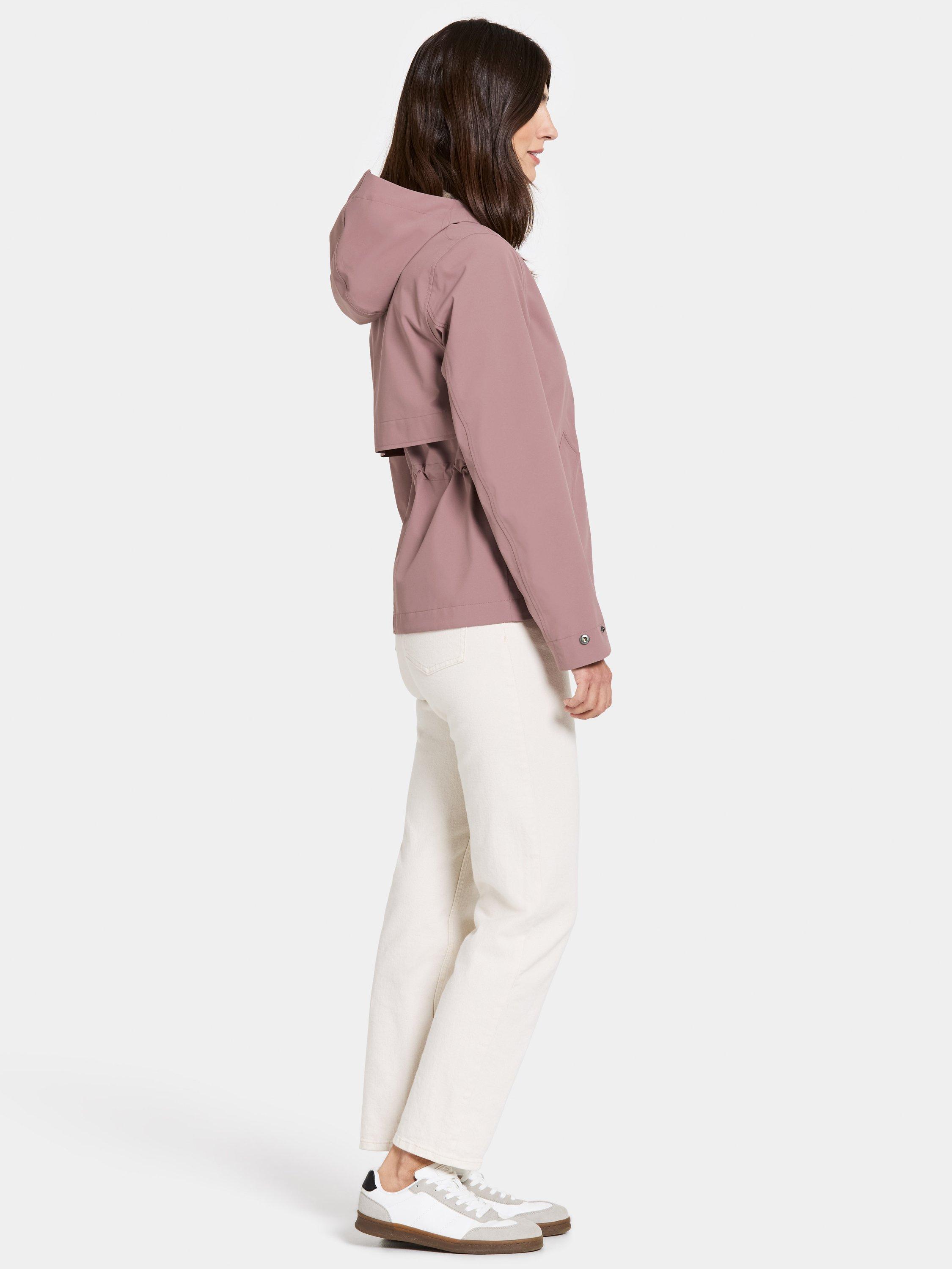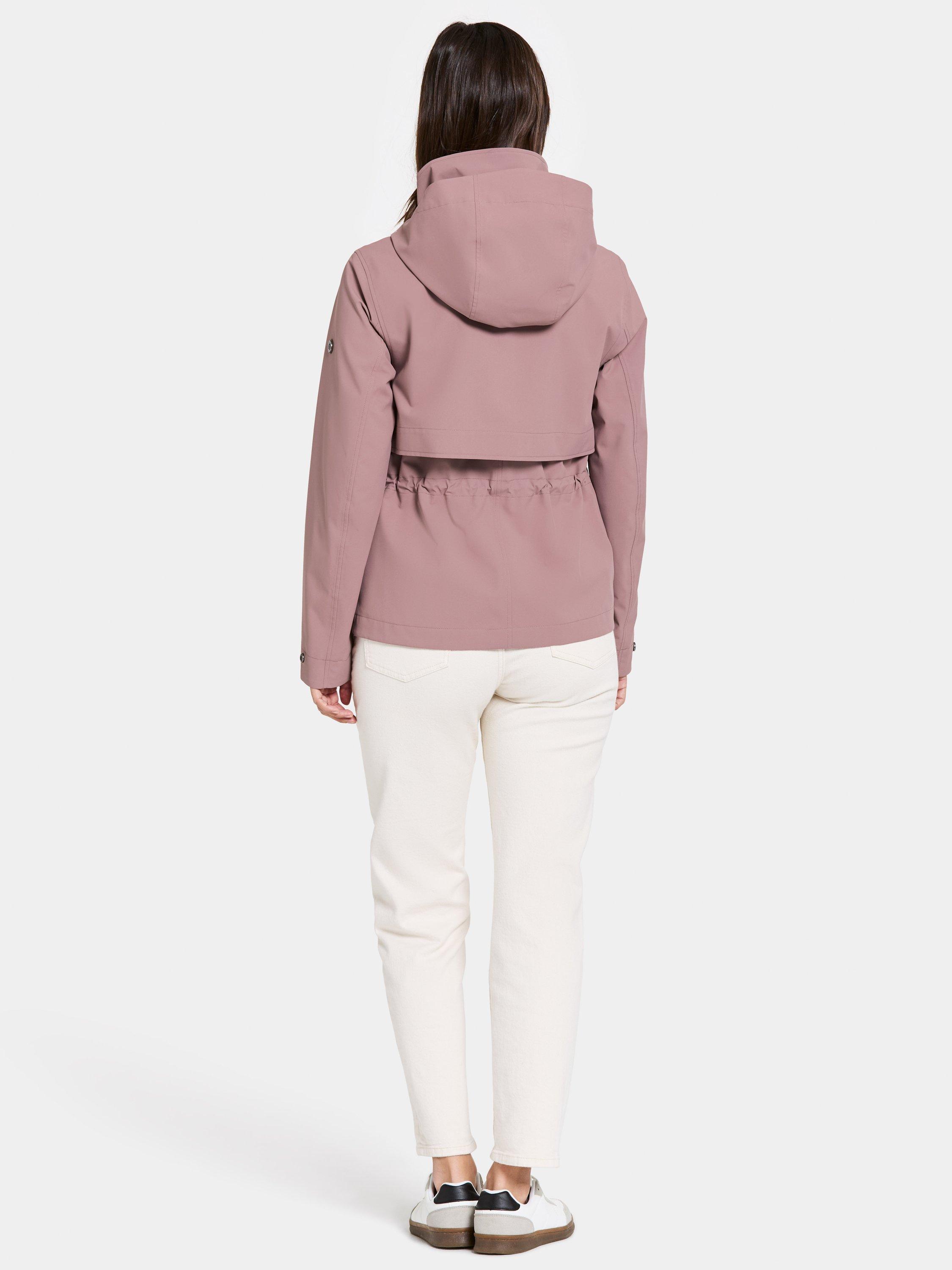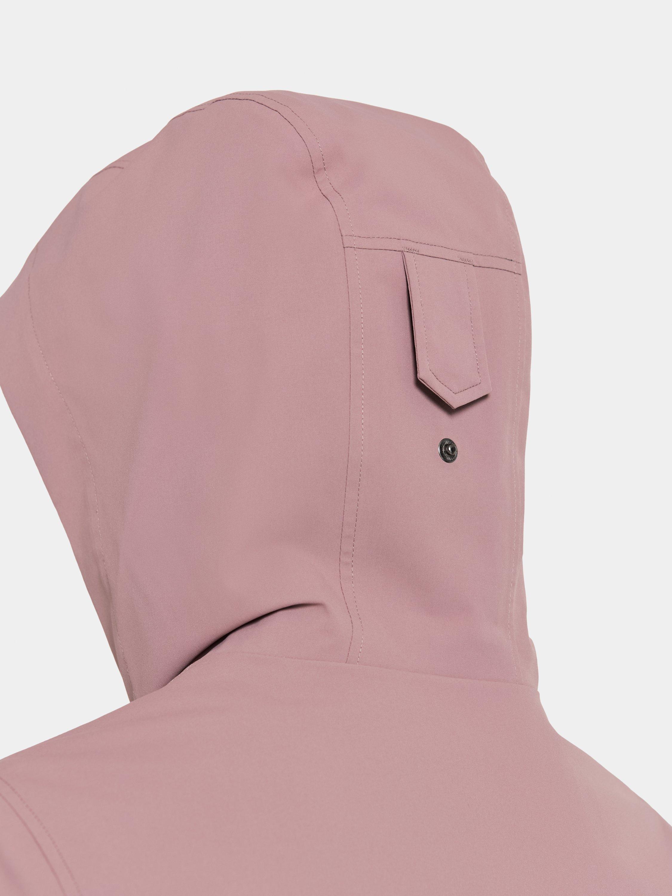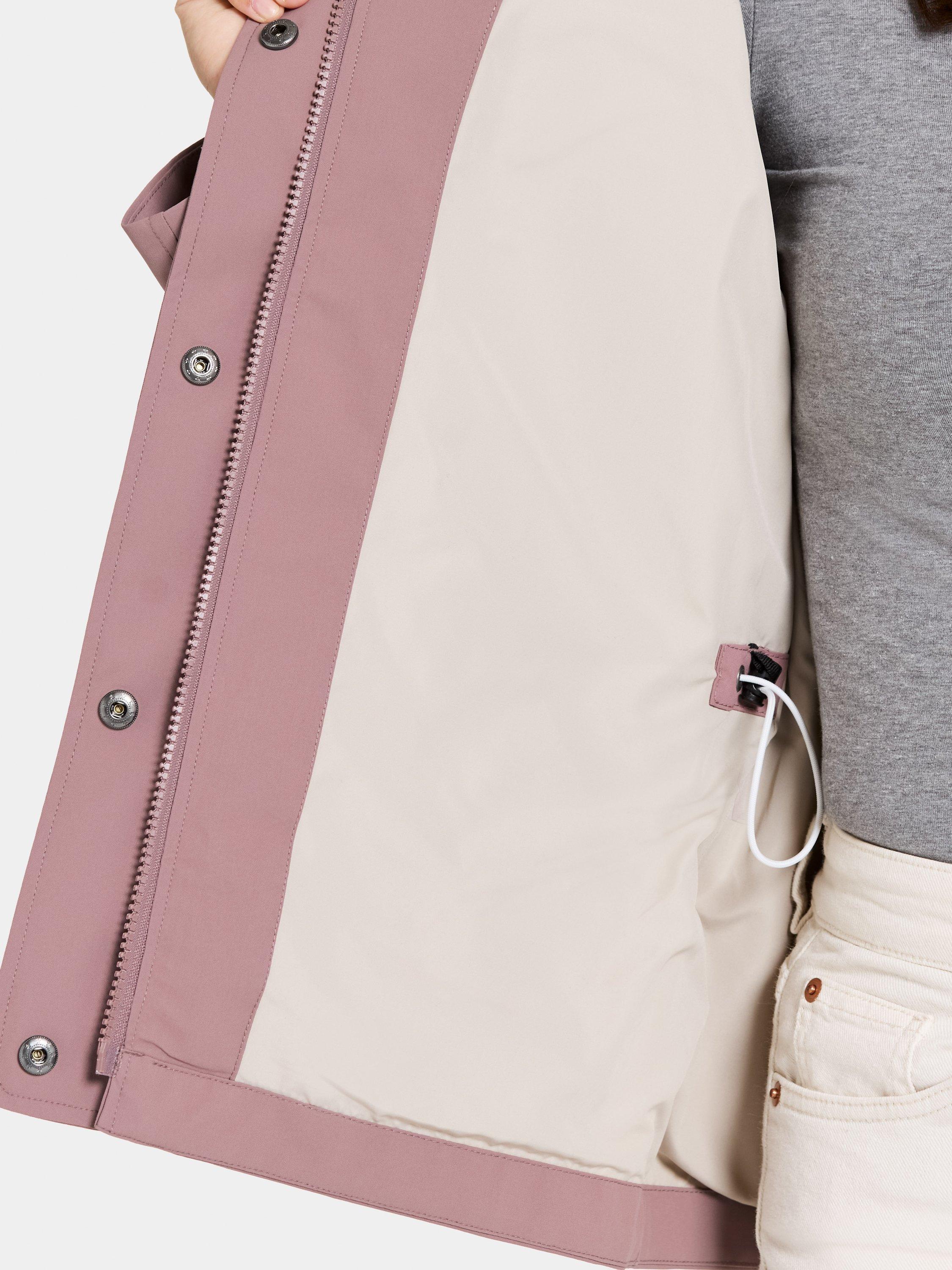 Mabel is a stylish jacket with a feminine fit that combines function and fashion for everyday use. The jacket is both windproof and waterproof with taped seams and made from a breathable material. The adjustable waist with drawstring on the inside gives a flattering silhouette, while the fixed hood and inner stand-up collar provide extra protection against the elements. The jacket has a practical zip and button closure at the front, and adjustable cuffs with buttons. The two front pockets with buttons offer secure storage. The surface is water-repellent and PFC-free.