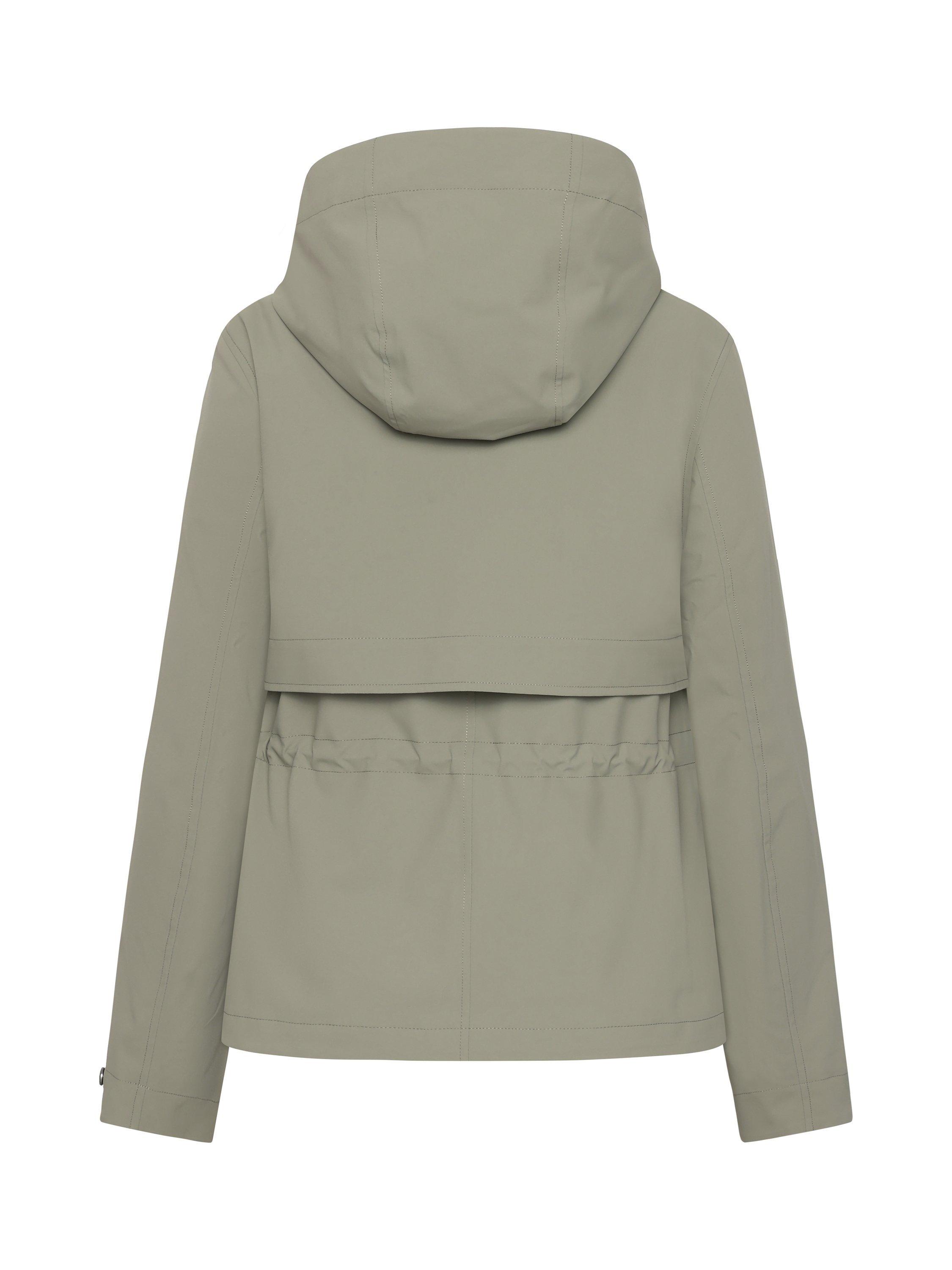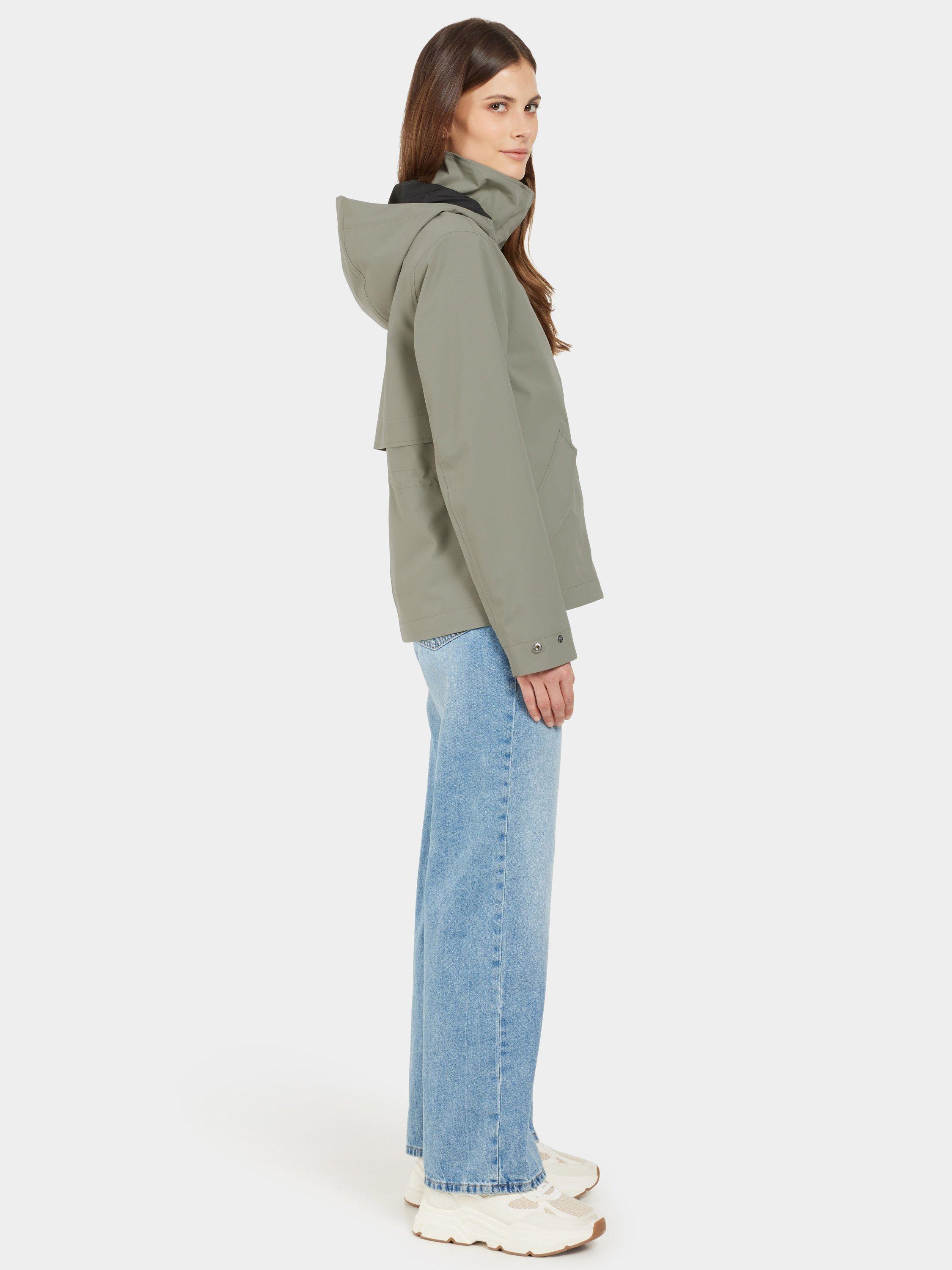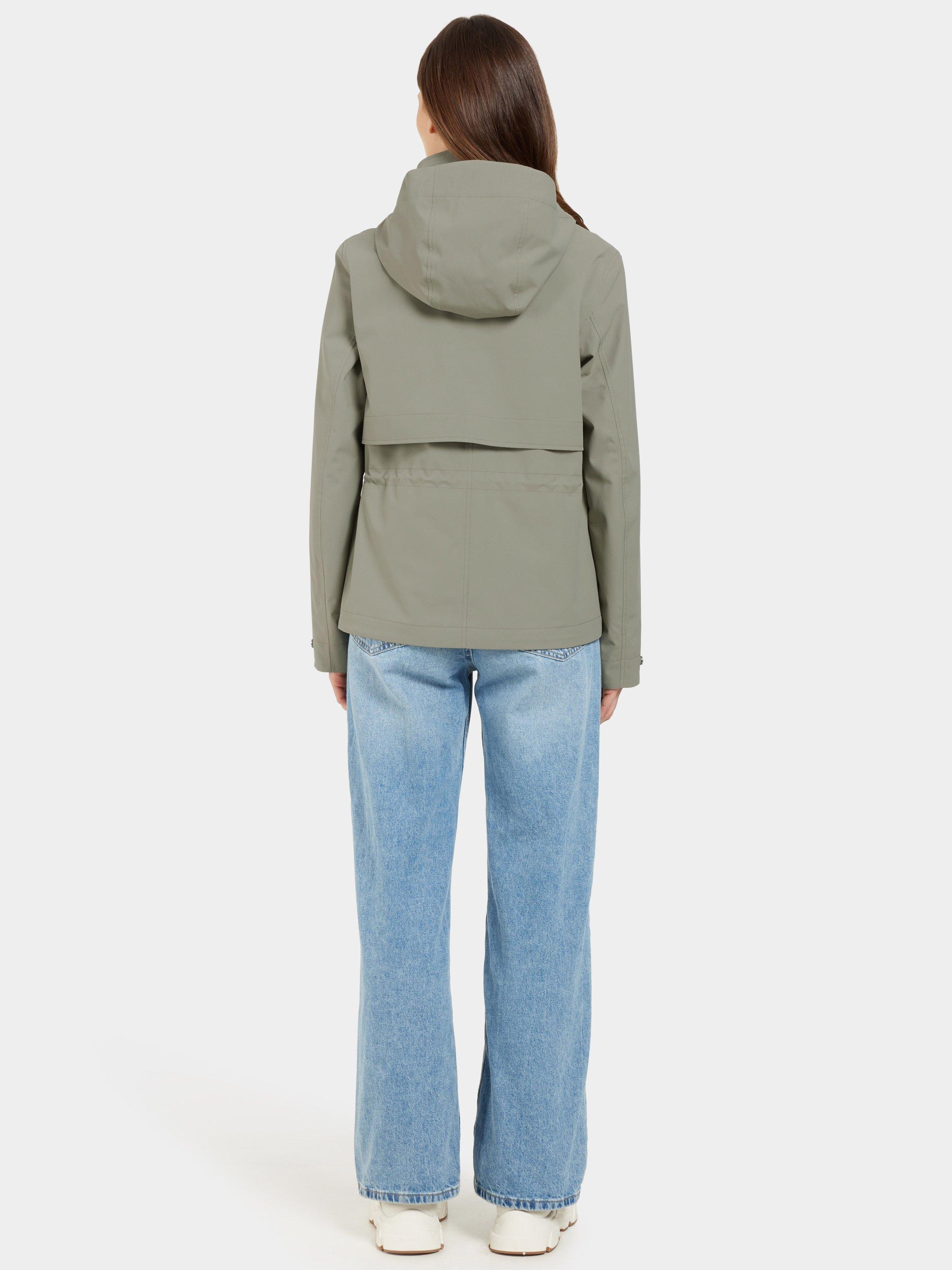 Mabel is a stylish jacket with a feminine fit that combines function and fashion for everyday use. The jacket is both windproof and waterproof with taped seams and made from a breathable material. The adjustable waist with drawstring on the inside gives a flattering silhouette, while the fixed hood and inner stand-up collar provide extra protection against the elements. The jacket has a practical zip and button closure at the front, and adjustable cuffs with buttons. The two front pockets with buttons offer secure storage. The surface is water-repellent and PFC-free.