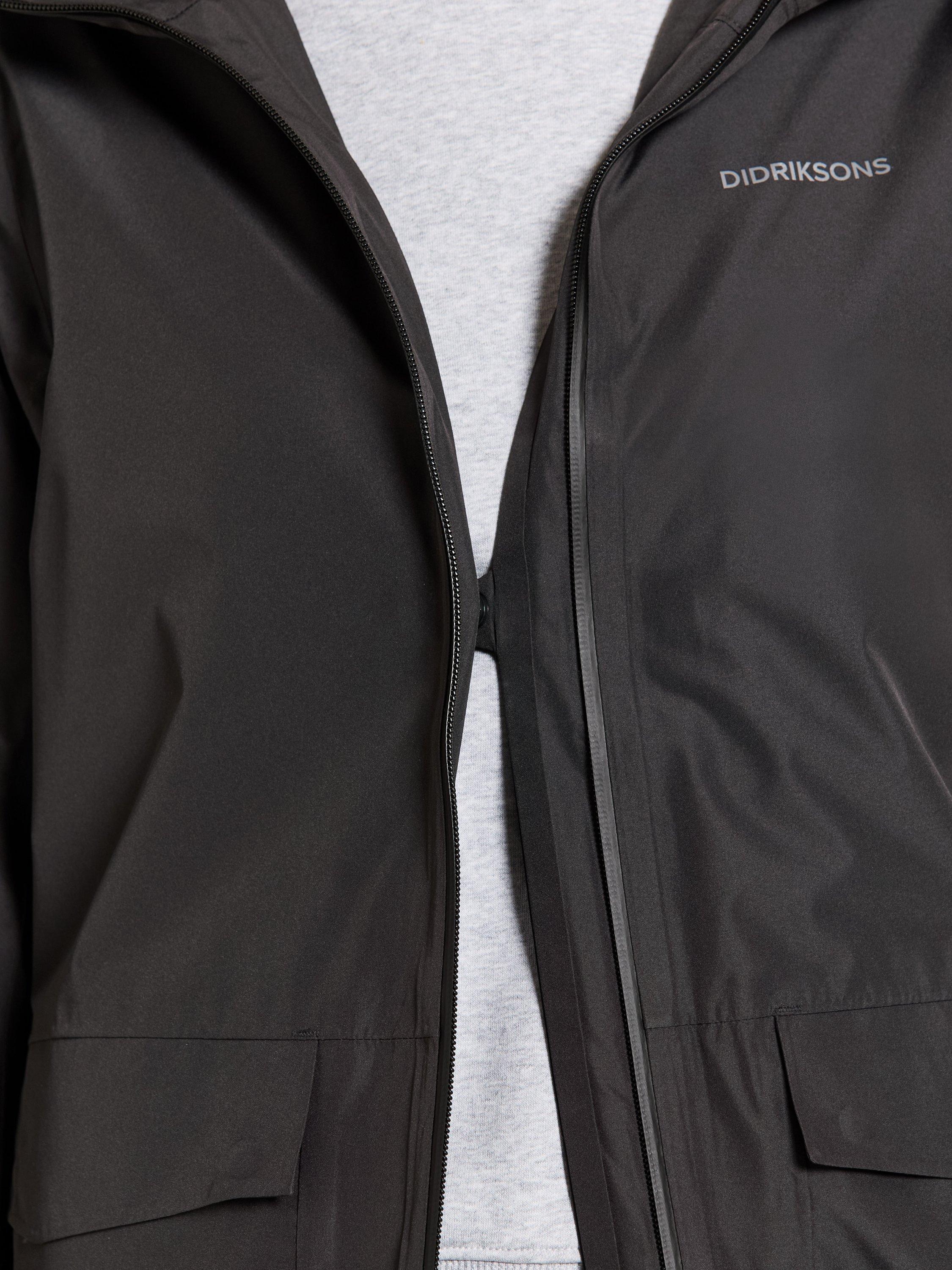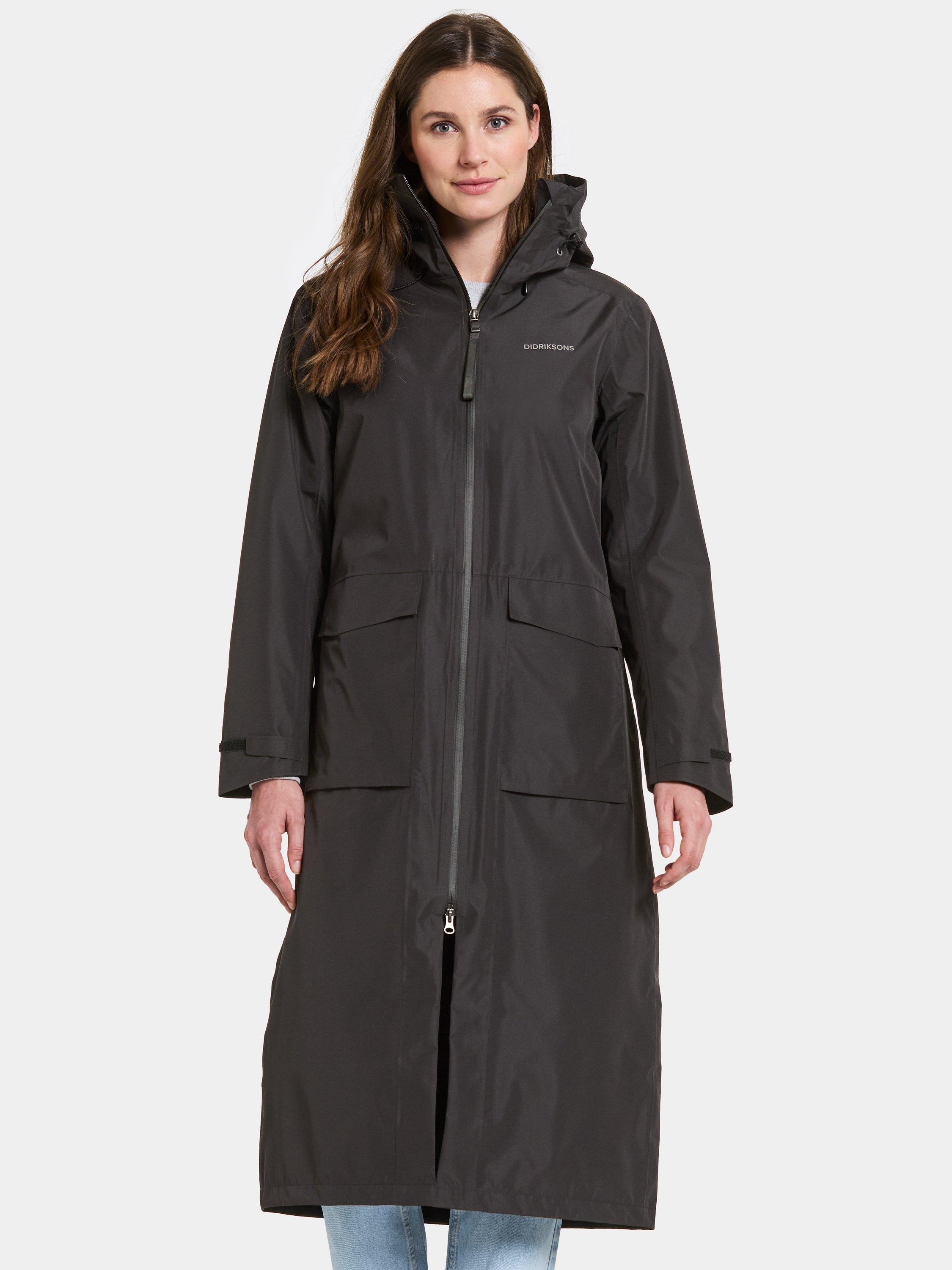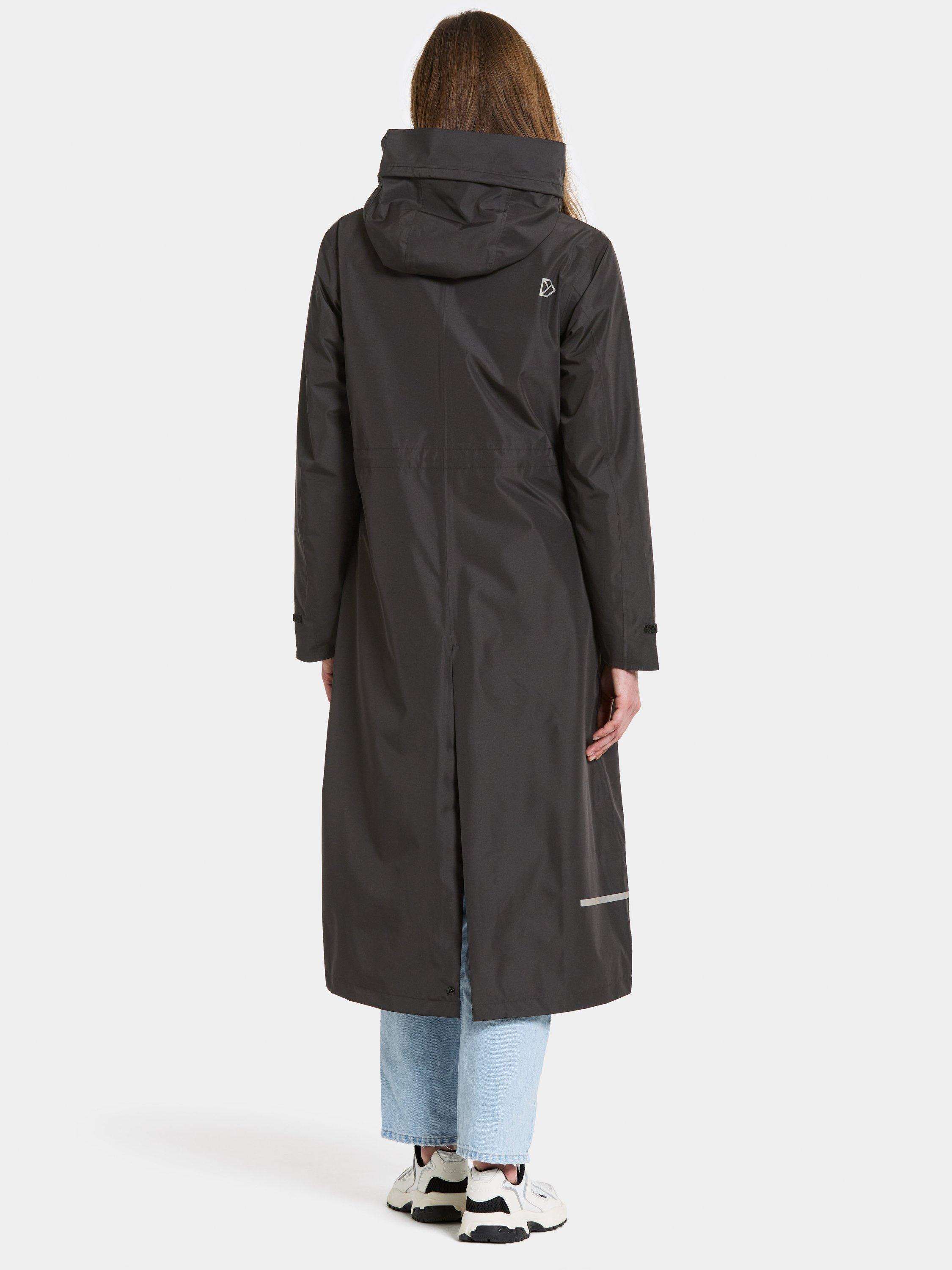 Nadja is a long and protective parka. It is lightweight and has a straight fit, making it comfortable to wear in all weather conditions. The parka is water- and windproof with taped seams and made from a breathable material. It has a two-way front zip and a button placket for extra ventilation. The fixed hood is adjustable in two directions. The cuffs can be adjusted with hook-and-loop fasteners for a perfect fit, and the waist can be adjusted at the back. The parka has practical pockets, including an inner pocket and front pockets with buttons. The water-repellent finish is PFC-free.
