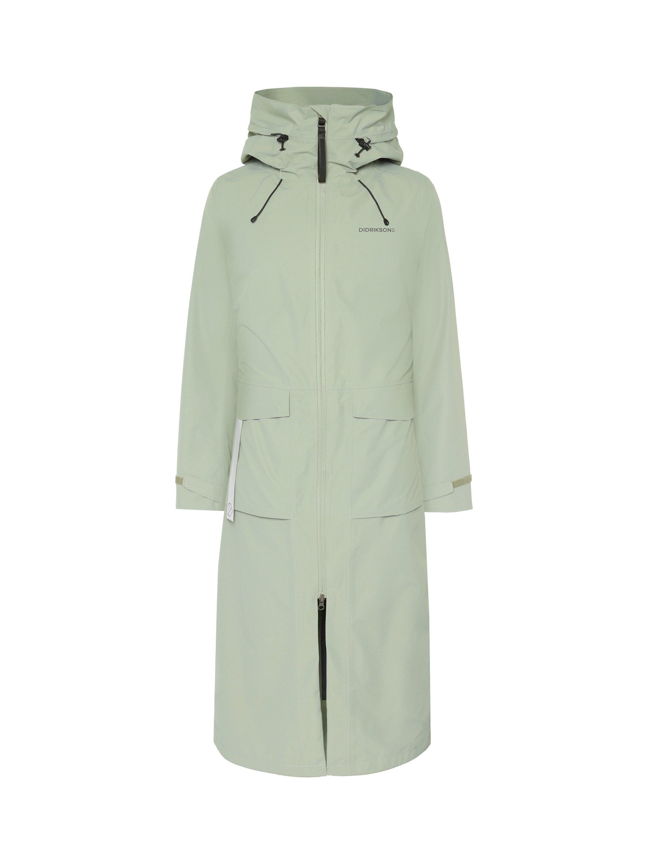 Nadja is a long and protective parka. It is lightweight and has a straight fit, making it comfortable to wear in all weather conditions. The parka is water- and windproof with taped seams and made from a breathable material. It has a two-way front zip and a button placket for extra ventilation. The fixed hood is adjustable in two directions. The cuffs can be adjusted with hook-and-loop fasteners for a perfect fit, and the waist can be adjusted at the back. The parka has practical pockets, including an inner pocket and front pockets with buttons. The water-repellent finish is PFC-free.
